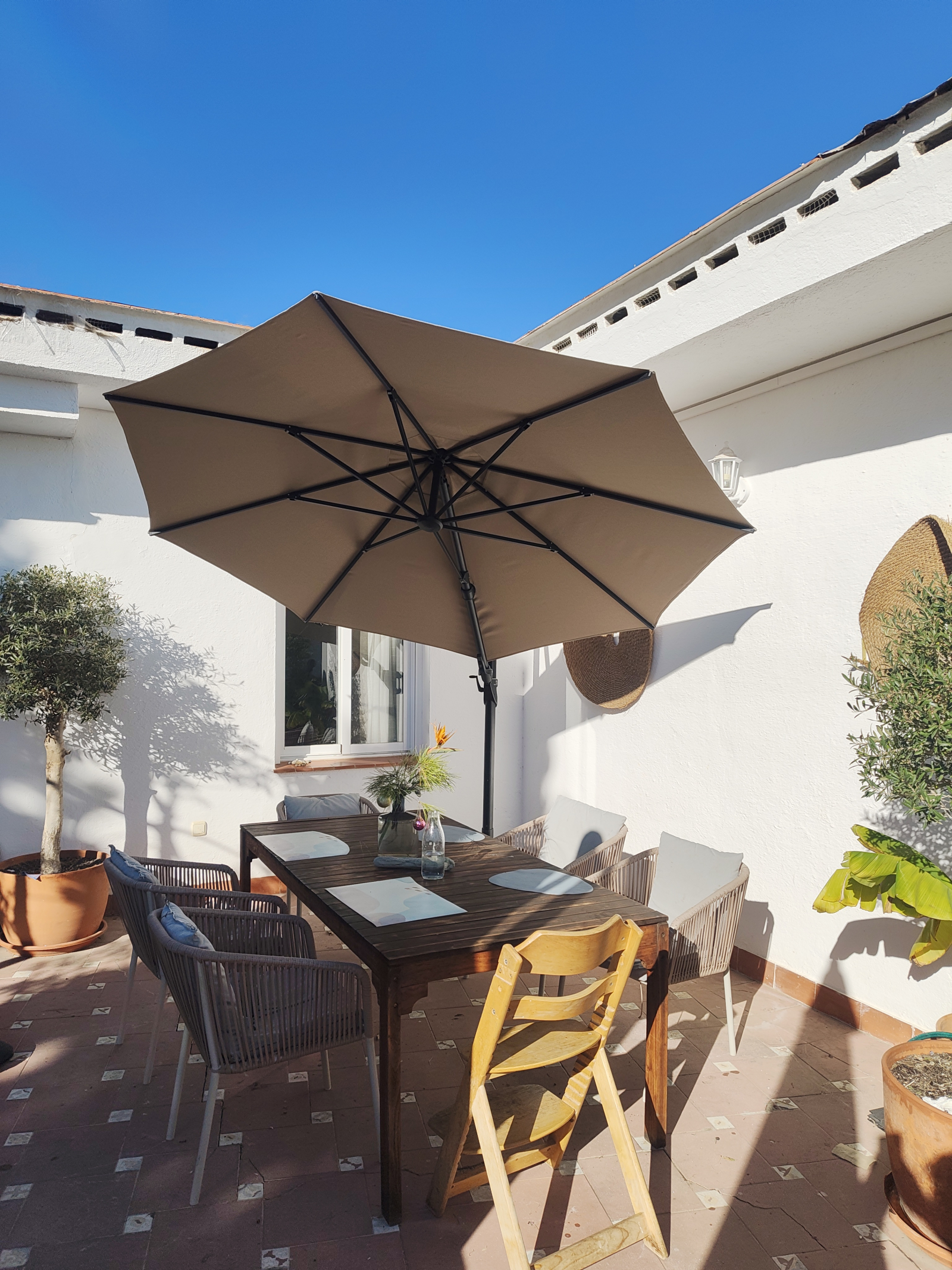 Il cuore della casa è la grande e luminosa terrazza, dove la vita si svolge naturalmente. Ci sono tre diverse aree per salotto, così puoi seguire il sole o l'ombra durante tutta la giornata. Dal patio puoi goderti l'alba al mattino, un modo meraviglioso per iniziare la giornata con un caffè o un momento di tranquillità.
