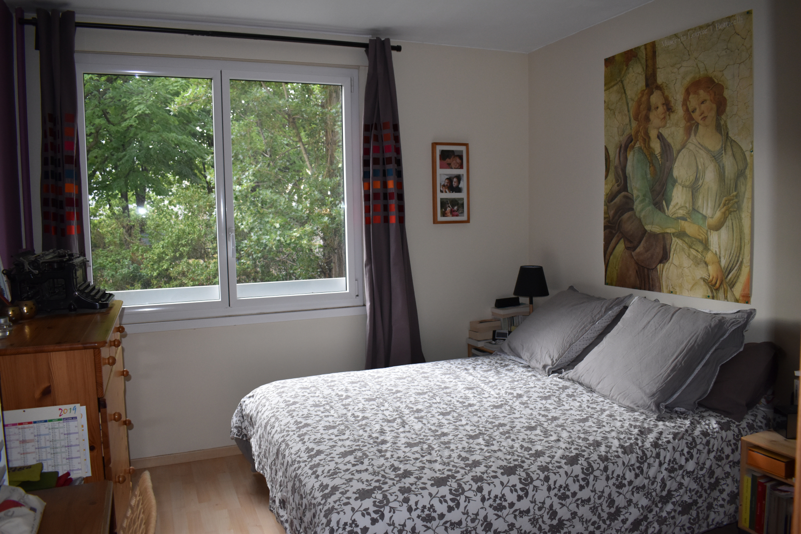 Appartamento familiare che può ospitare 4 persone (3 camere da letto). Abbiamo un balcone sul lato del soggiorno e un giardino sul lato della cucina e delle camere da letto. Purtroppo non abbiamo accesso ad esso, ma possiamo goderci gli alberi e gli uccelli.