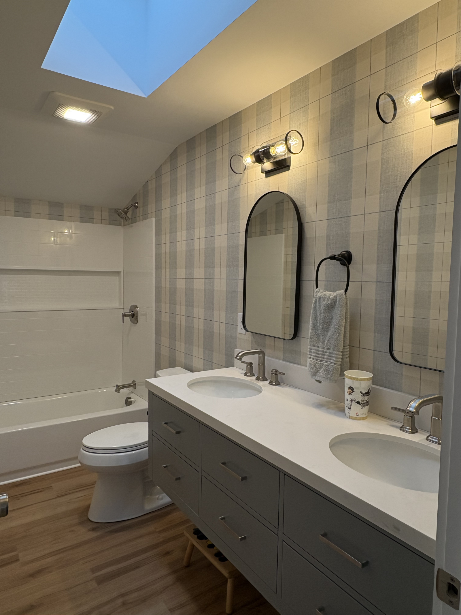 Bagno completo al 2 ° piano con vasca e doppi lavandini, situato proprio tra la 2 ° e la 3 ° camera da letto.
