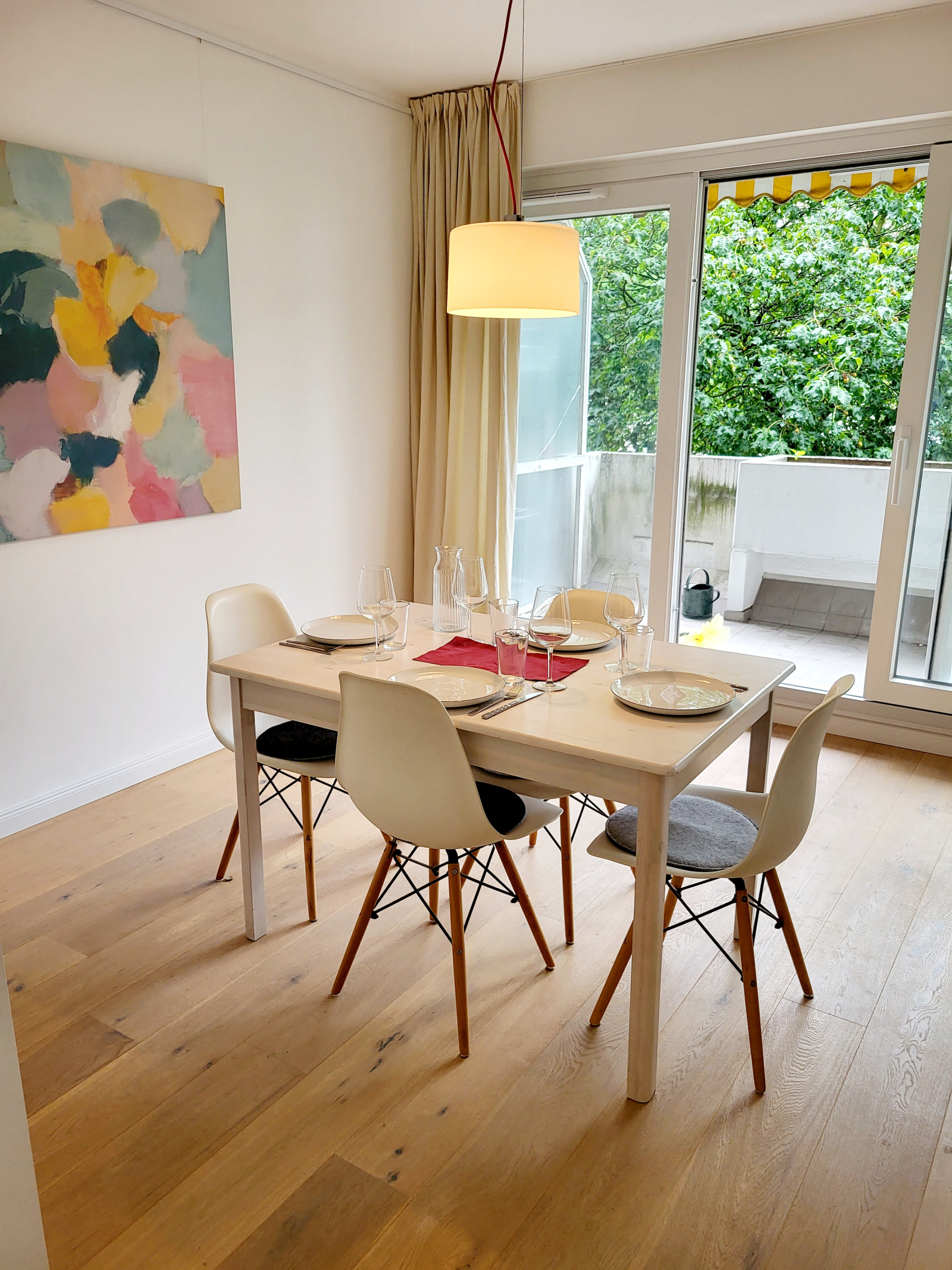 L'appartamento moderno, luminoso e confortevole (50 mq) con una camera da letto e un bagno al 2 ° piano (accessibile tramite scale, senza ascensore) nel quartiere di Amburgo di Uhlenhorst, vicino al centro della città e alla stazione ferroviaria principale.