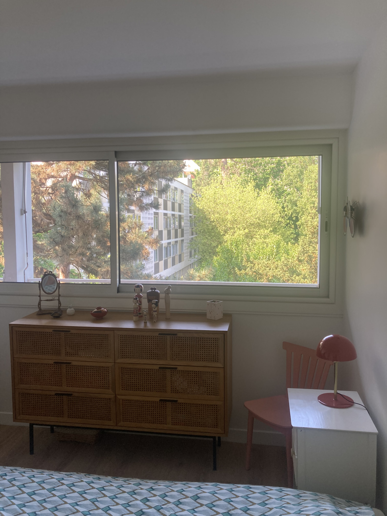 Il nostro appartamento, luminoso e spazioso, offre un ambiente tranquillo con un balcone avvolgente di 15 m² che si affaccia sul lussureggiante parco privato del residence, un luogo incantevole per un caffè mattutino o un relax serale con un tavolo e un'amaca. La residenza è stata progettata negli anni '50 dall'architetto Jean Ginsberg ed è piena di carattere e fascino della metà del secolo. I residenti sono invitati a passeggiare e rilassarsi nei giardini splendidamente curati.