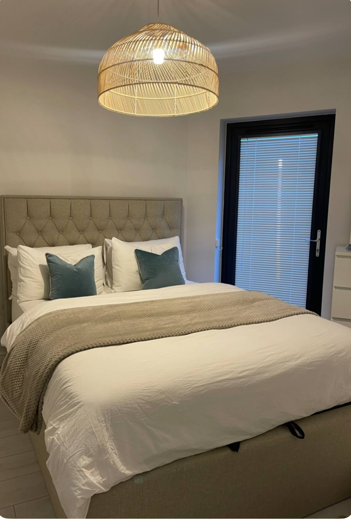 Ho 1 camera da letto matrimoniale, 1 bagno e cucina/soggiorno a pianta aperta e sala da pranzo.