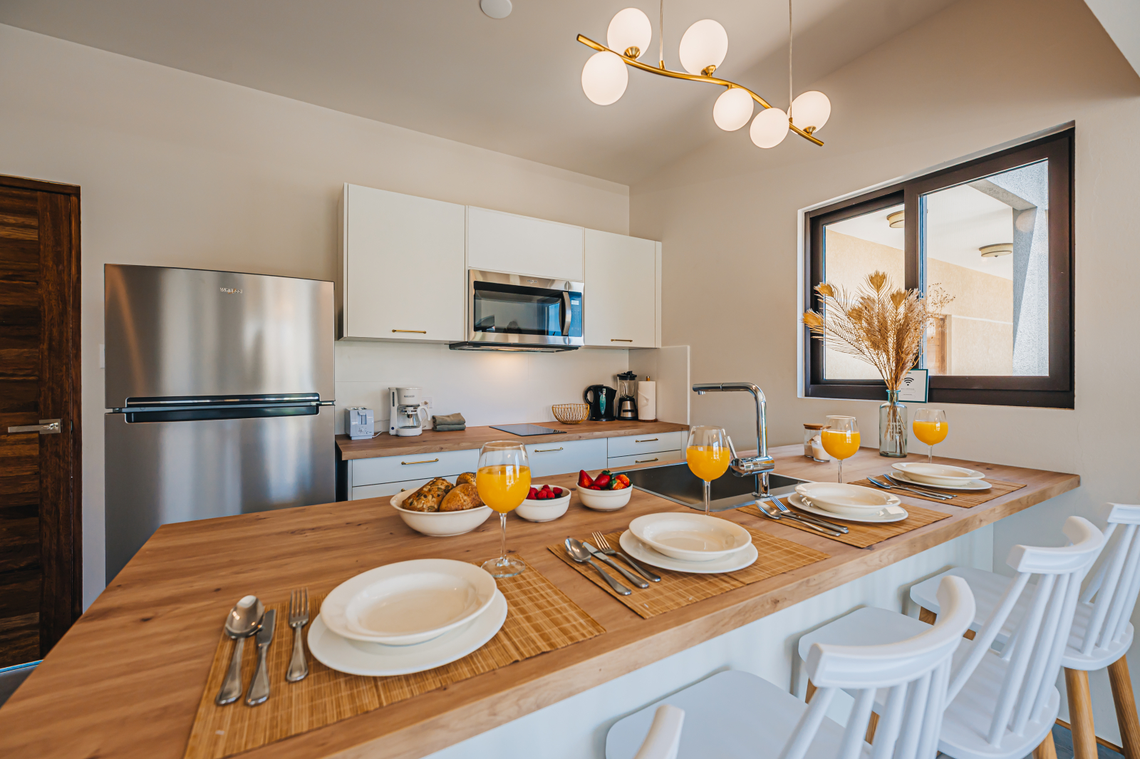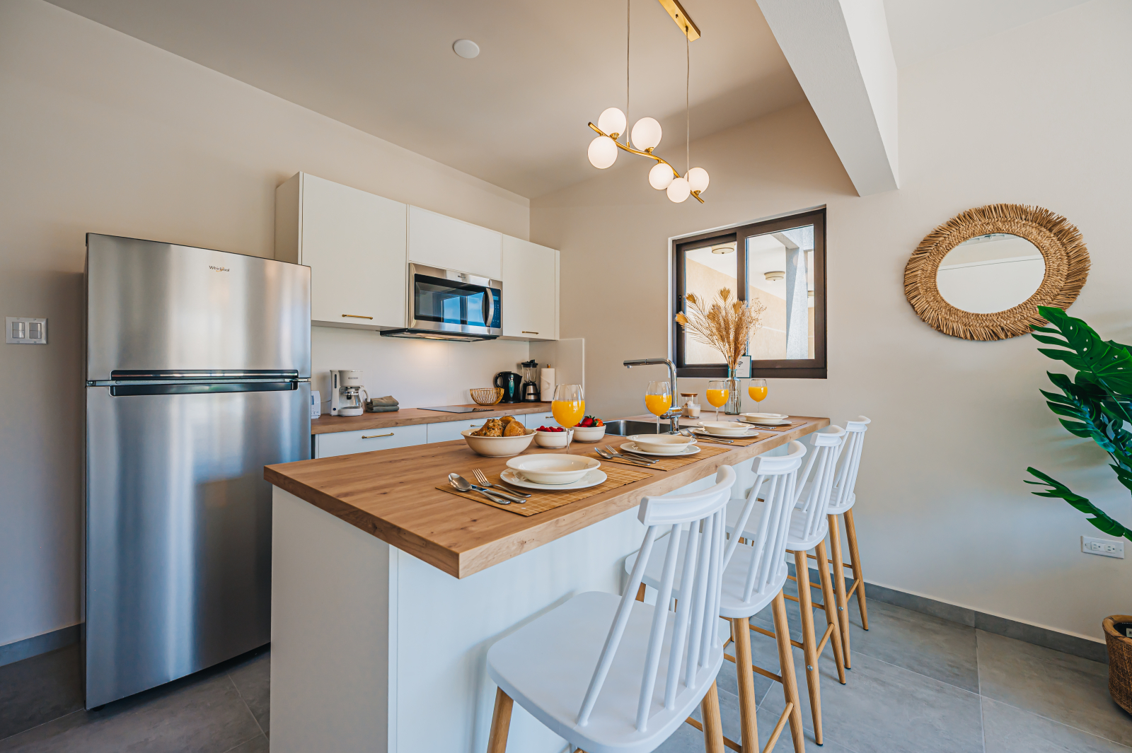 In pochi minuti di auto si possono raggiungere le più belle spiagge per lo snorkeling di Aruba: Malmok, Boca Catalina e Arashi. Palm Beach, con la sua accogliente zona di grattacieli piena di ristoranti, negozi e divertimenti, si trova a breve distanza. Il faro della California e le dune conferiscono ad Aruba settentrionale un carattere aspro e fotogenico, perfetto per tramonti e brevi escursioni. Supermercati, panetteria, farmacia e stazione di servizio si trovano a Noord; supermercati più grandi come Super Food (a 10 minuti di auto) e Ling & Sons si trovano un po' più avanti lungo la strada verso Eagle Beach. Oranjestad è facilmente raggiungibile per i musei, i negozi e il porto.