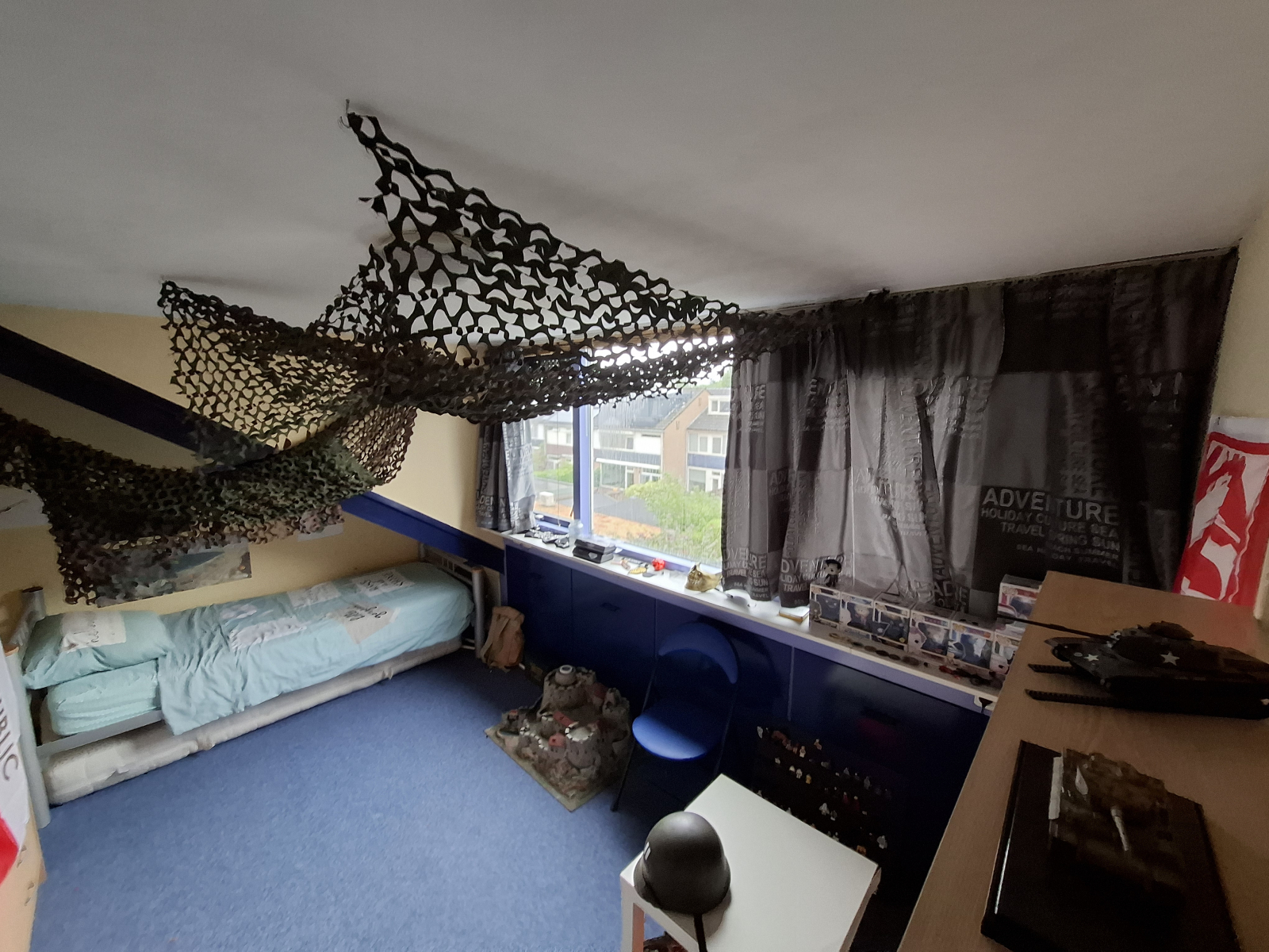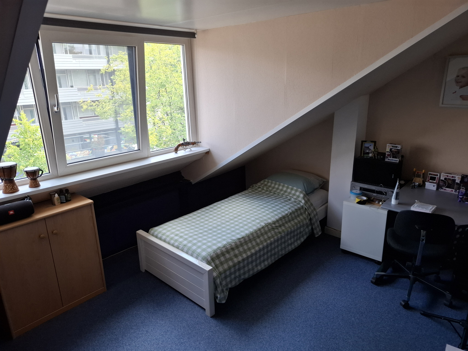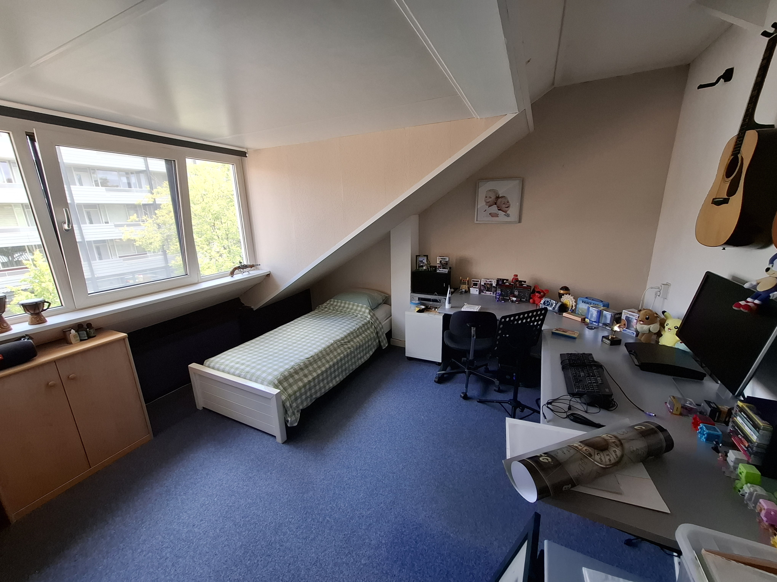 L'intero piano attico e la mia camera da letto sono disponibili, quindi sono 3 camere da letto. Un letto king-size nella camera da letto principale con aria condizionata. Nelle camere mansardate c'è 1 letto e 1 materasso extra. Può anche essere collocato nell'altra mansarda (la sala computer e chitarra)
