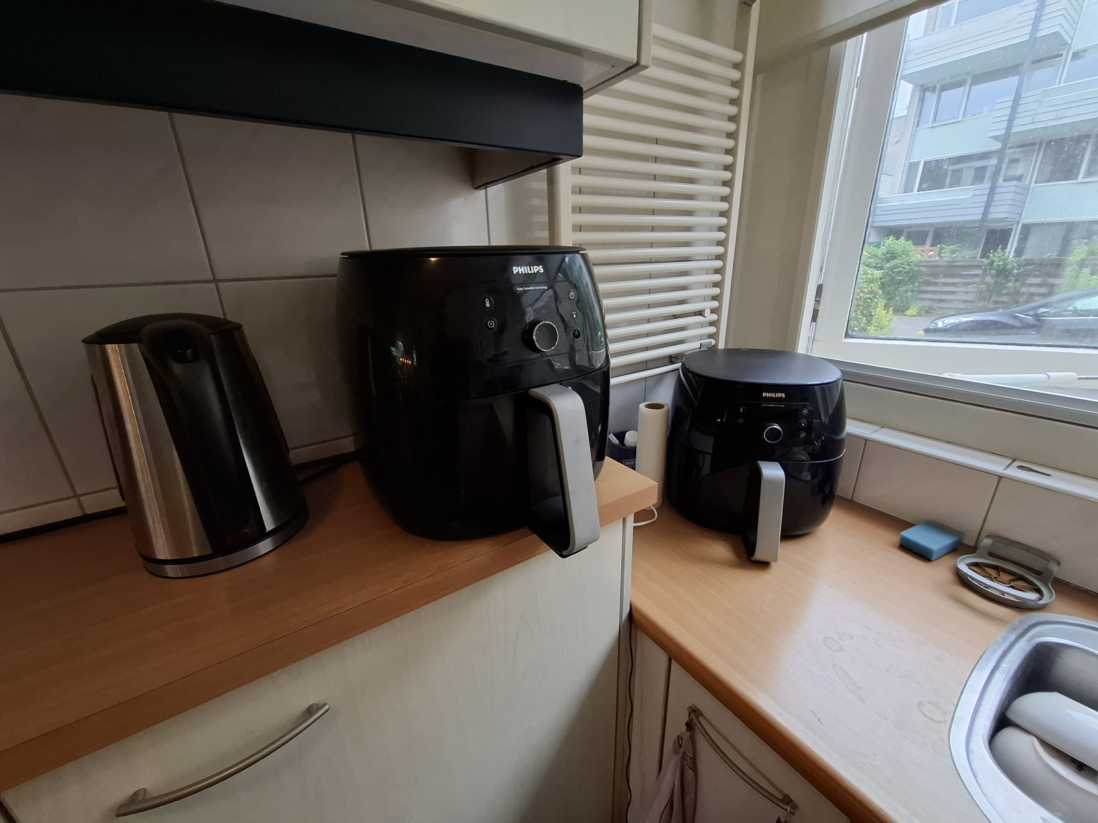 Cucina moderna con tutto ciò di cui una normale famiglia ha bisogno. Microonde, forno, friggitrici ad aria, frigorifero, congelatore, bollitore, macchina da caffè senseo, tostapane, tostapane, tostapane, ecc.