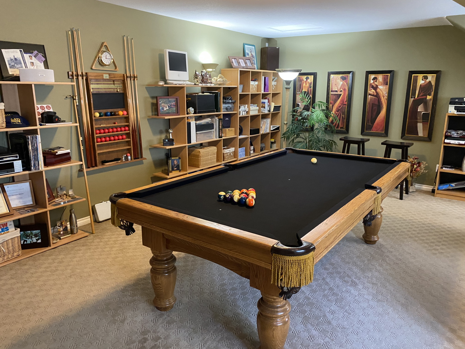 Ci sono tre piani, con cucina, sala da pranzo e soggiorno al livello principale, tre camere da letto al piano inferiore e un tavolo da gioco al piano superiore.