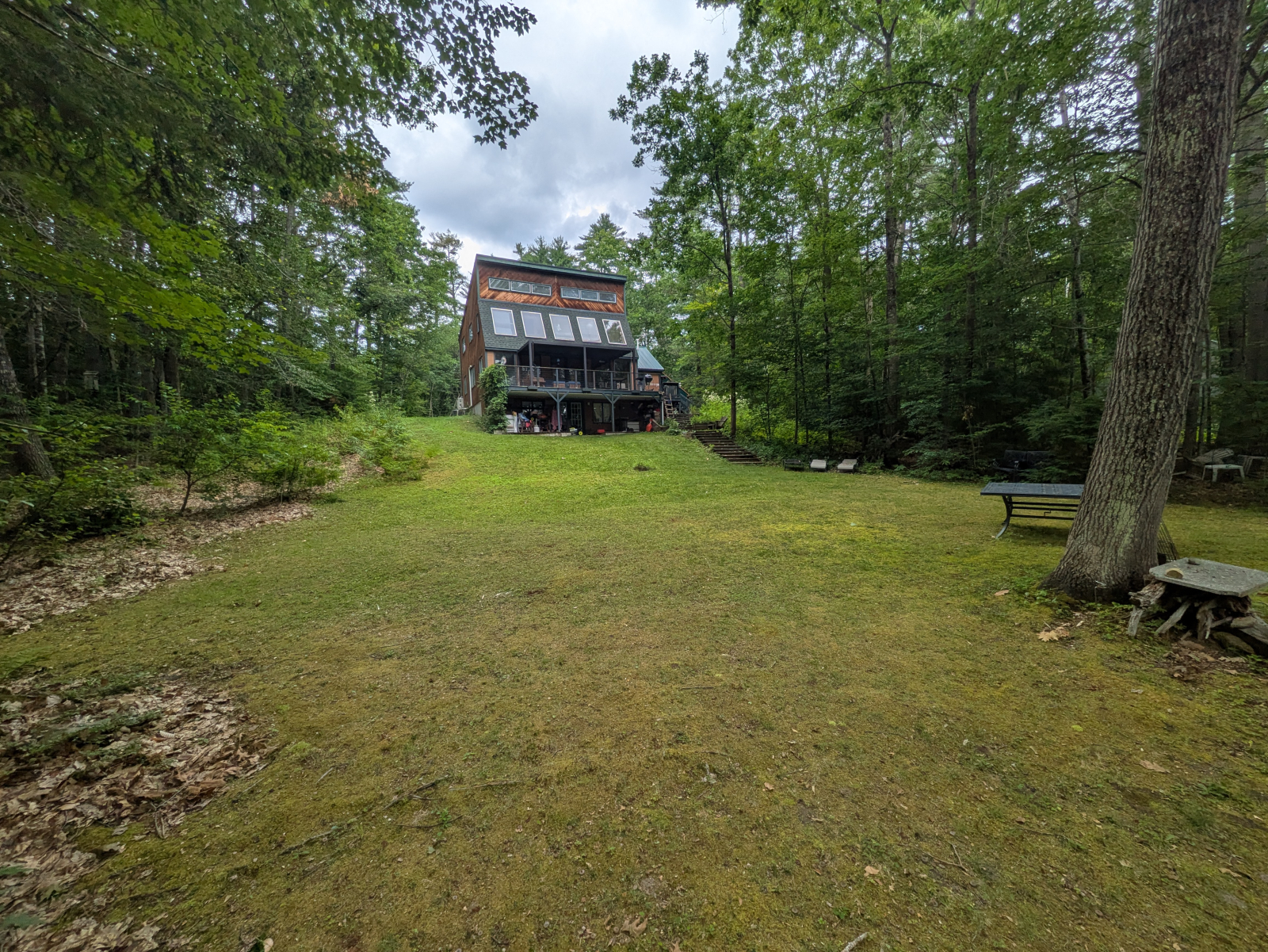 Siamo fortunati ad avere 2 acri di paradiso naturale su una tranquilla baia del lago Arrowhead (1000 acri), Maine. Abbiamo una passerella lunga 150 metri che si snoda attraverso un'area boschiva della proprietà e un molo sul lago. Un grande falò si trova a pochi passi dall'acqua ed è circondato da alberi ad alto fusto. Ci sono diverse opzioni di barbecue su un ampio ponte con un pergolato che offre ombra e relax all'aperto con vista sul lago. La casa è dotata di aria condizionata centralizzata e di un solarium se si desidera essere all'interno e vedere anche il lago. La cucina ben attrezzata ha un piano cottura a induzione, grande frigorifero, lavastoviglie. La camera da letto principale si affaccia anche sul lago.