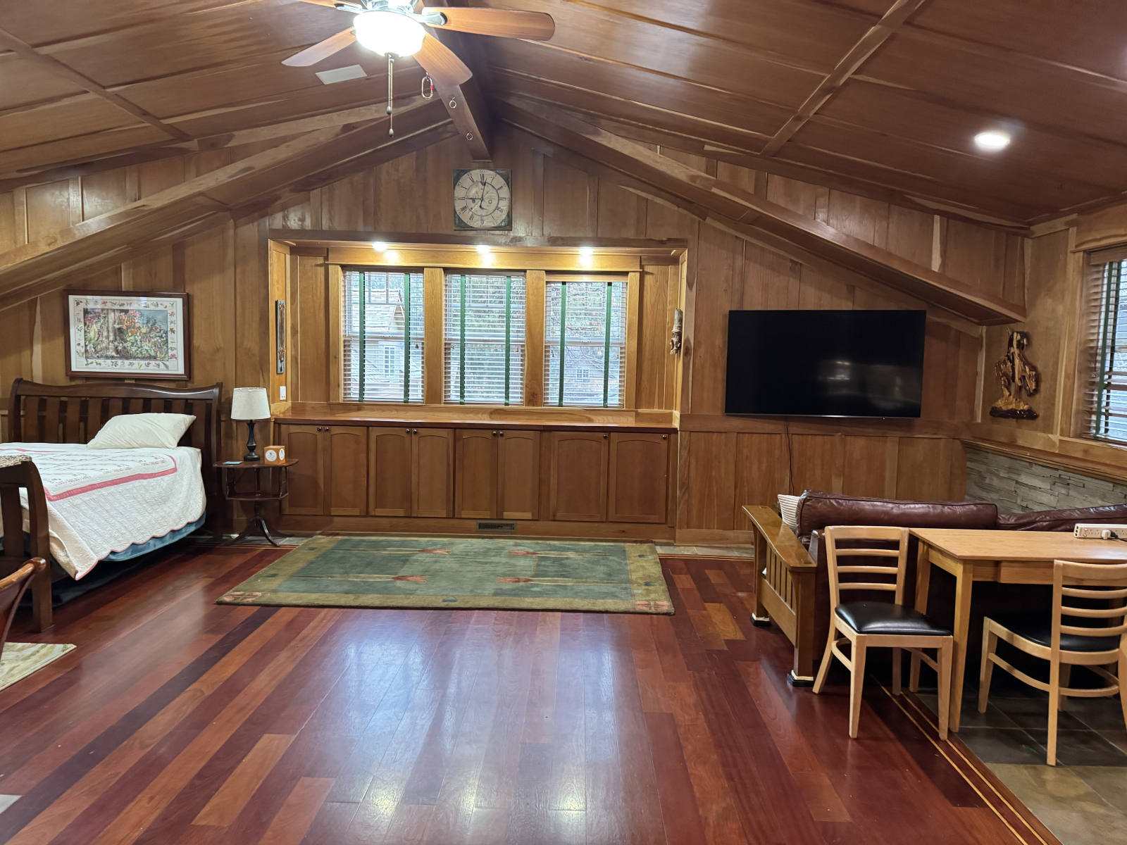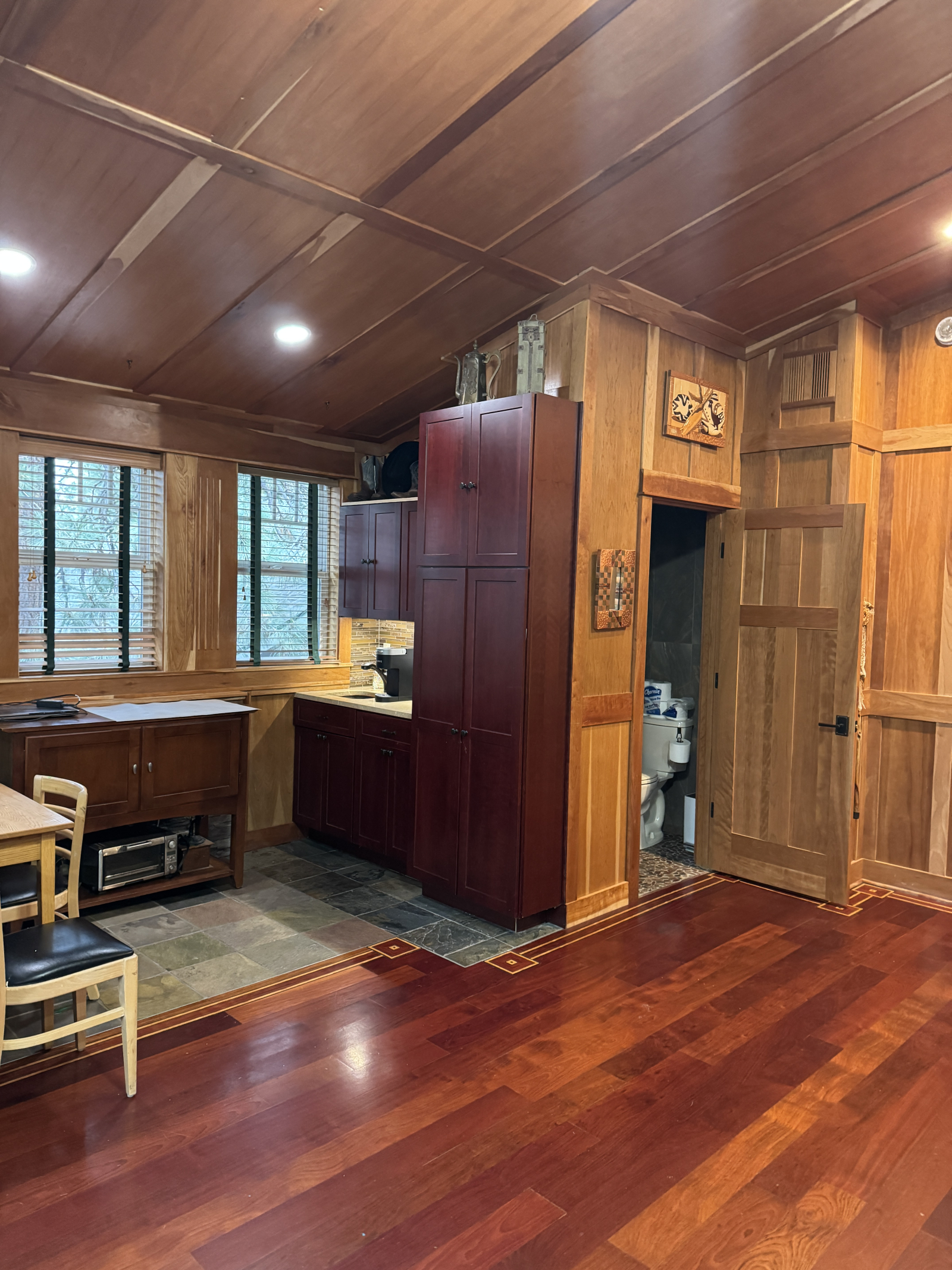 Non hai bisogno di un'intera casa? La nostra suite privata, un ampio spazio rivestito su misura sopra il nostro garage, è spesso disponibile. Perfetto per 1-2 persone, non sono ammessi animali domestici. Lo spazio di 900 piedi quadrati è più grande di alcuni appartamenti! All'interno di questo spazio c'è un tavolo da pranzo con sedie, un divano, una TV, un bancone con lavandino, un comodo letto matrimoniale e un bellissimo bagno piastrellato con doccia. Siete invitati a utilizzare la cucina completa della nostra casa e la lavatrice/asciugatrice. Potremmo essere o meno a casa durante il vostro soggiorno. Piccolo frigorifero, forno a microonde, tostapane e macchina per il caffè in sospeso; sarà in vigore entro il 2026.