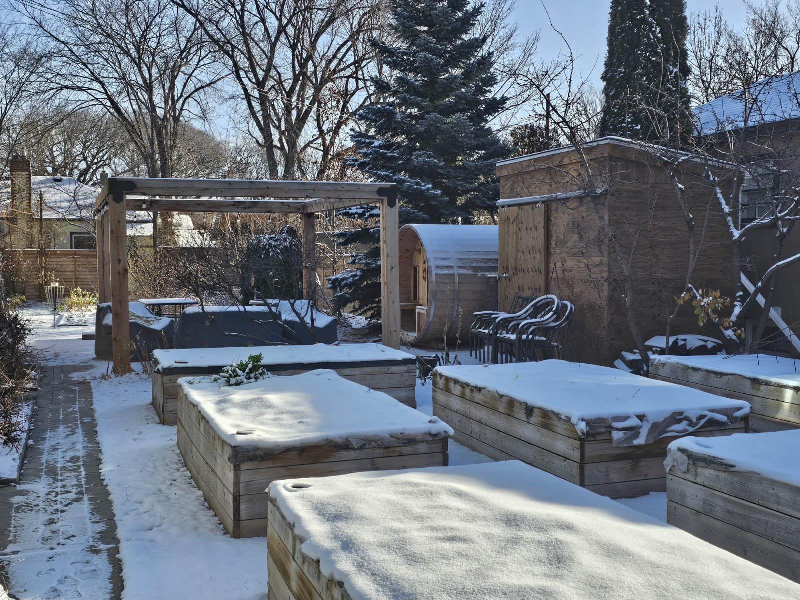 Viviamo in una splendida e luminosa casa dal carattere anni '20 in un quartiere più antico del centro di Saskatoon. La casa ha 4 camere da letto e un ufficio ed è particolarmente ben attrezzata per chi ama cucinare. Abbiamo una bellissima sauna a botte all'aperto (riscaldata con elettricità) che è particolarmente piacevole nelle nostre fredde giornate invernali del Saskatchewan. Durante i mesi più caldi il grande giardino è spettacolare con alberi da frutto e arbusti, 8 grandi aiuole rialzate e una serra, tutto progettato secondo i principi della permacultura. La nostra area salotto all'aperto con una bellissima pergola, ombra UV e un braciere senza fumo è la nostra piccola oasi cittadina.