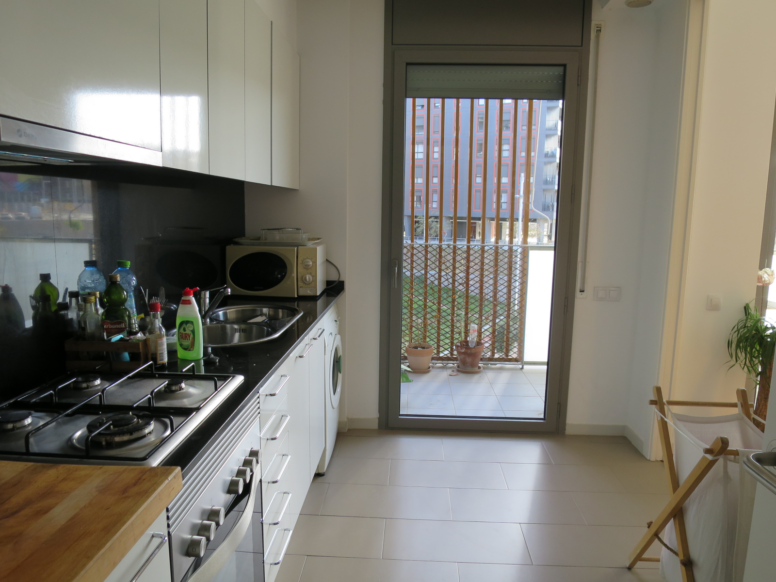È pieno di luce, poiché la cucina e il soggiorno hanno porte di cristallo molto alte che danno sul balcone. Il balcone può essere normalmente utilizzato da maggio a fine ottobre, poiché il clima a Barcellona è piuttosto mite.