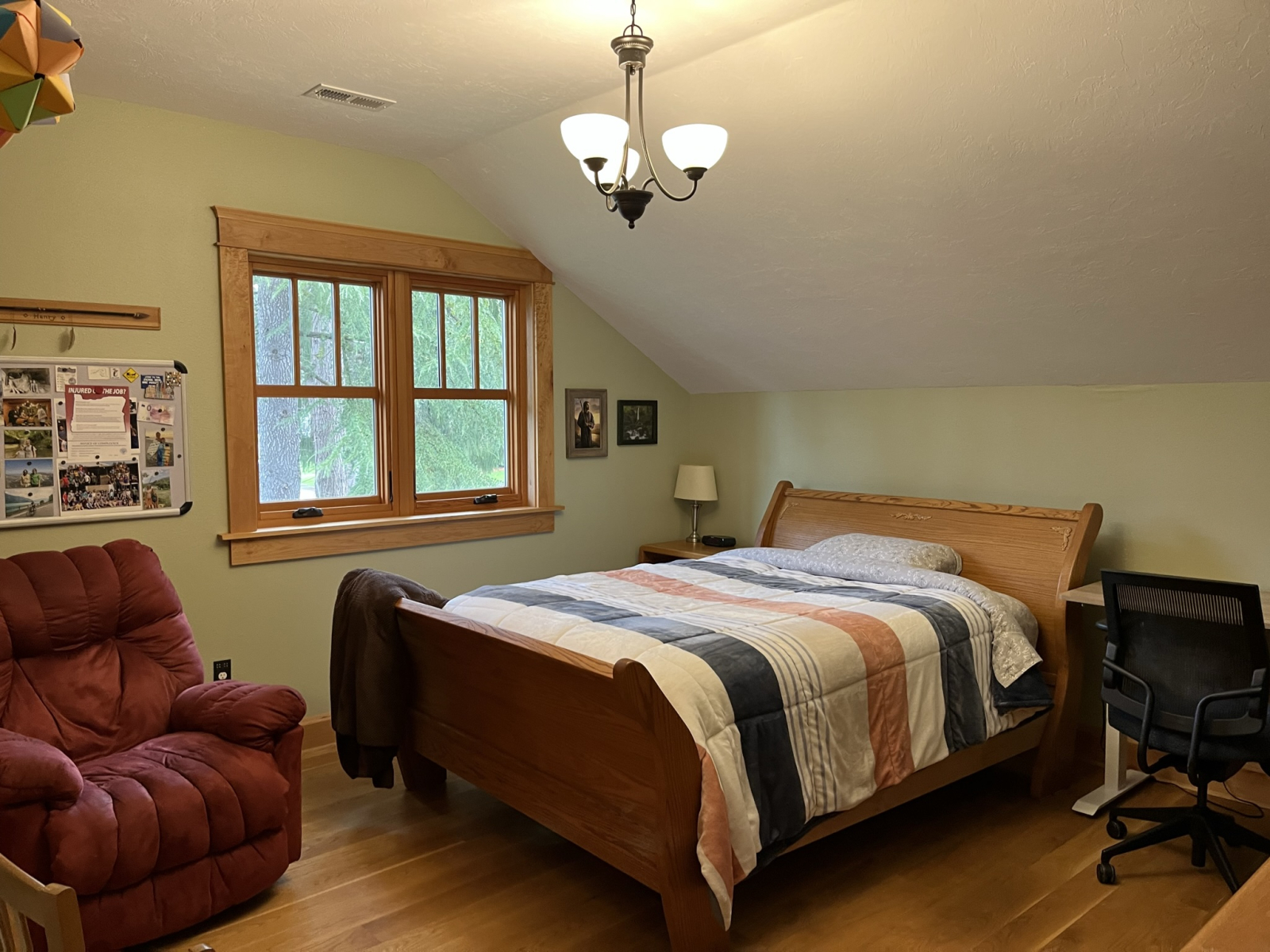 Ons huis is een groot mooi huis op een perceel van 1/2 hectare in het rustige ZW Portland aan een rustige doodlopende straat met weinig verkeer. Ik heb het ongeveer 10 jaar geleden zelf gebouwd en in elke kamer op maat gemaakte hardhouten vloeren gelegd, samen met gekrulde esdoornbekleding en massief hardhouten deuren. Hope is verbazingwekkend stil omdat ramen en muren geluidsgeïsoleerd zijn. De kamers op de bovenverdieping hebben een mooi uitzicht op de bomen. We hebben een geweldige buurt en buren. We zijn dicht bij boodschappen en een paar kilometer het chicste winkelcentrum van Oregon.