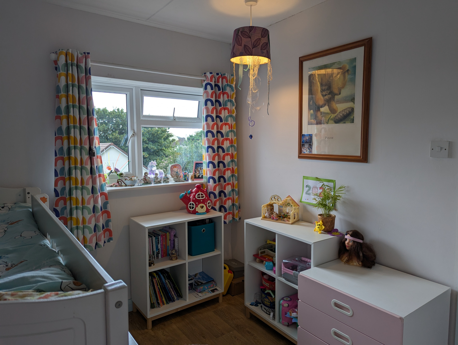 Eenpersoonskamer, met voldoende ruimte voor een matras op de vloer indien nodig.