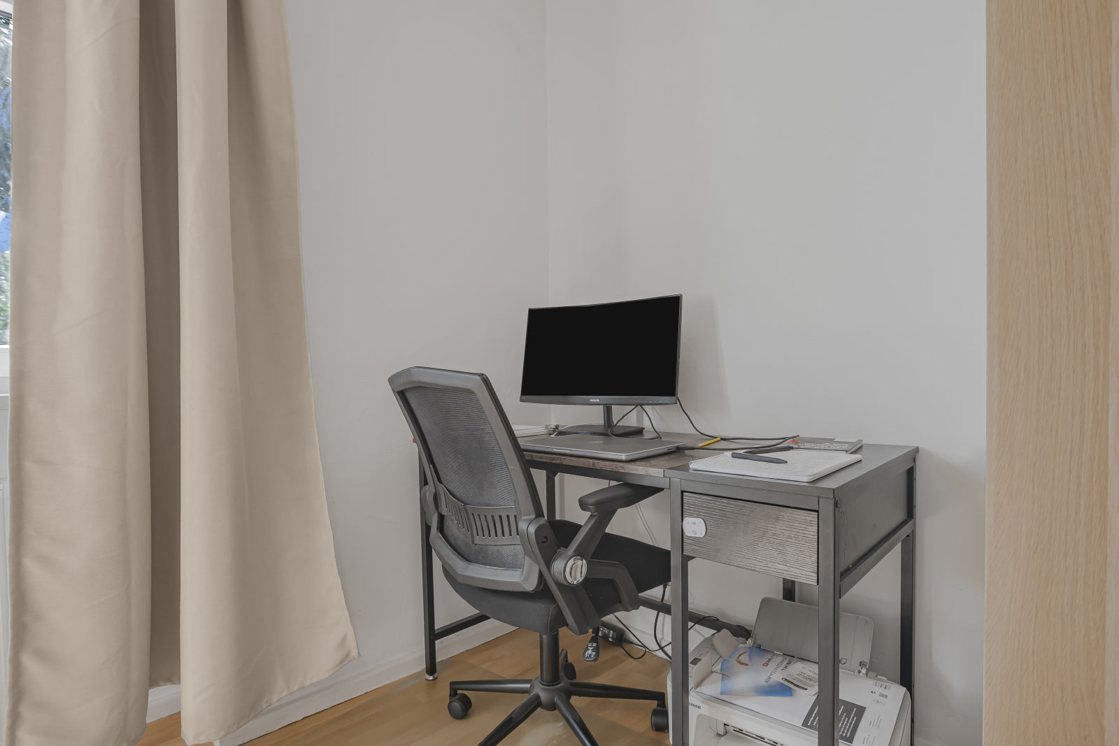 We wonen in een rustige buurt, met goede verbindingen naar het centrum en de luchthaven.