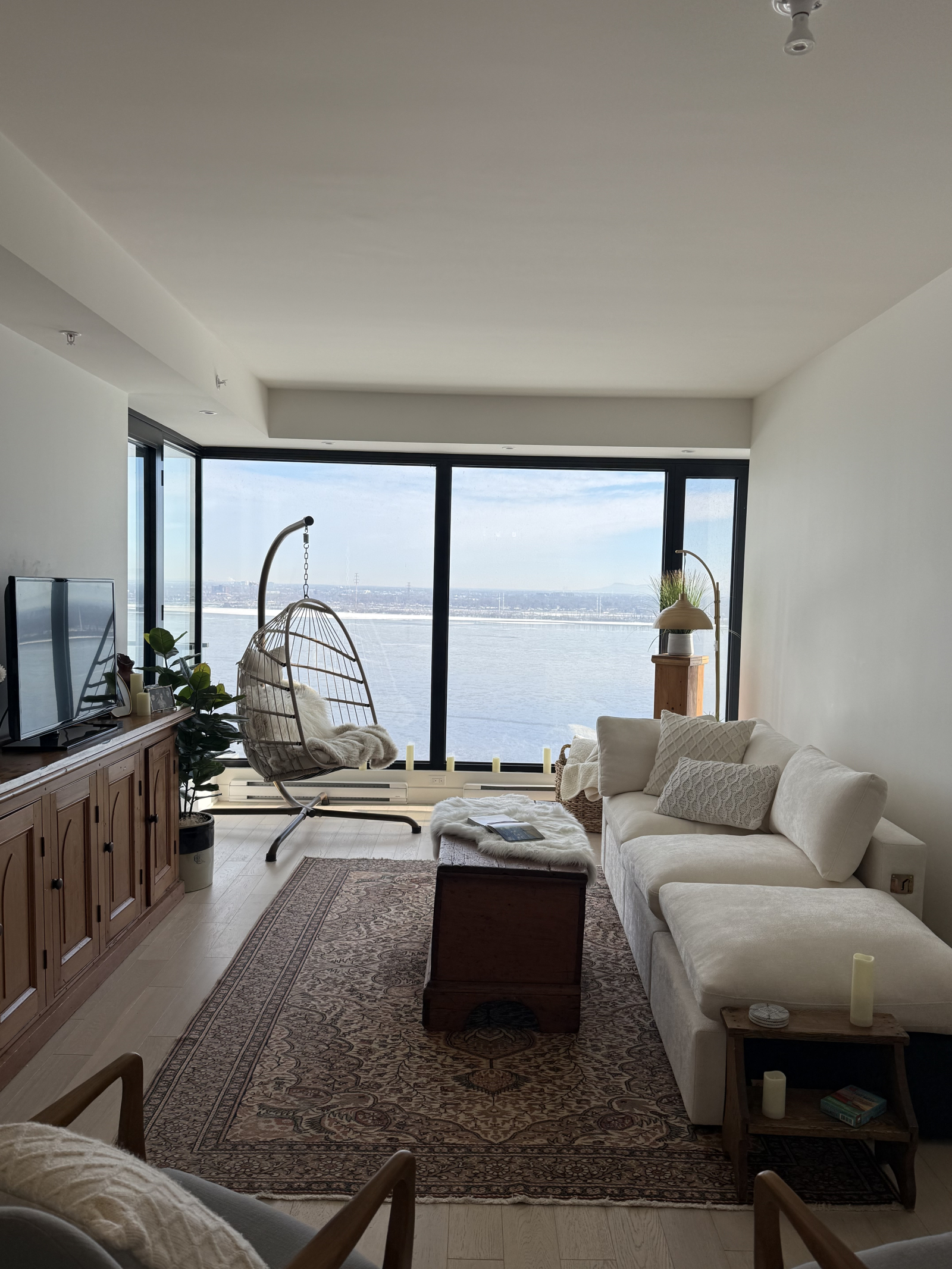 Geniet van het adembenemende uitzicht op de St. Lawrence-rivier en Montreal, vanaf Nun's Island, op de 22e verdieping van een echte stedelijke oase. Het appartement ligt op 5 minuten lopen van de REM - openbaar vervoer - dat je direct het stadscentrum in brengt.