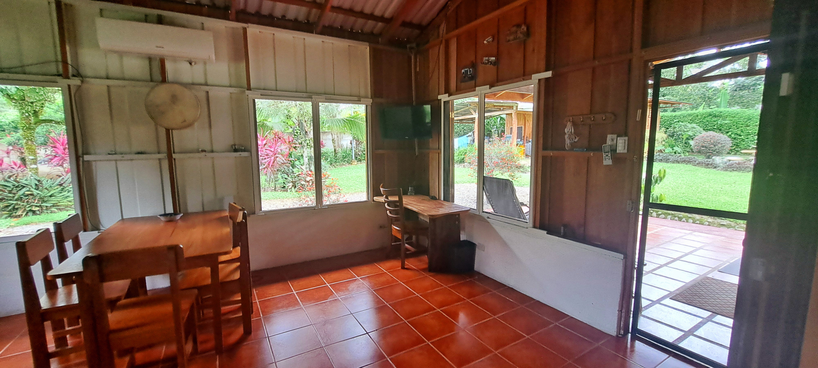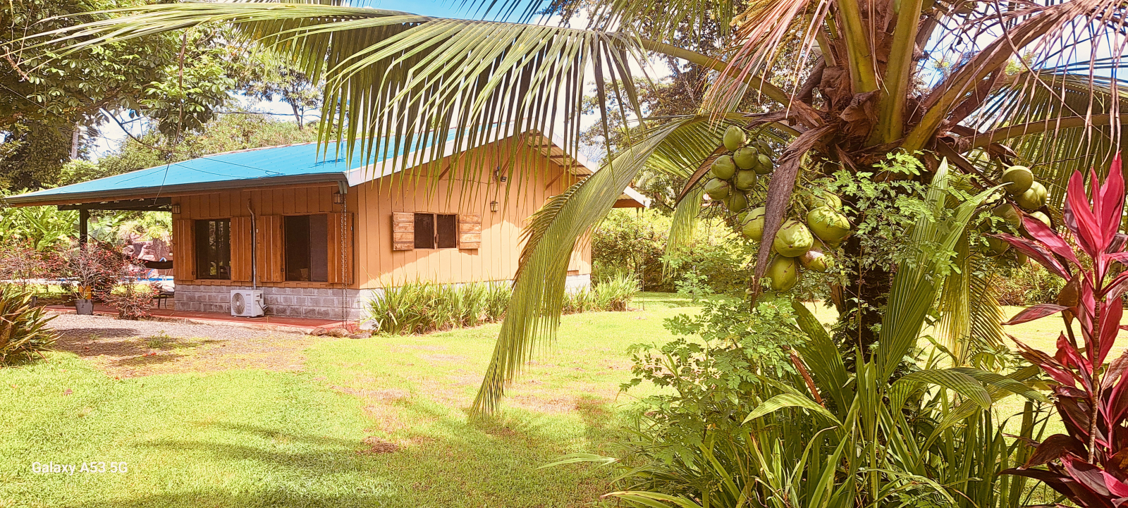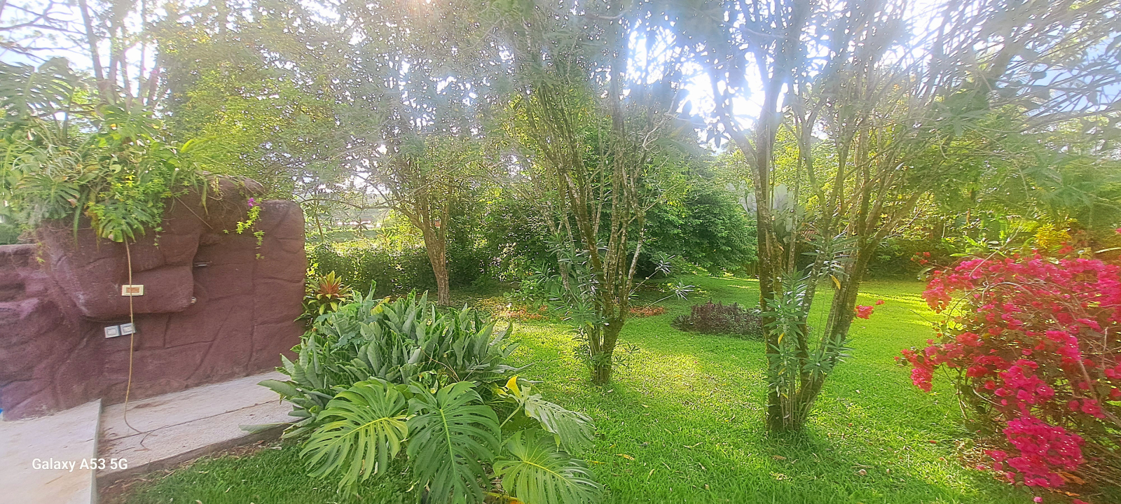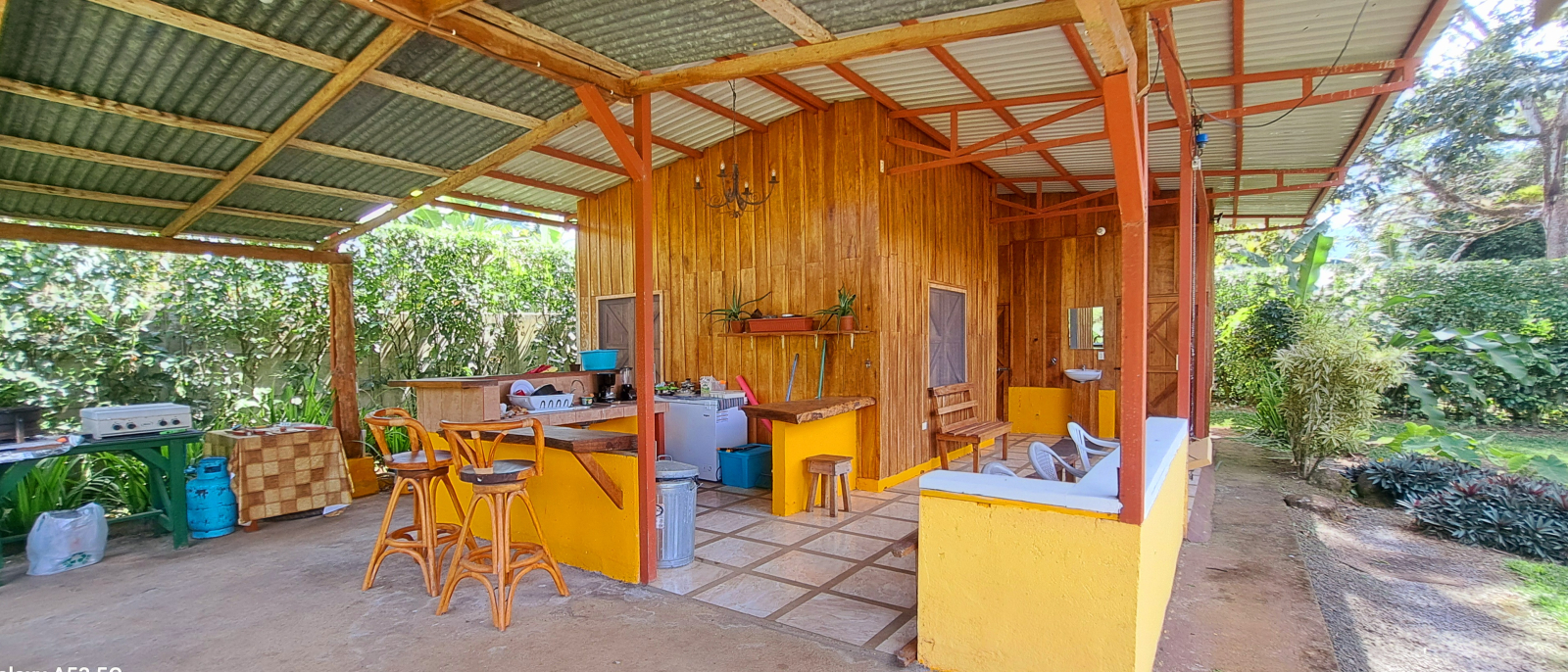Dit is een hoofdgebouw met twee slaapkamers en een badkamer (cabine) samen met het pension (cabine), dat is een kamer van ongeveer 500 m² met aparte badkamer en BBQ / Rancho-gebied, het pand is bijna een hectare weelderige tropische planten en ongeveer 7 verschillende soorten fruitbomen, waaronder verschillende kokospalmen en een lindeboom.