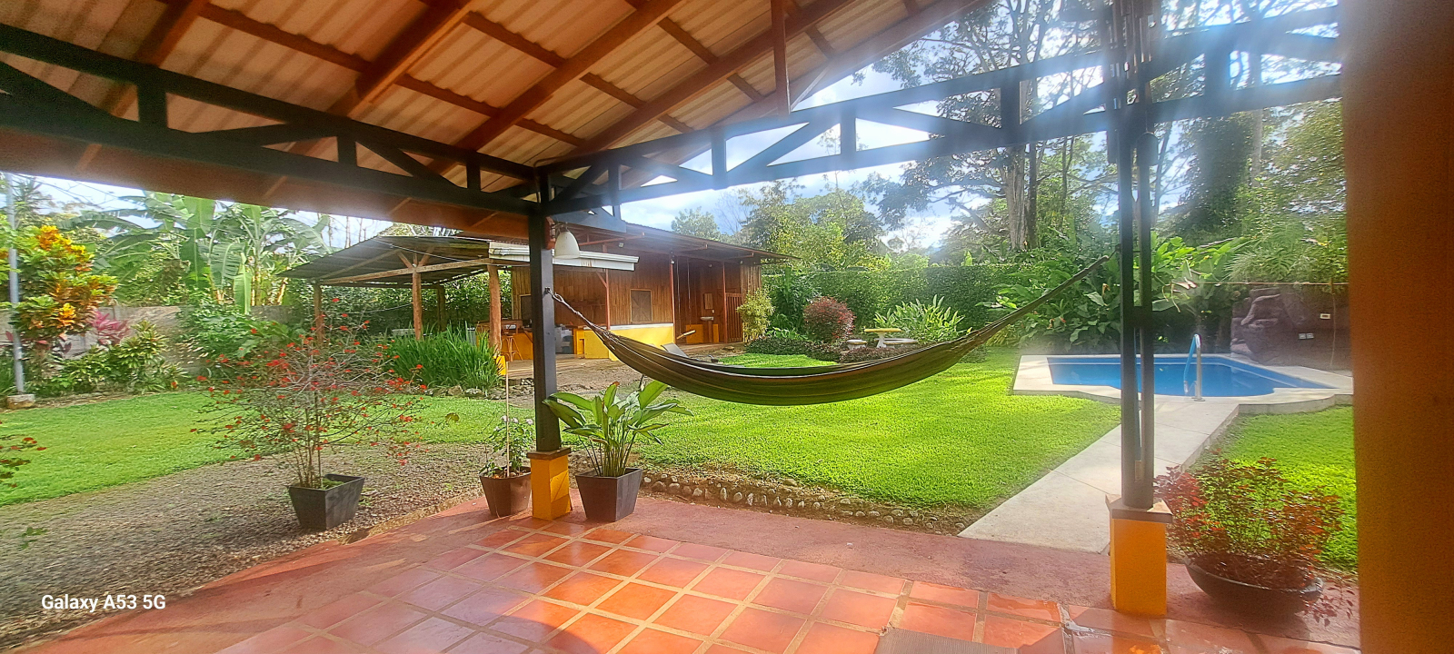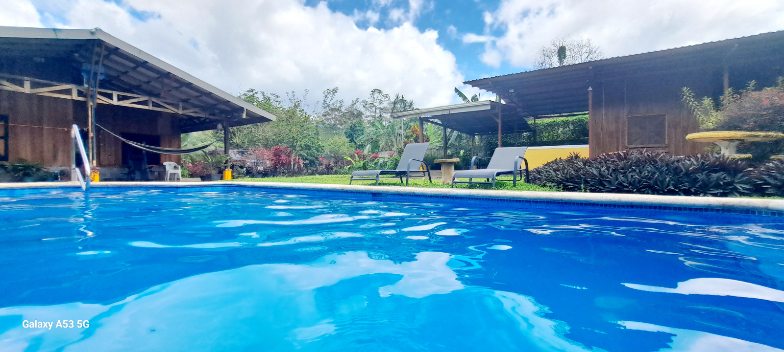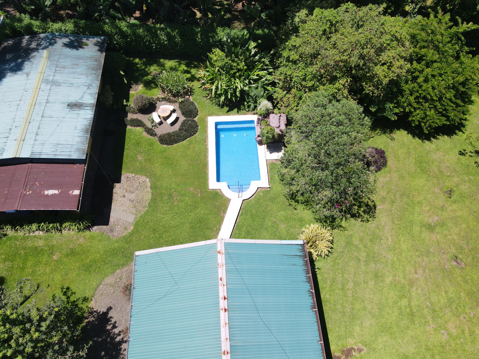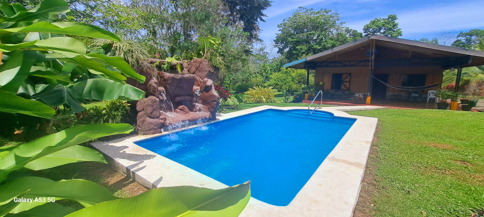 Dit is een hoofdgebouw met twee slaapkamers en een badkamer (cabine) samen met het pension (cabine), dat is een kamer van ongeveer 500 m² met aparte badkamer en BBQ / Rancho-gebied, het pand is bijna een hectare weelderige tropische planten en ongeveer 7 verschillende soorten fruitbomen, waaronder verschillende kokospalmen en een lindeboom.