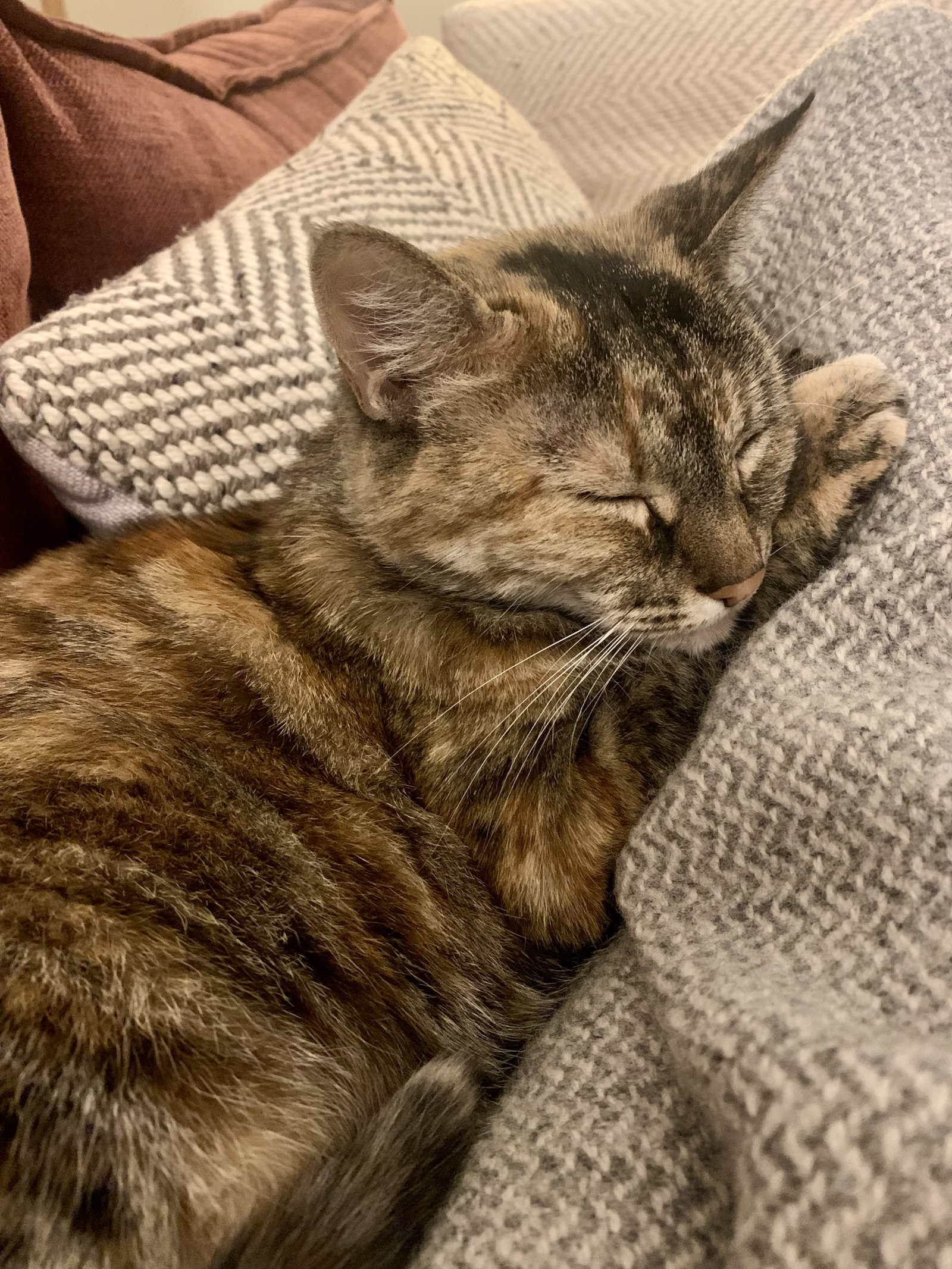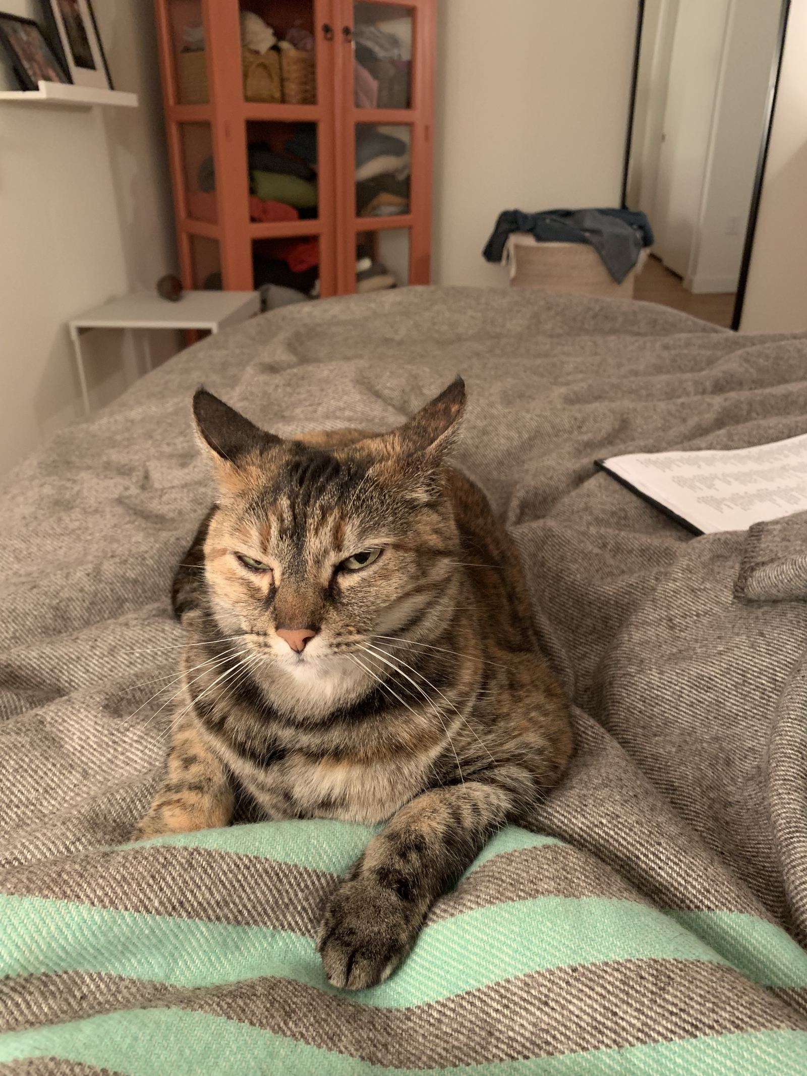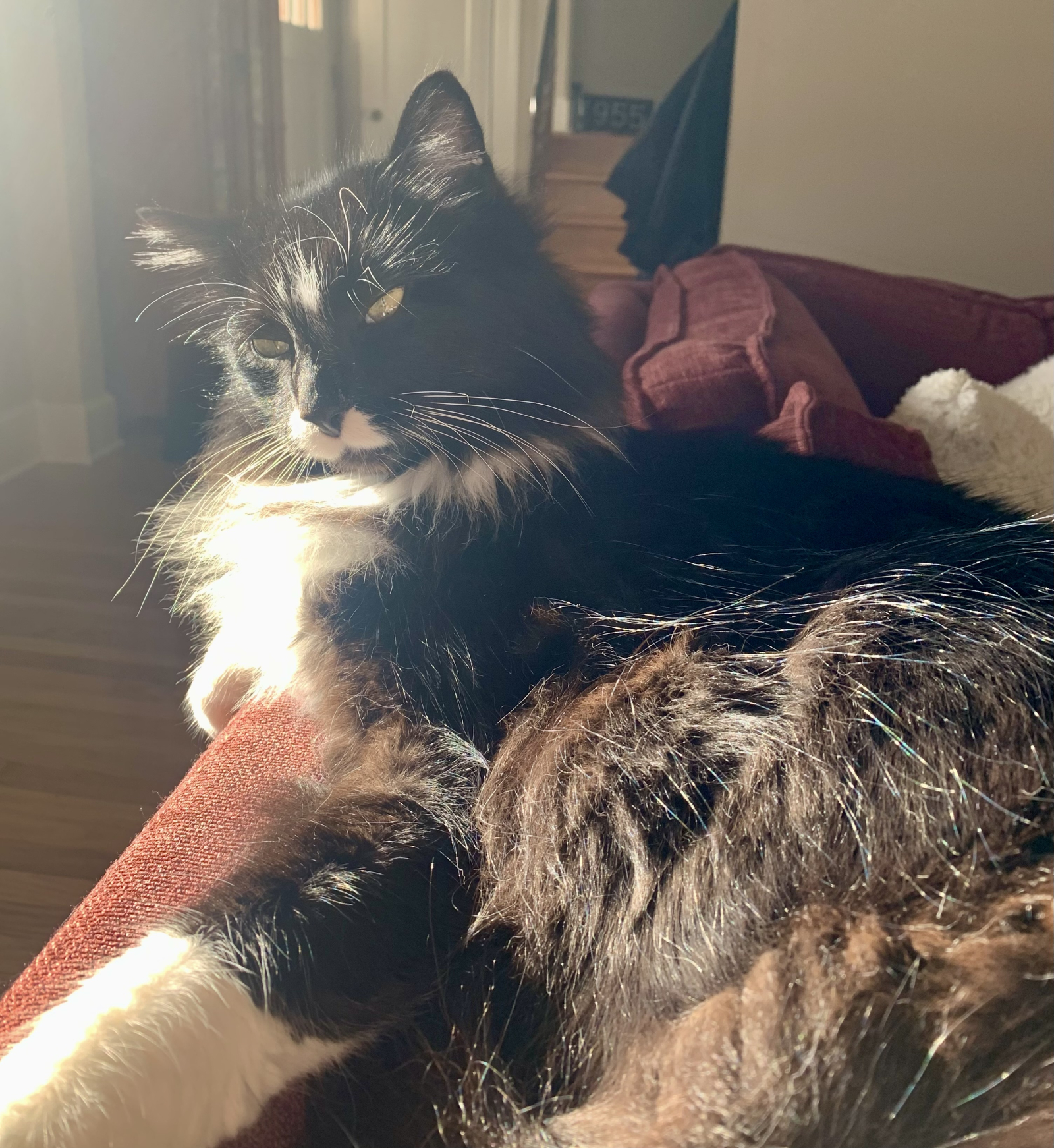 We hebben twee katten, Simon, een 6-jarige vriendelijke gigantische smoking (belachelijk extravert op zijn zachtst gezegd), en Ellie, een 8-jarige verlegen, zachte schildpadkleurige kat.