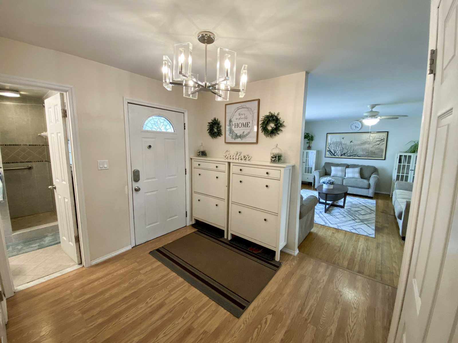 We hebben een elektronisch toetsenbord bij de ingang, het is een split-level woning.
