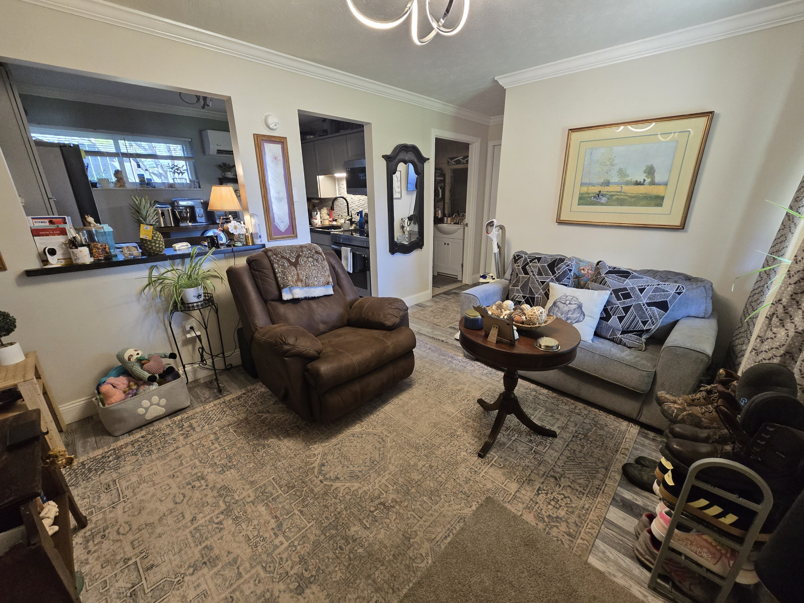 Moderne, met wi-fi verbonden slimme apparaten in een onberispelijk schoon en gezellig huis.