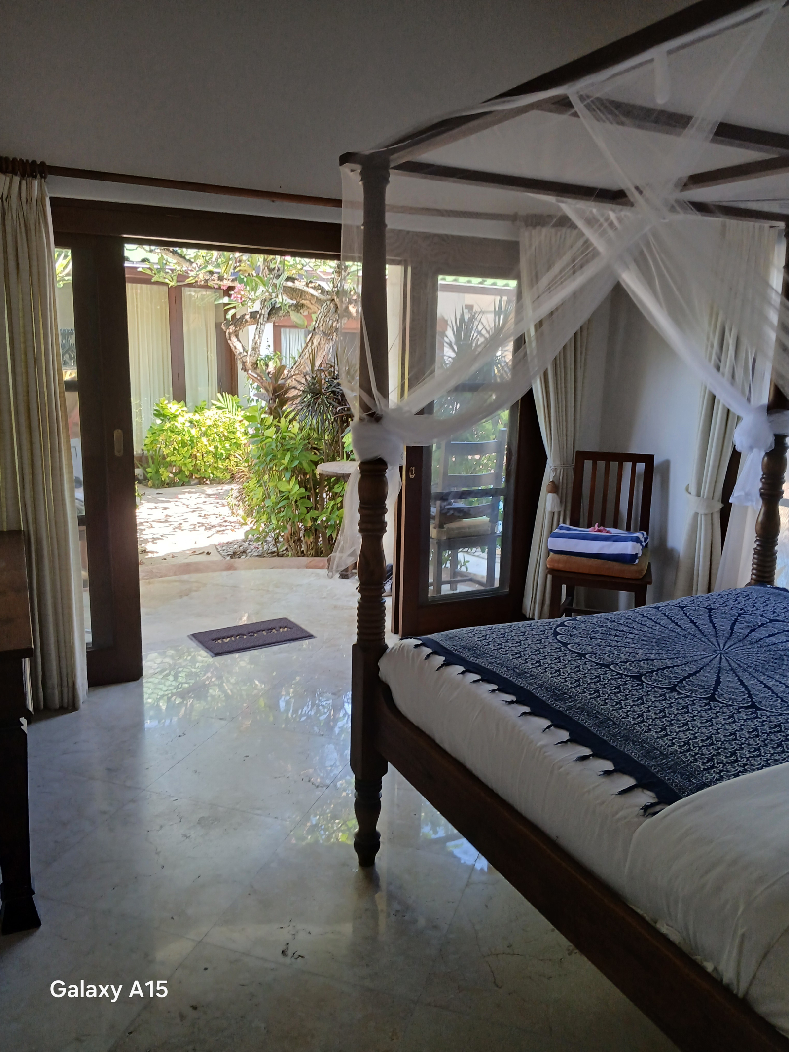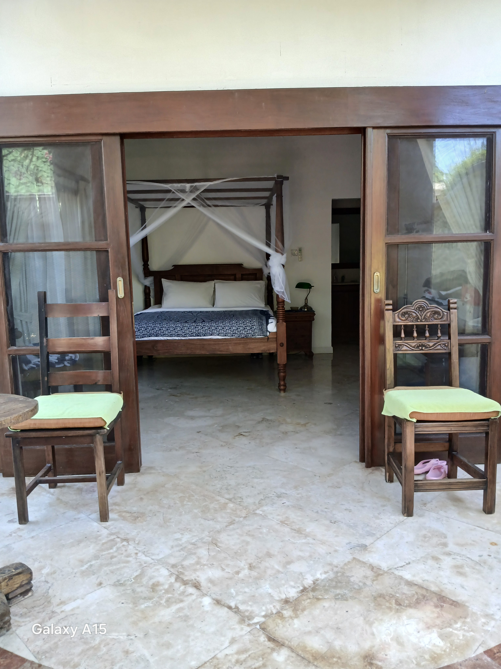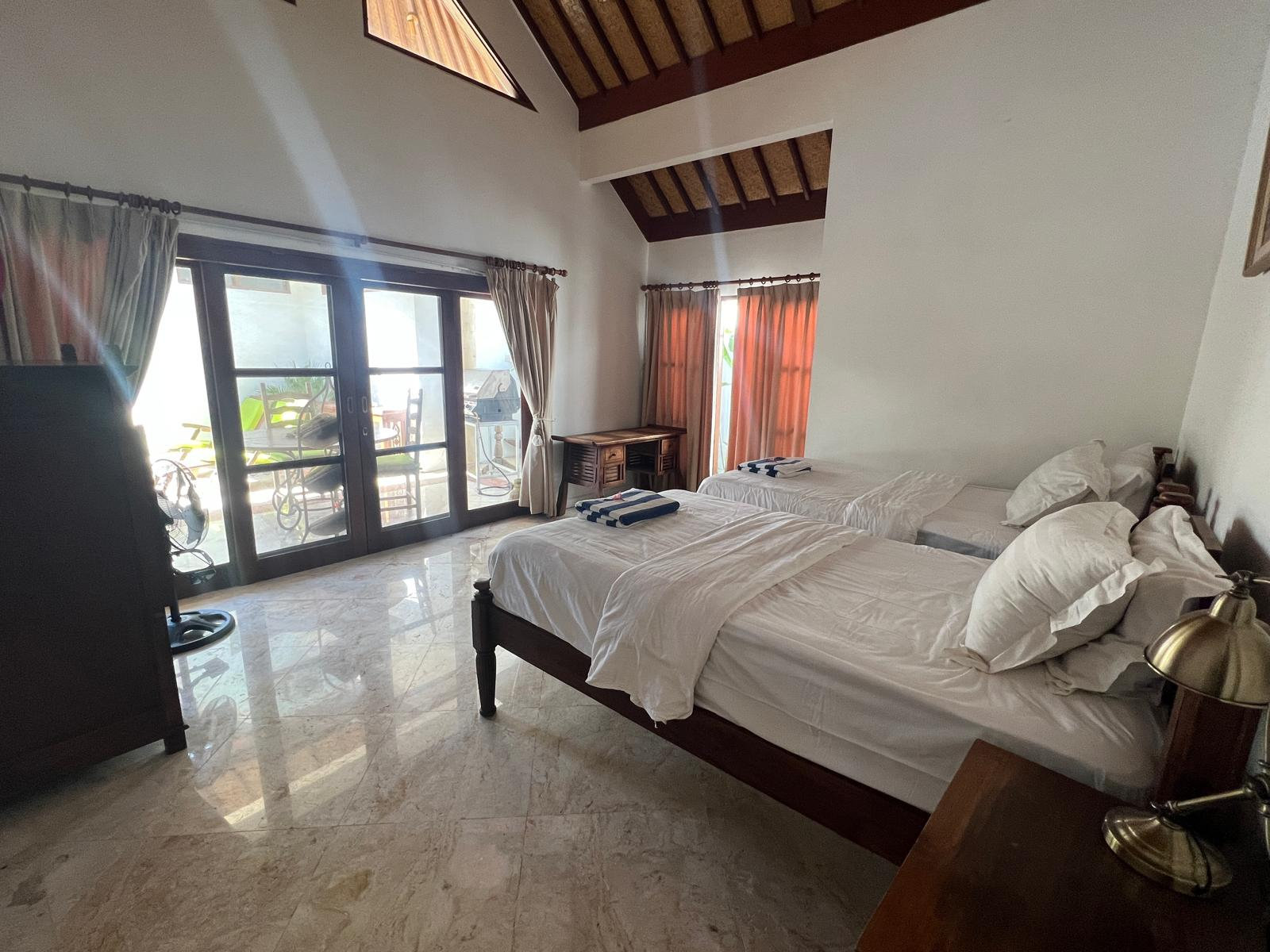 2 slaapkamers bevinden zich onder hetzelfde dak van de hoofdvilla en 1 slaapkamer ligt gescheiden van het hoofdgebouw. Het huishouden/tuinieren en het schoonmaken van het zwembad wordt 2 keer per week verzorgd.