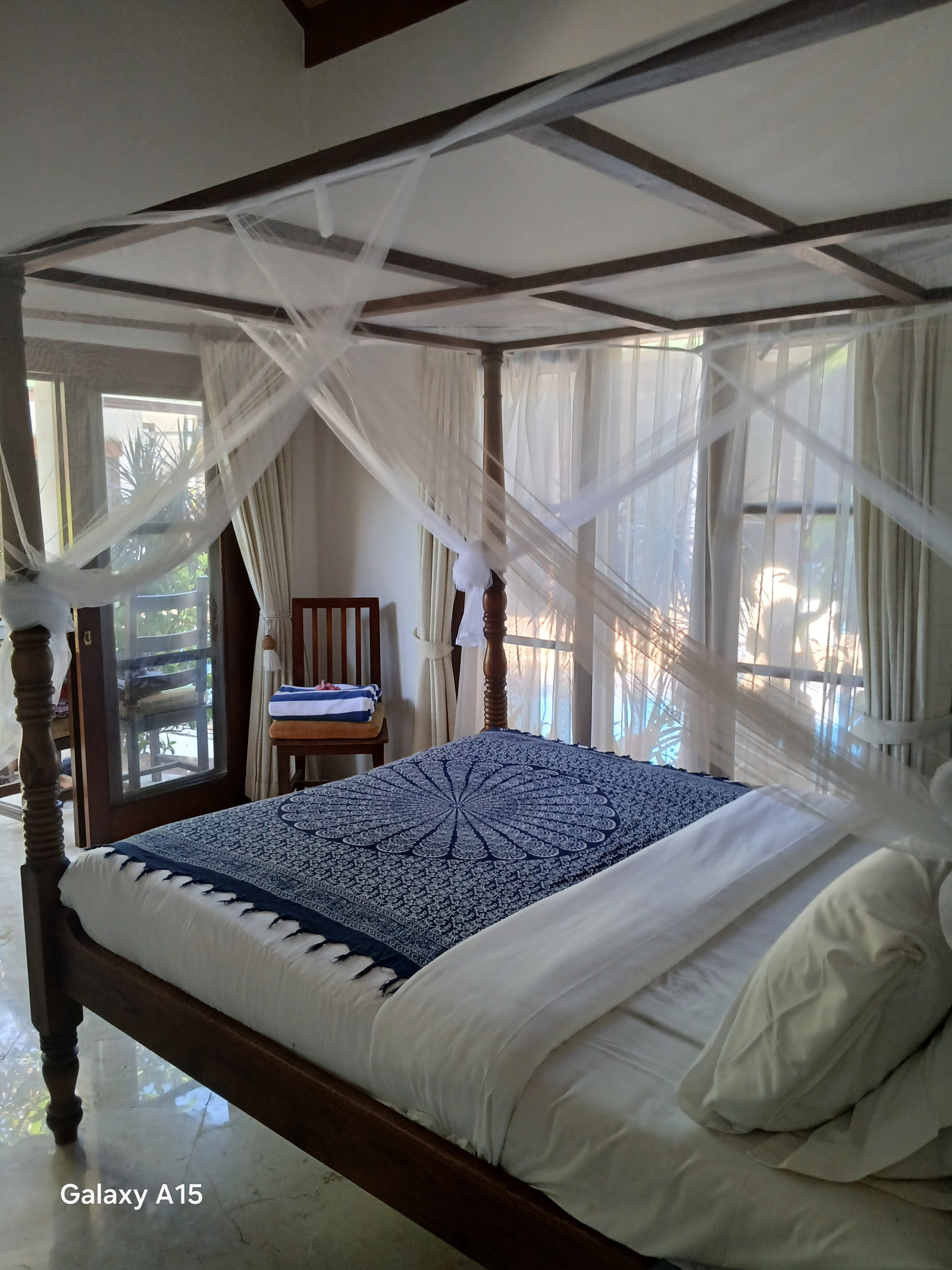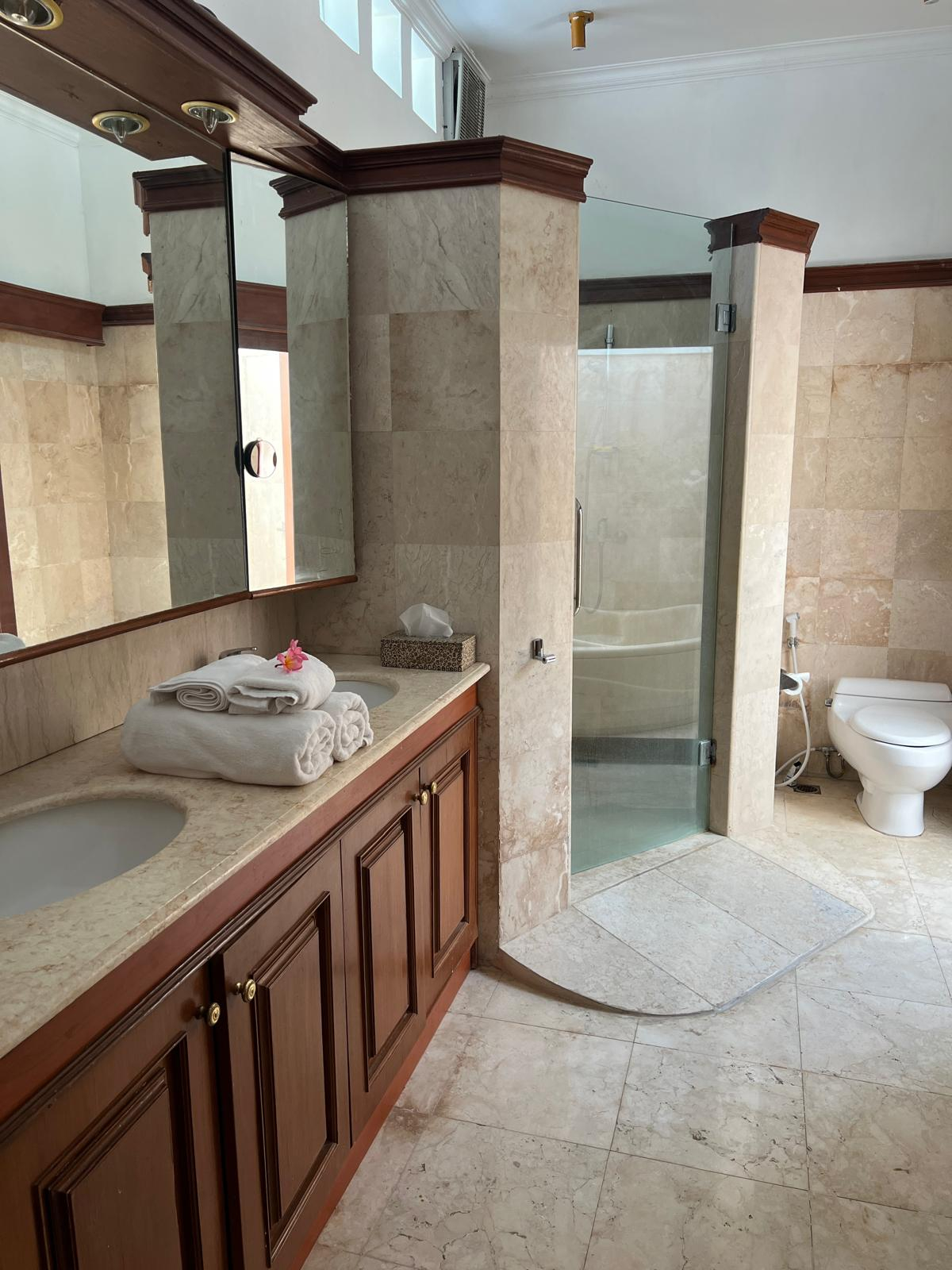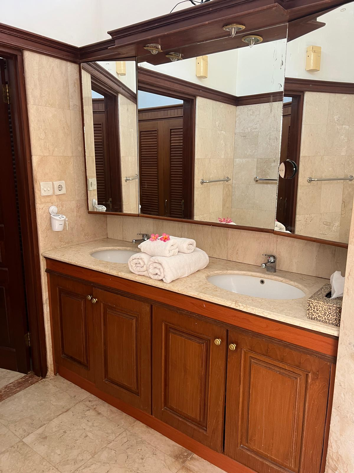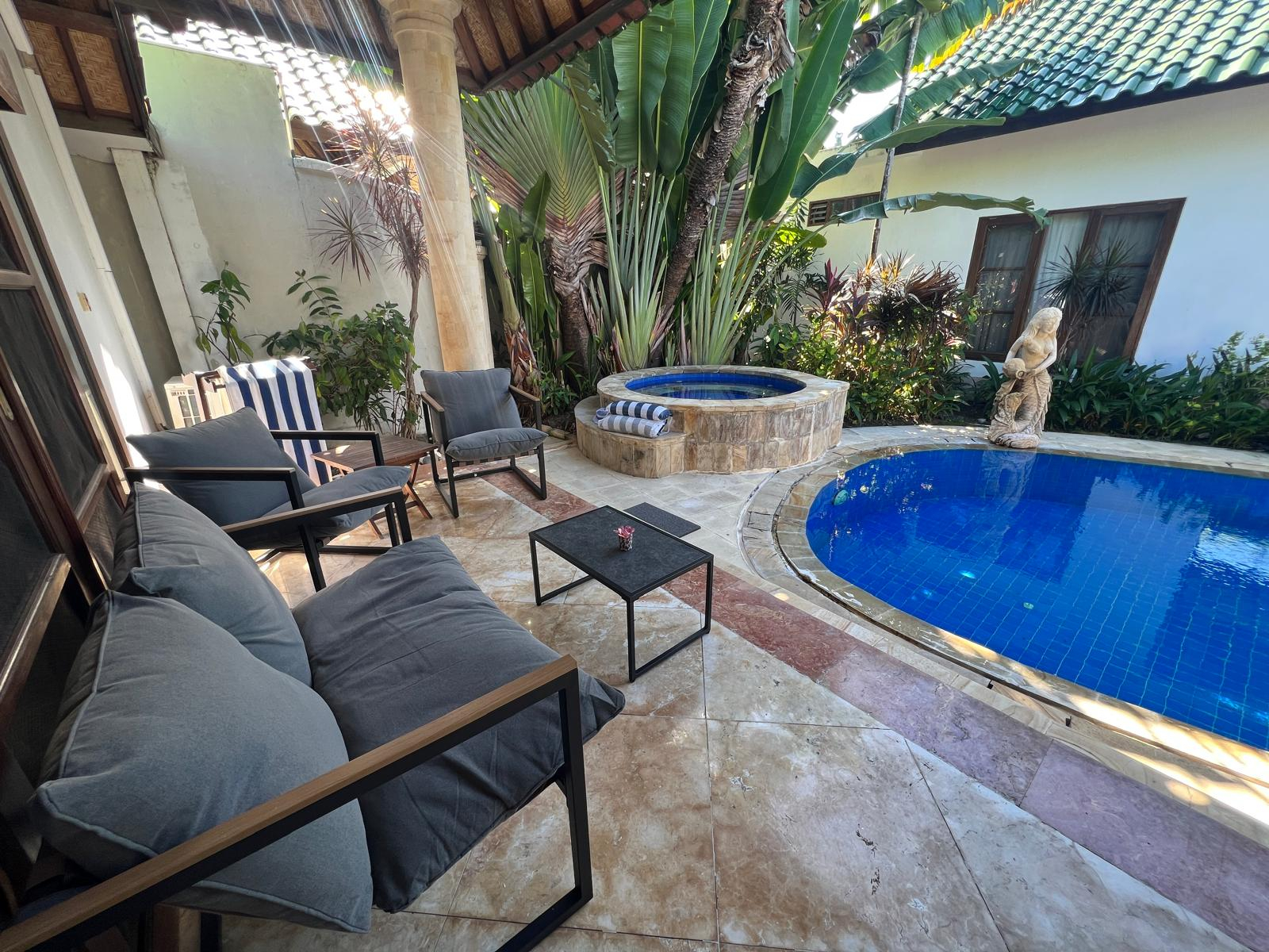 2 slaapkamers bevinden zich onder hetzelfde dak van de hoofdvilla en 1 slaapkamer ligt gescheiden van het hoofdgebouw. Het huishouden/tuinieren en het schoonmaken van het zwembad wordt 2 keer per week verzorgd.