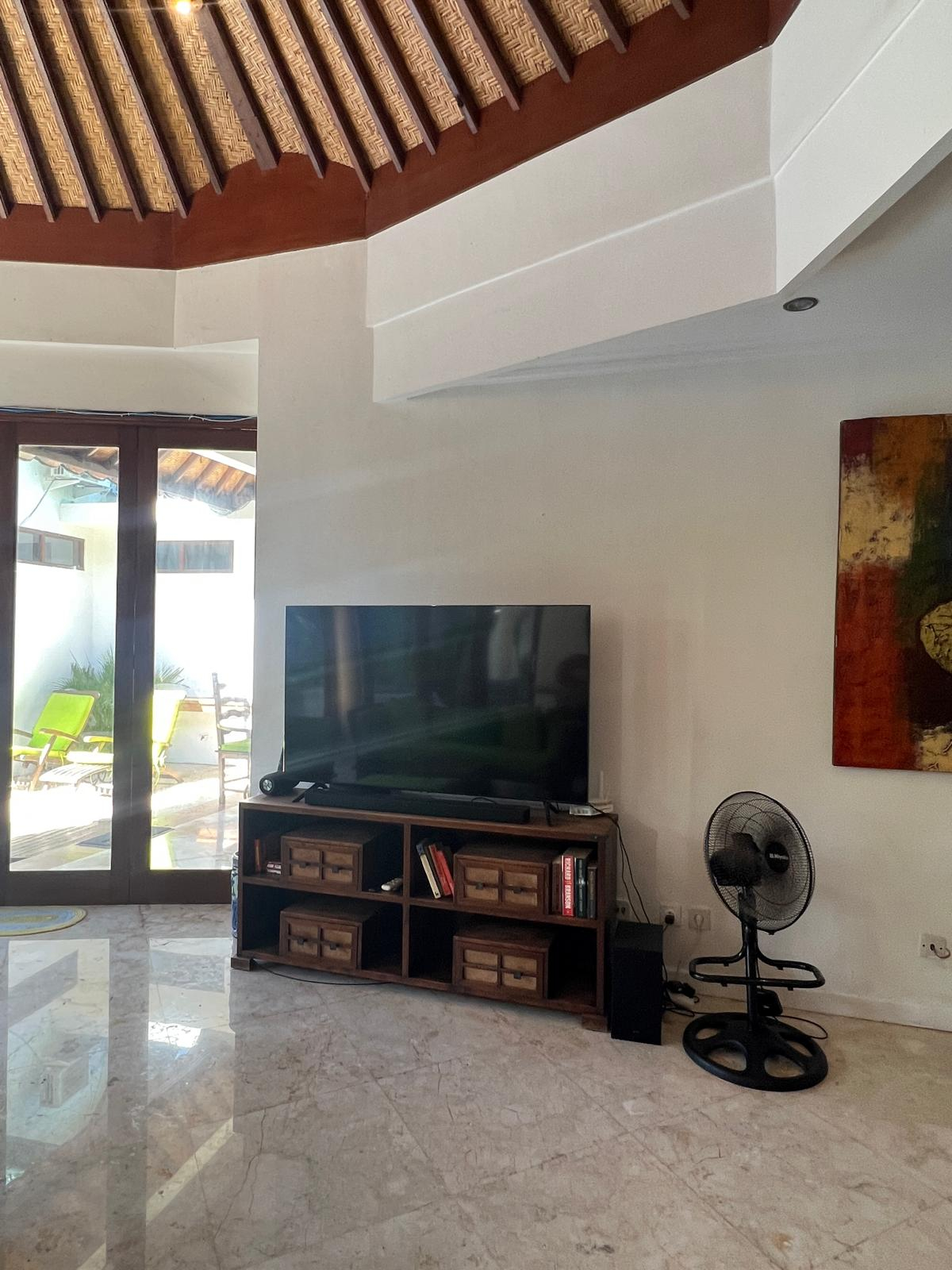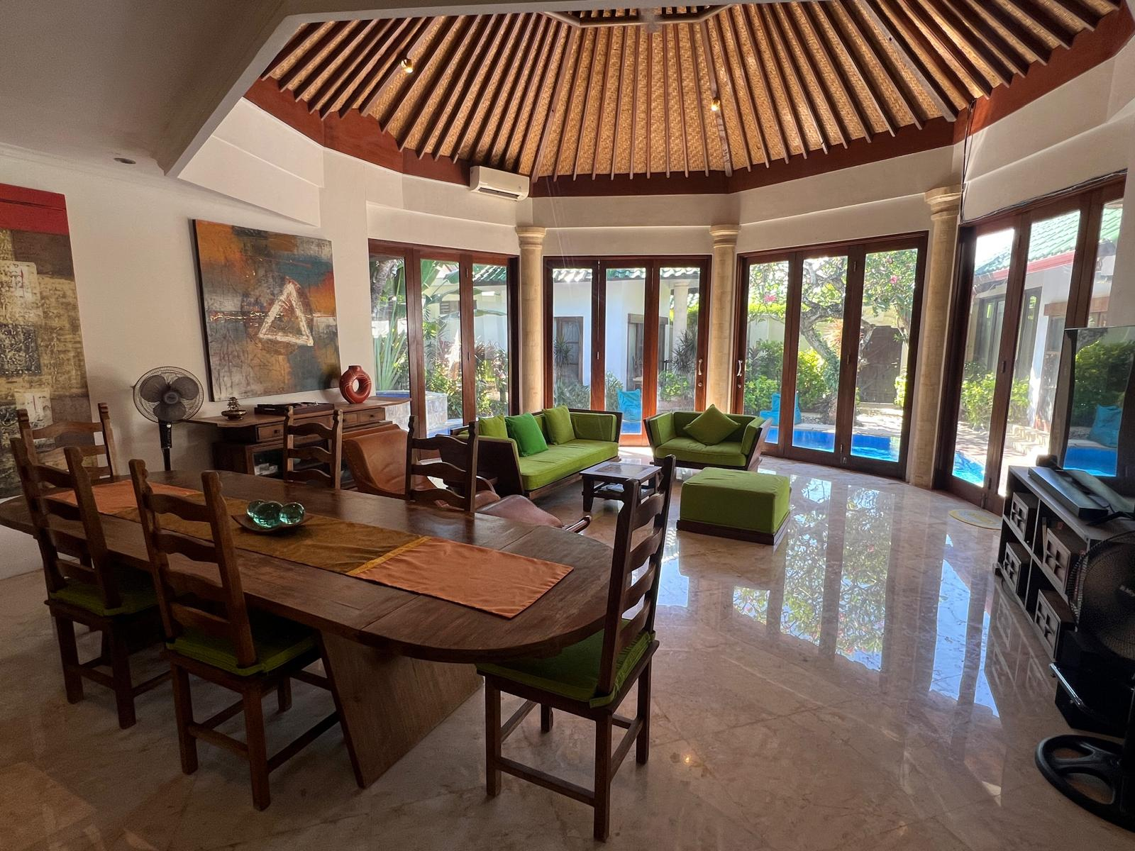 We hebben een villa met 3 badkamers / 3 slaapkamers en een groot zwembad. De woonkamer is ook zeer royaal en kijkt uit op het zwembad.