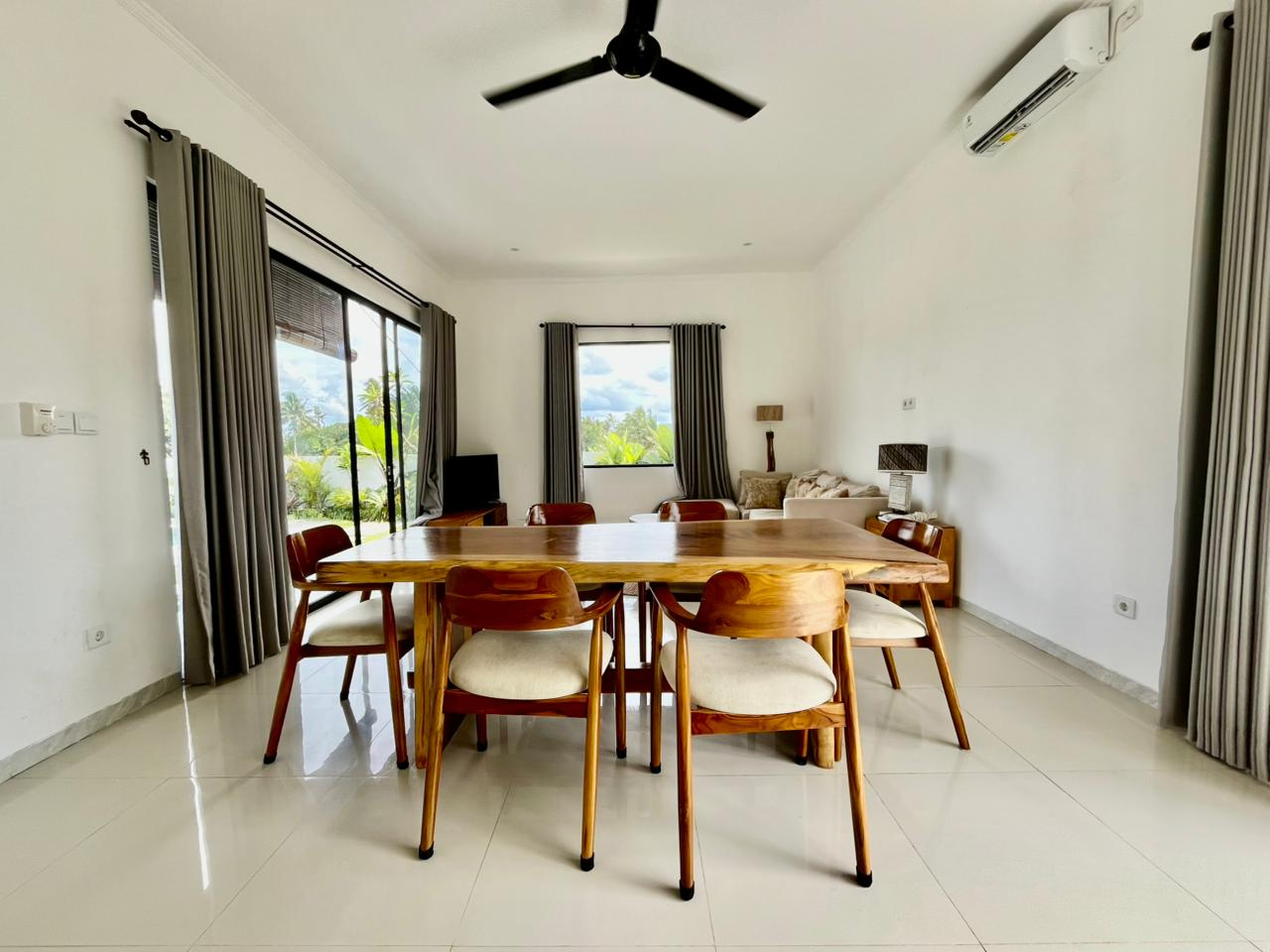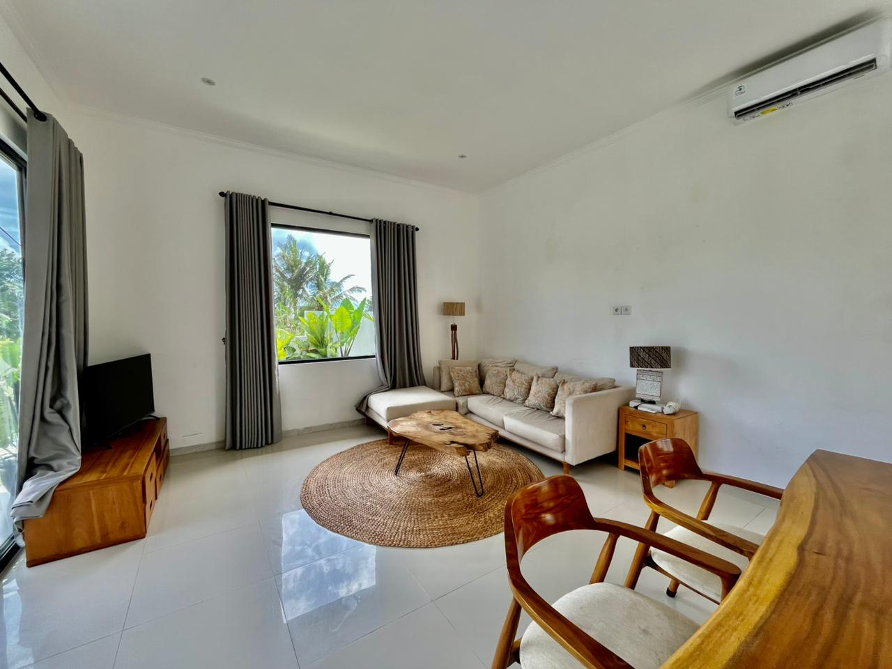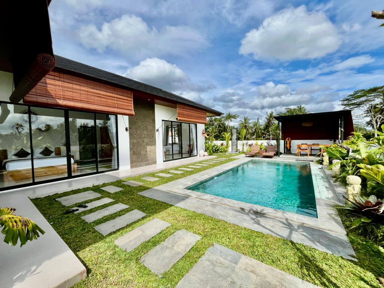 Ontsnap naar je eigen stukje paradijs op slechts 15 minuten van het hart van Ubud. Deze serene villa met 2 slaapkamers ligt naast weelderige rijstvelden in de buurt van de Empathy School en combineert traditionele Balinese charme met modern comfort. ✨ De ruimte • 2 ruime slaapkamers met ensuite badkamers • Gesloten woonkamer met airconditioning en grote glazen deuren met uitzicht op het zwembad • Volledig uitgeruste keuken, perfect voor huisgemaakte maaltijden • Privé zwembad met prachtig uitzicht op rijstvelden en palmbomen • Smaakvolle, volledig ingerichte interieurs met een rustige, artistieke touch 🌿 Inbegrepen voorzieningen • Tweewekelijkse schoonmaak • Snelle wifi • Elektriciteit inbegrepen • Zwembad- en tuinonderhoud We delen graag de details van onze chauffeur en chef-kok en delen al onze favoriete aanbevelingen voor restaurants, watervallen en kinderactiviteiten in de omgeving!