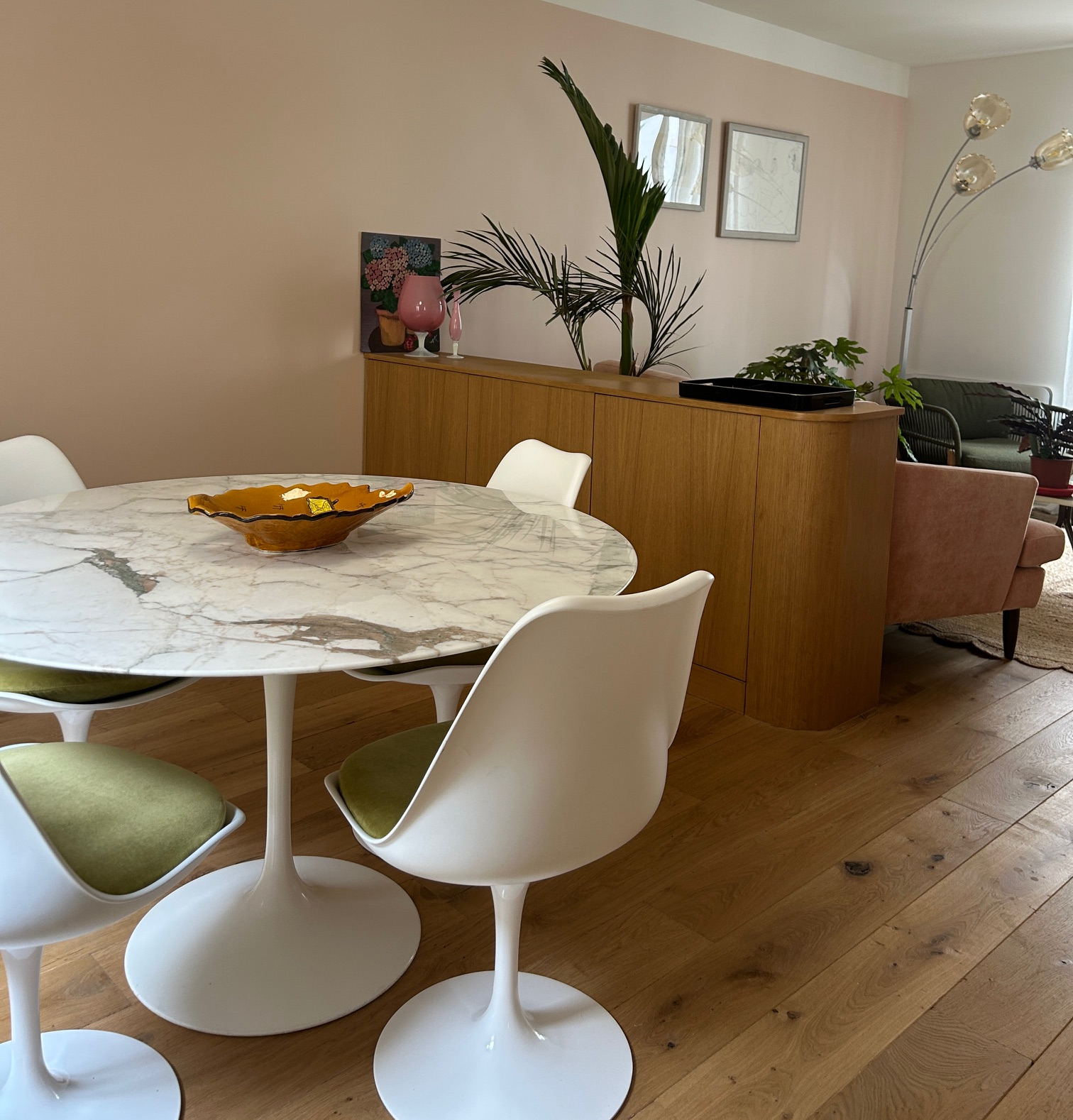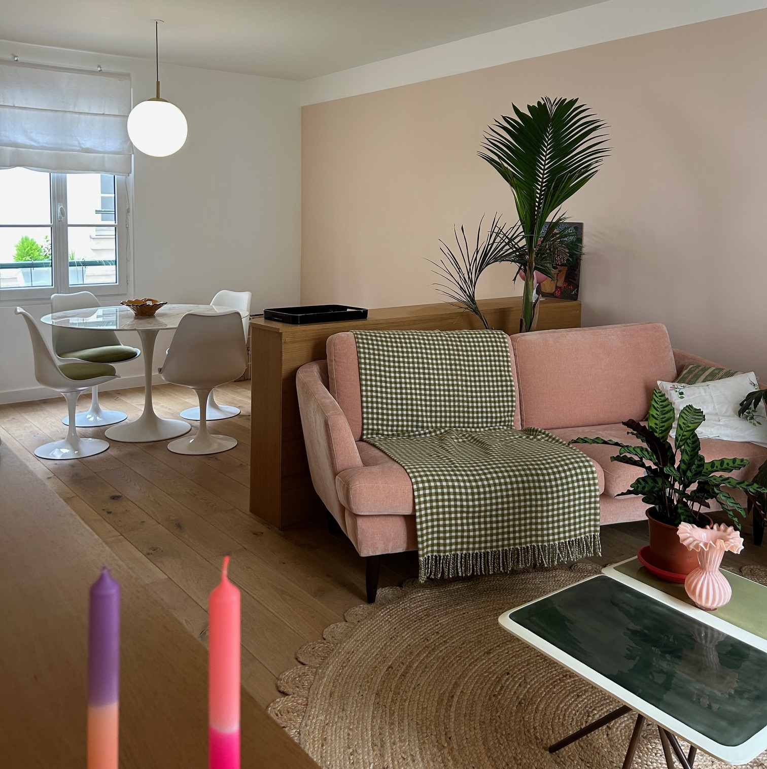 We wonen in Parijs in het 9e arrondissement, dus dicht bij Place Pigalle, de Moulin Rouge en Montmarte, maar ook dicht bij de Opéra Garnier en de warenhuizen. Vincent werkt op afstand voor een Italiaanse tech start-up, ik ben kunsthistoricus en ik werk een deel van het jaar aan de universiteit om cursussen te geven in de geschiedenis van design en kunst. We reizen graag regelmatig naar Italië, waar het bedrijf Wsense waar Vincent voor werkt kantoor houdt in Rome.