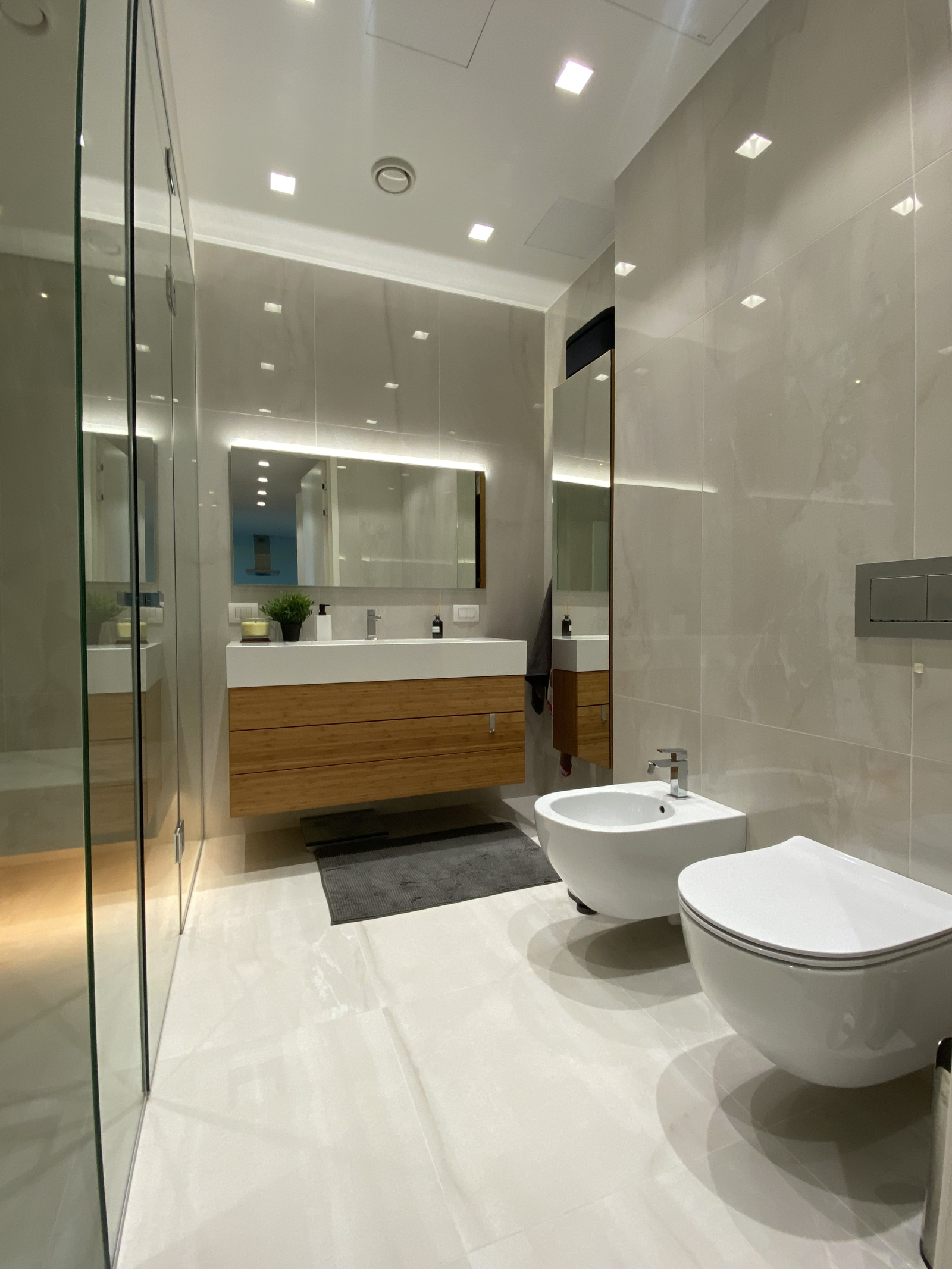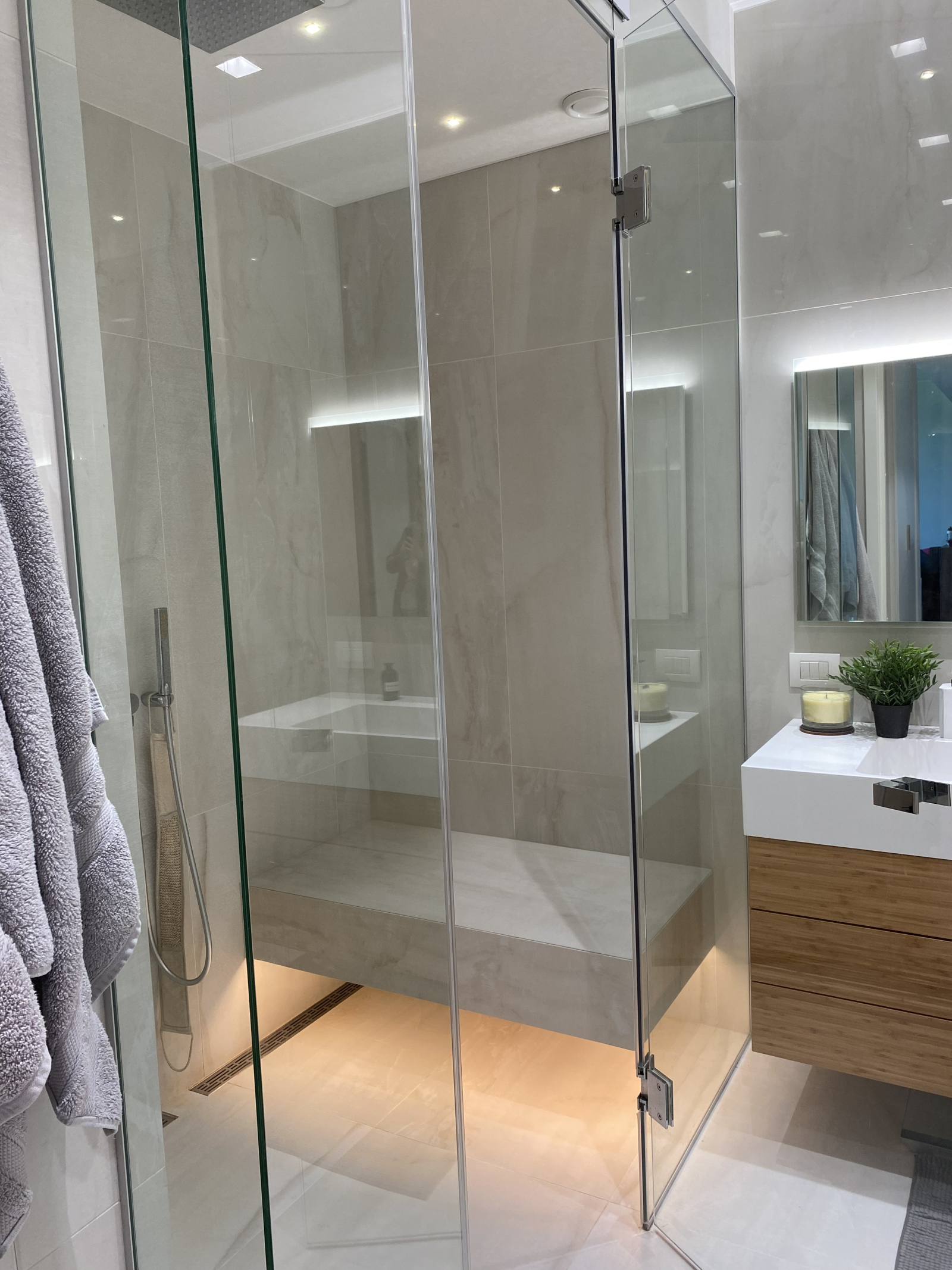 De badkamer heeft ook een stoomsauna. Er is ook een extra toilet aanwezig.