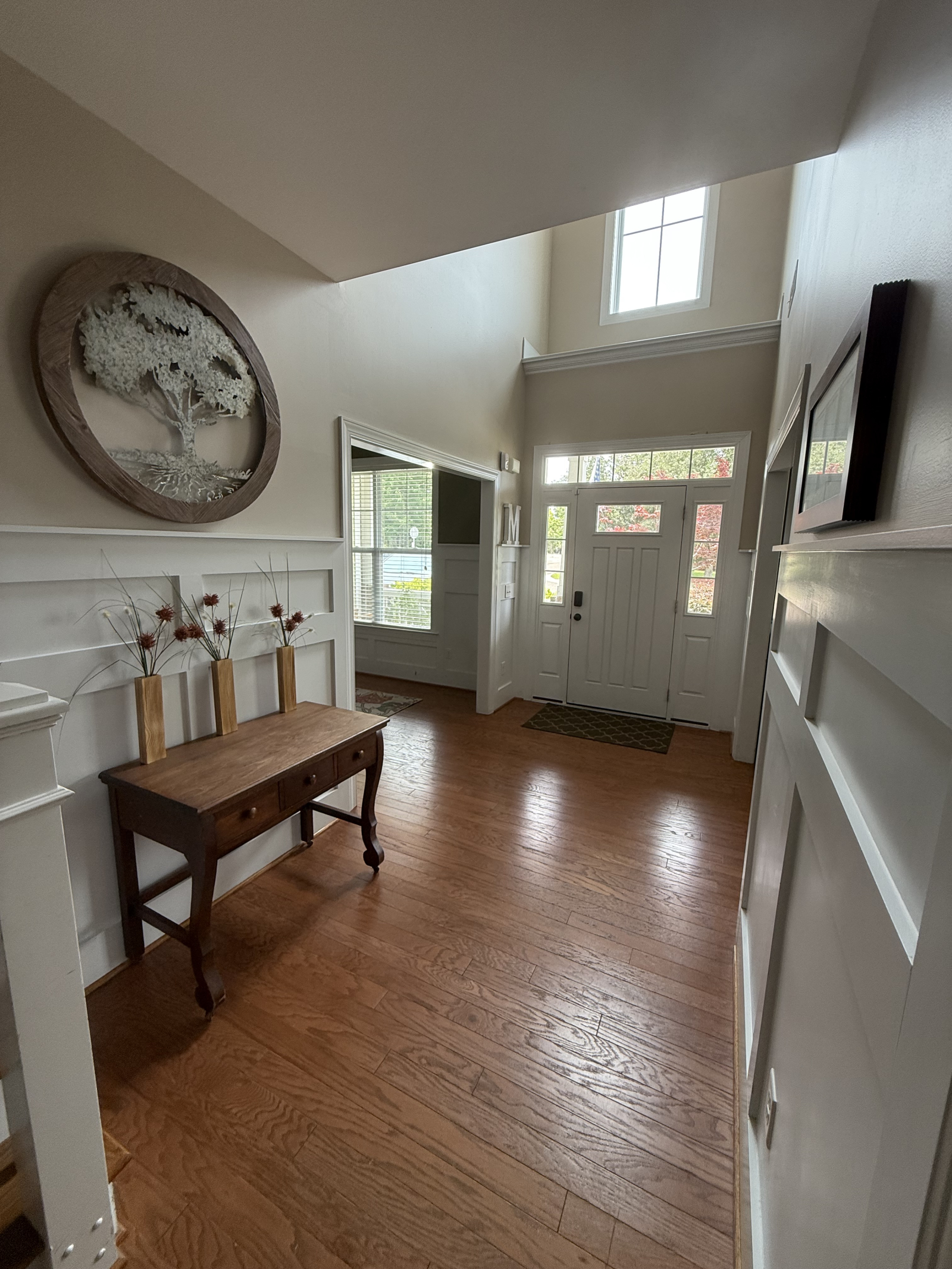 Huis met 2 verdiepingen en hardhouten trap. Er is een opstap van 4 "naar het huis vanuit de garage en de veranda. Er zijn 2 stenen treden naar beneden van het huis naar de achtertuin.