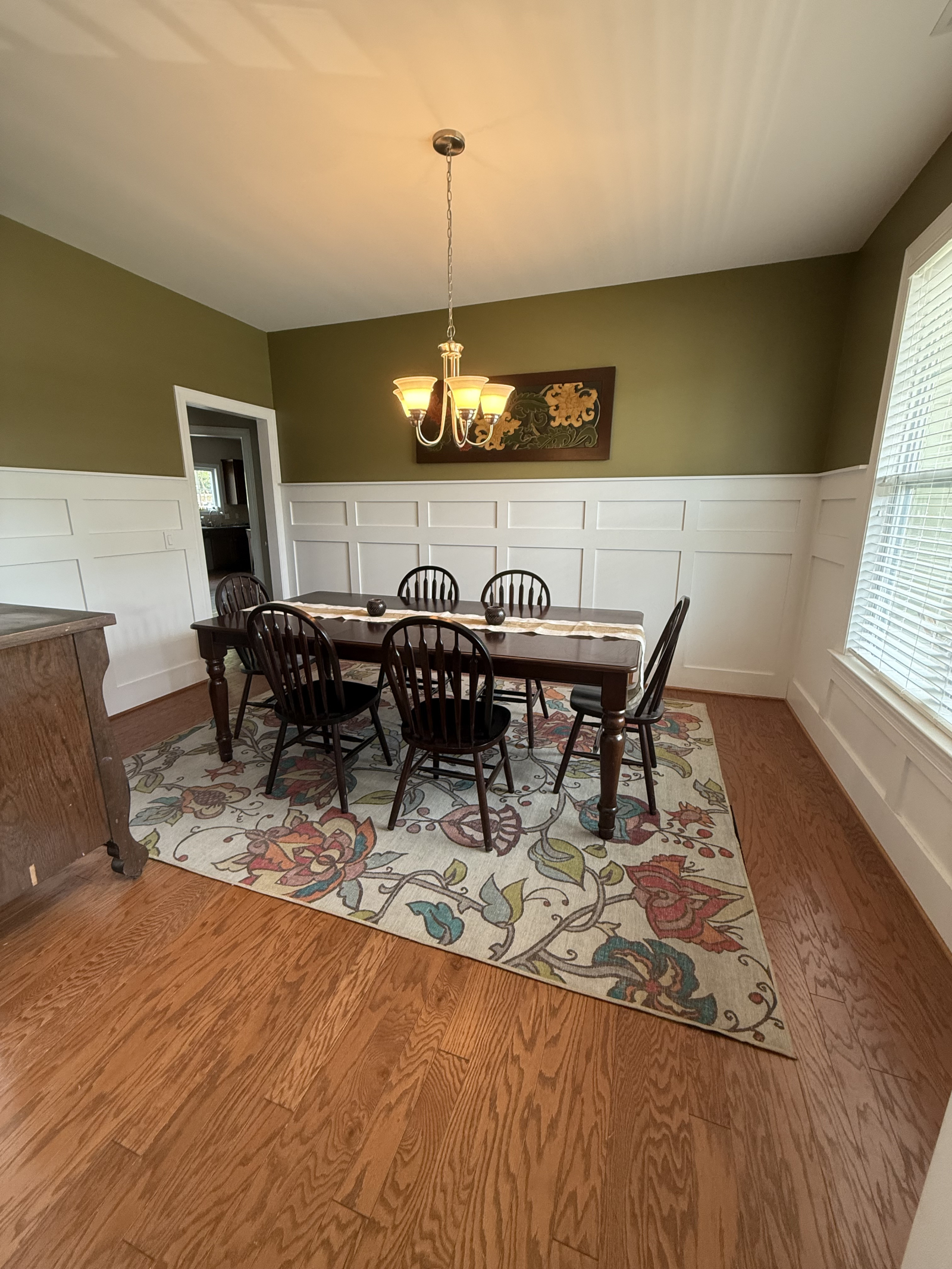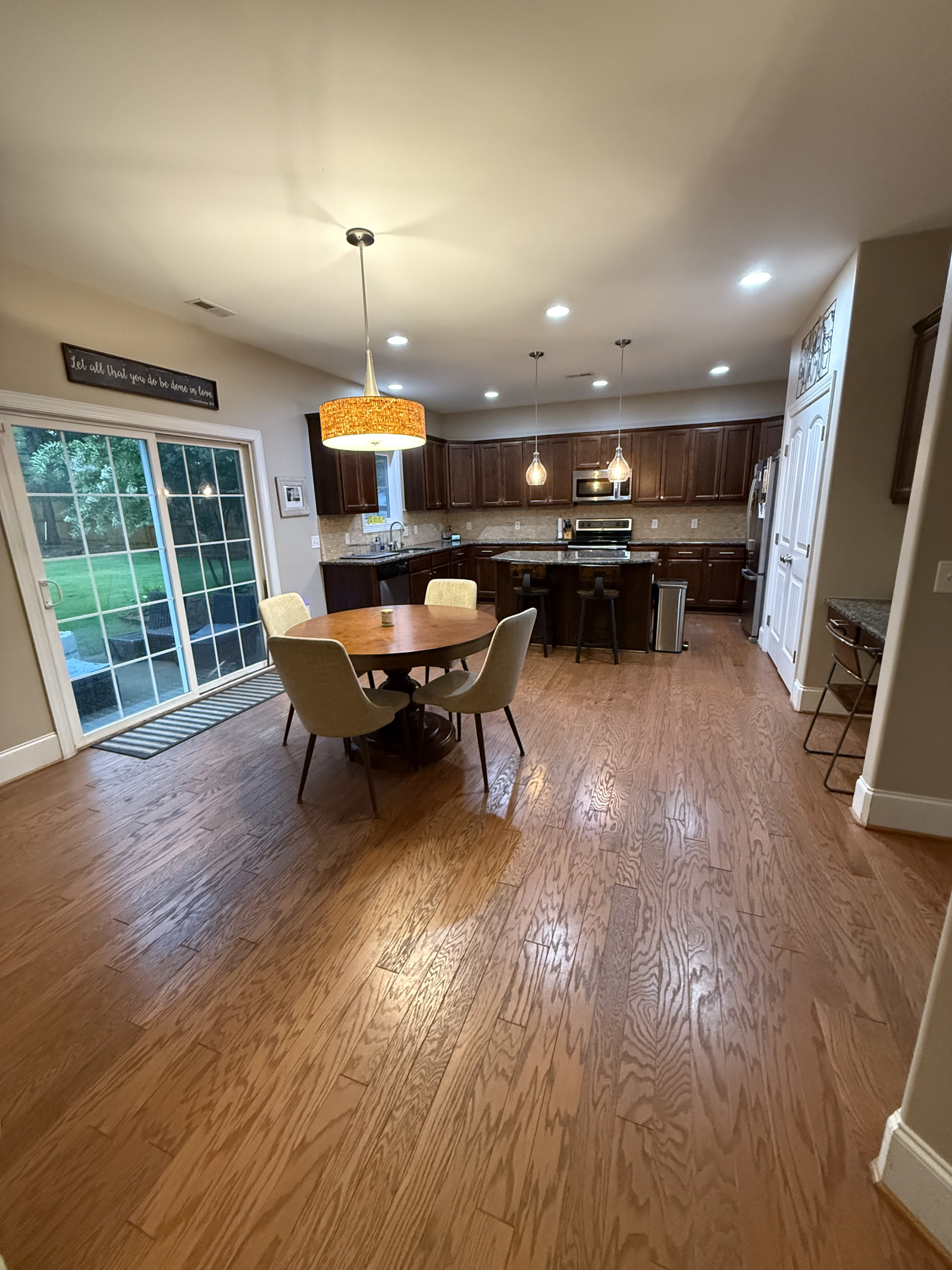 We hebben een huis met een open vloer met een aparte eetkamer voor 8 personen, een eetkeuken voor 4 personen en 2 barstoelen.