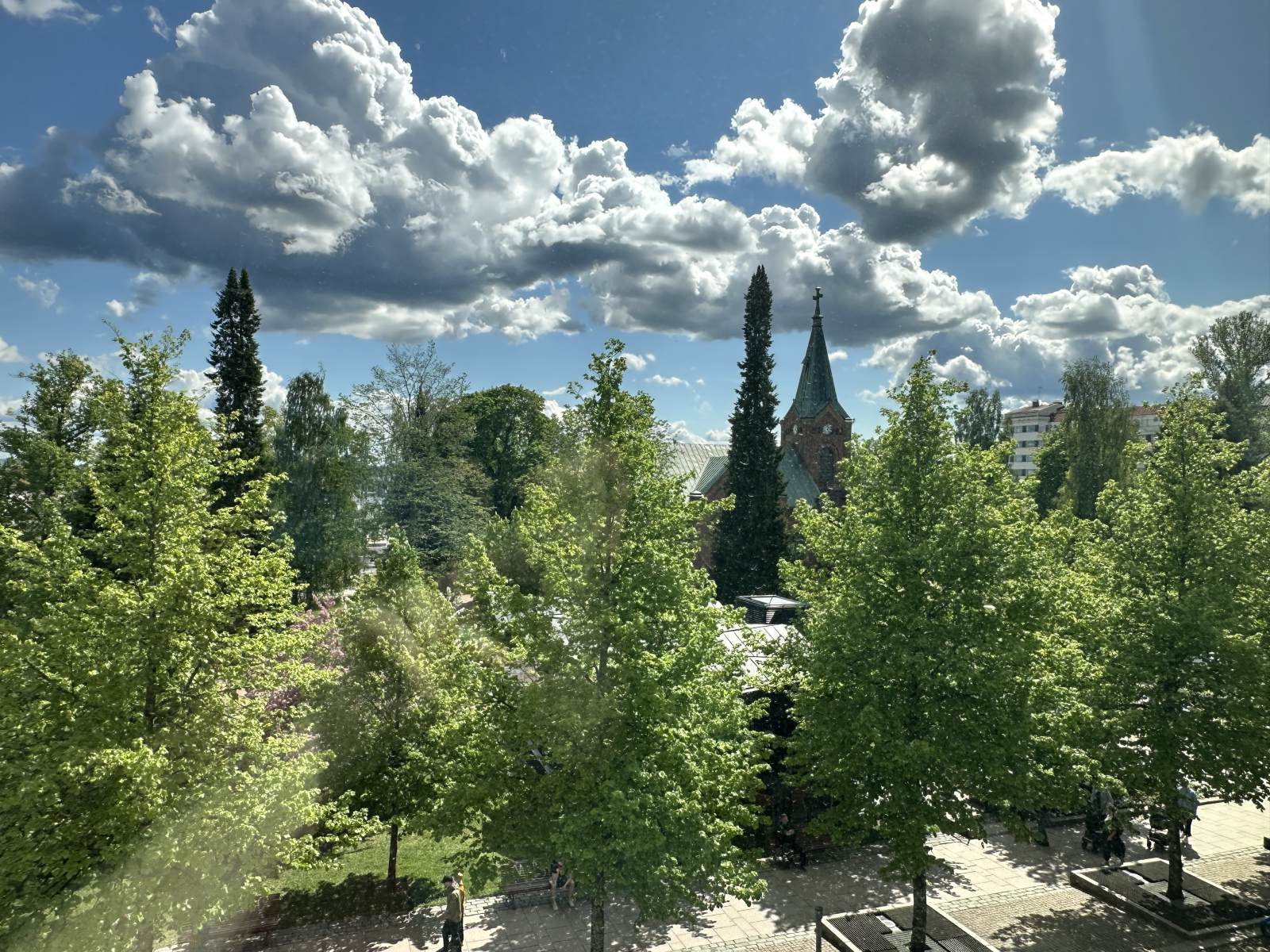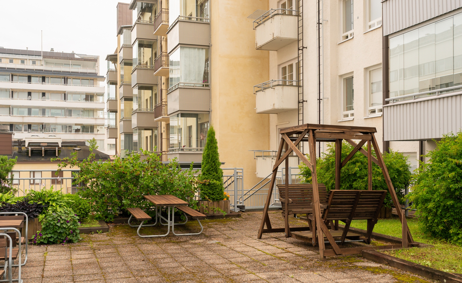 We grenzen aan het beroemde Kirkkopuisto Park, het winkelgebied en de universiteit. Het theater en het stadhuis liggen aan de andere kant van het park. Het busstation en het treinstation niet ver daarachter. De belangrijkste sportlocaties en de haven zijn ook te voet te bereiken of leuk om te bezoeken op een scooter.
