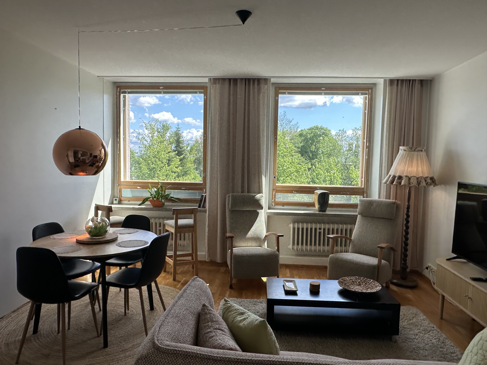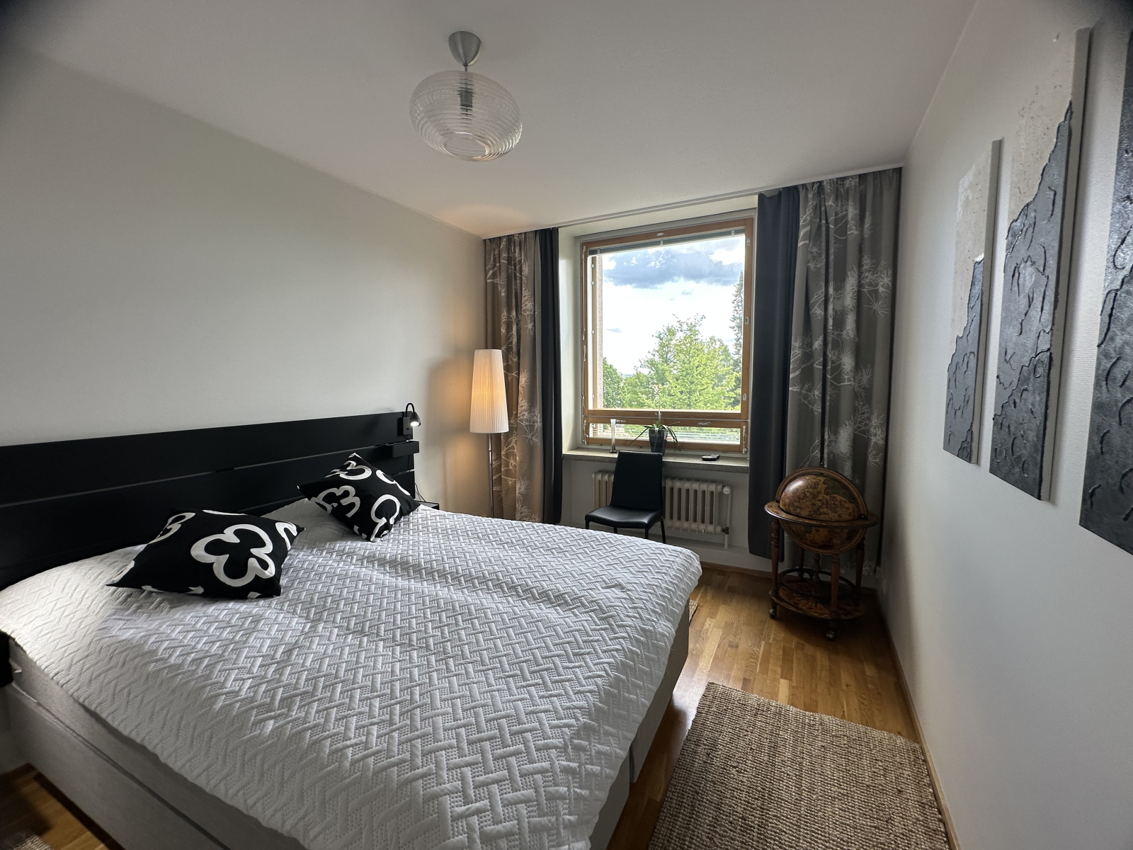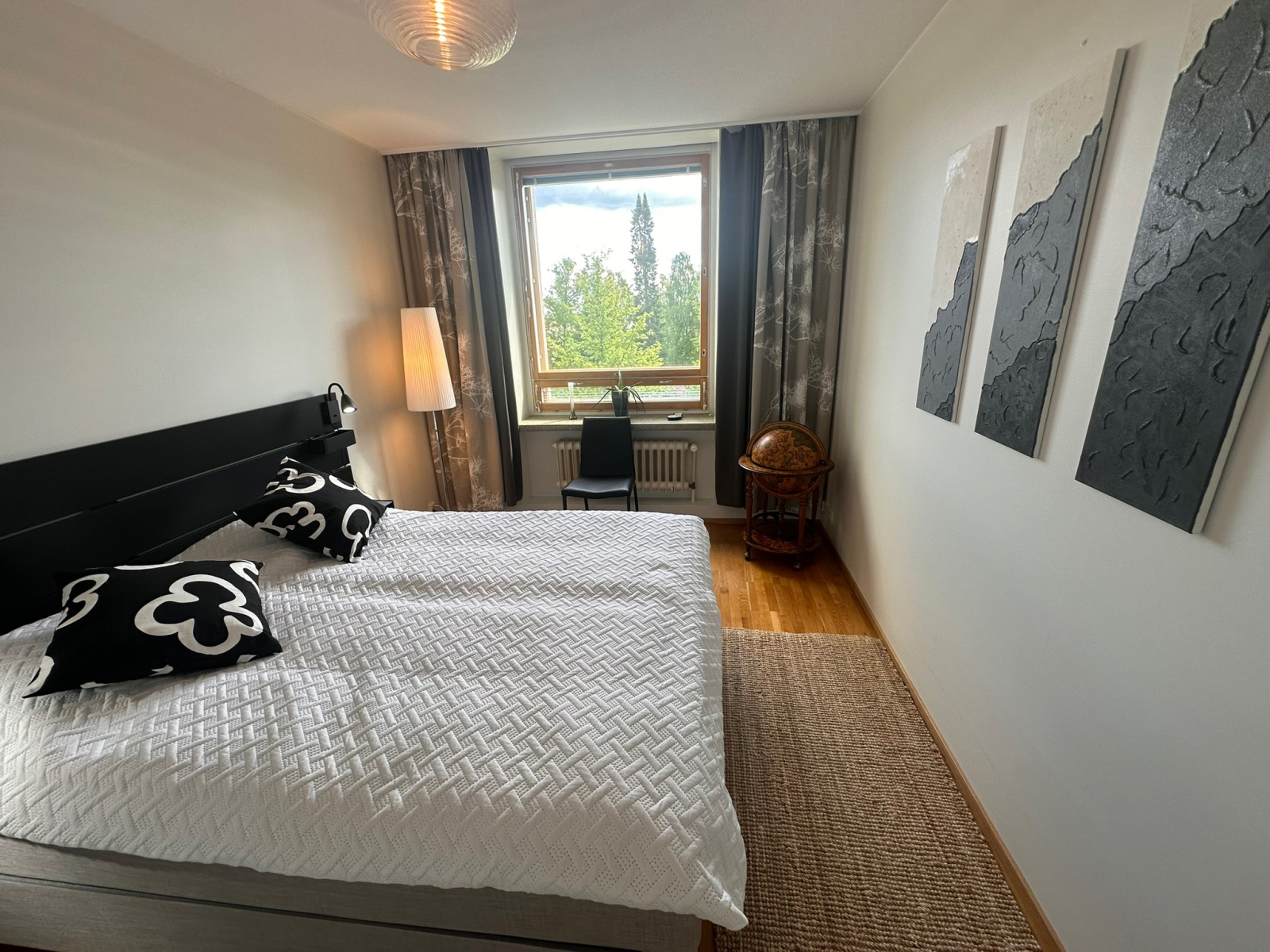 Mooi appartement met een slaapkamer met een tweepersoonsbed (queensize bed), woonkamer en grote open keuken. De doucheruimte is ook groot en bestaat uit een wasmachine/droger en een sauna. Het park en Kirkkopuisto zijn vanuit elke kamer te zien.
