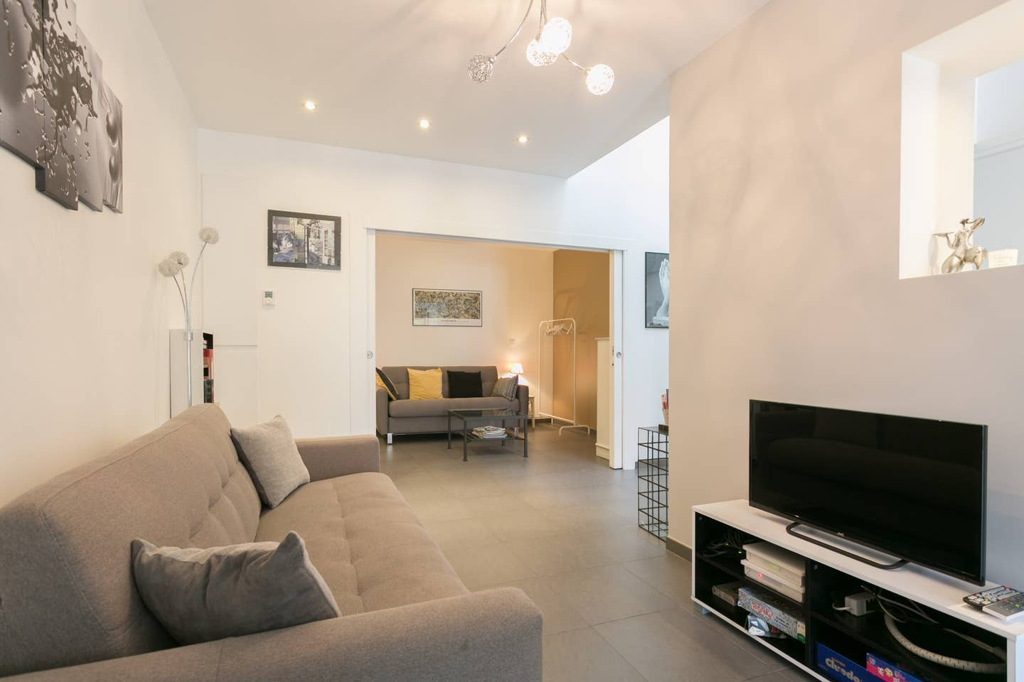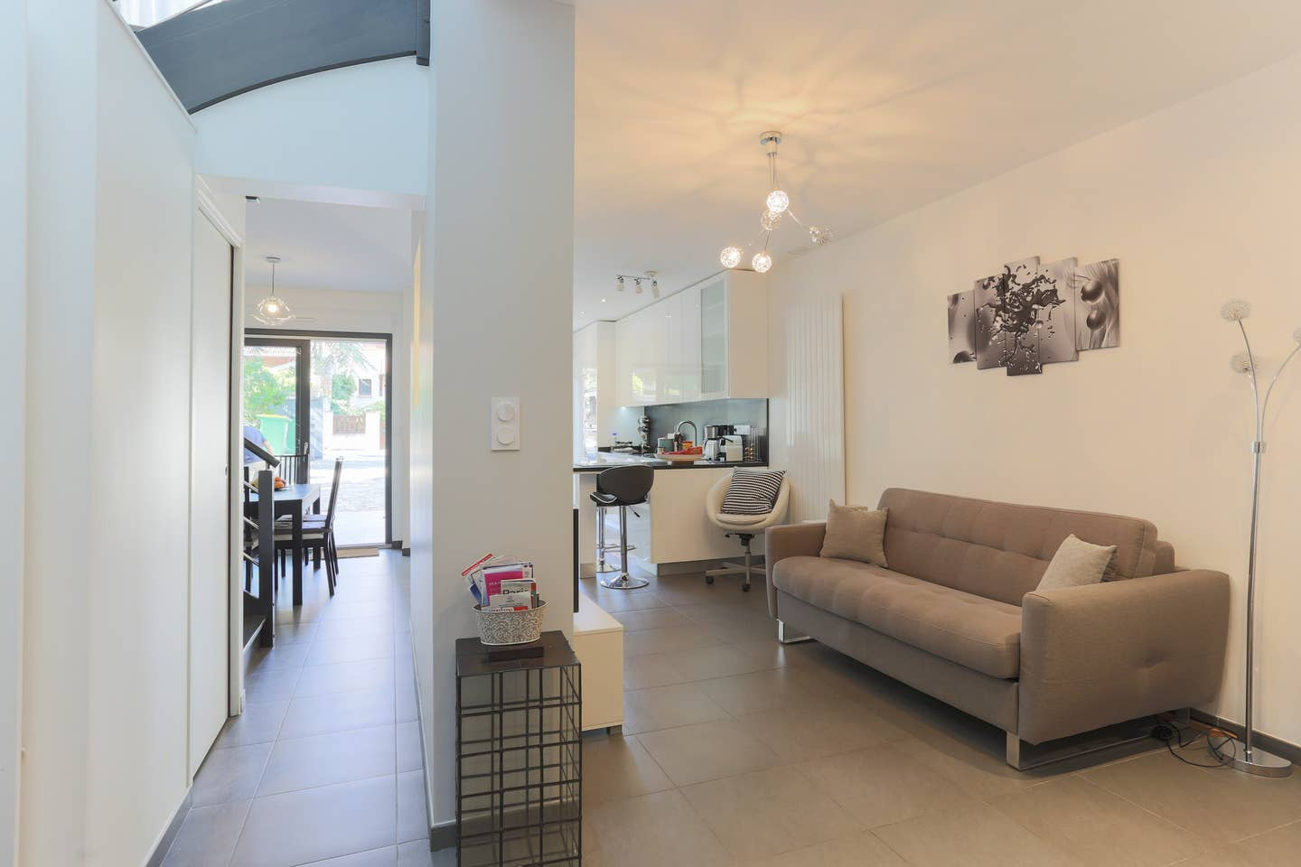 Stadscentrum, huis uit 2016, 2 terrassen, een op de begane grond en op de 1e, loft sfeer, hoog plafond, moderne balkenplafond boven, licht, 2 aparte toiletten, 2 aparte badkamers (douche en bad). Veel restaurants op loopafstand en bakker, supermarkt en markten ook. Veel parken en de bossen niet ver weg. Metro, tram, bus