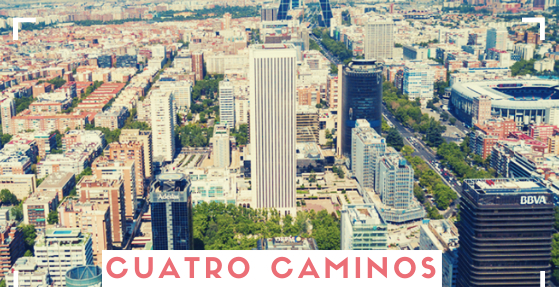 Cuatro Caminos wijk in Madrid. Rustig en goed verbonden, met een metrohalte (Alvarado) op slechts een steenworp afstand.