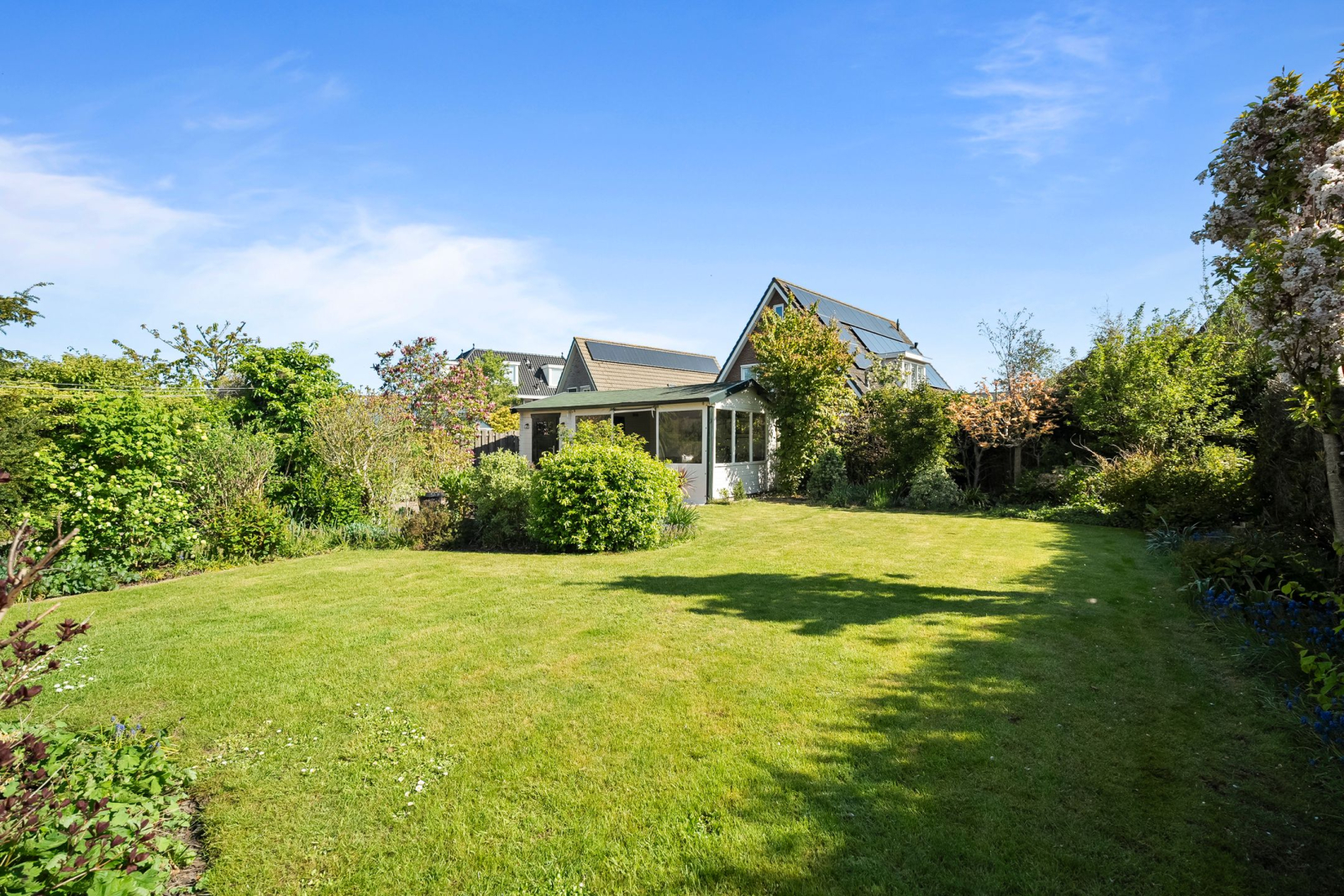 De woning heeft een lichte, ruime woonkamer met openslaande deuren naar de tuin, een open keuken, bijkeuken en inpandige garage. Boven zijn drie slaapkamers en een moderne badkamer. De tuin rondom heeft meerdere terrassen, een overkapping en volop privacy. Perfect om buiten te eten, te relaxen of te spelen.