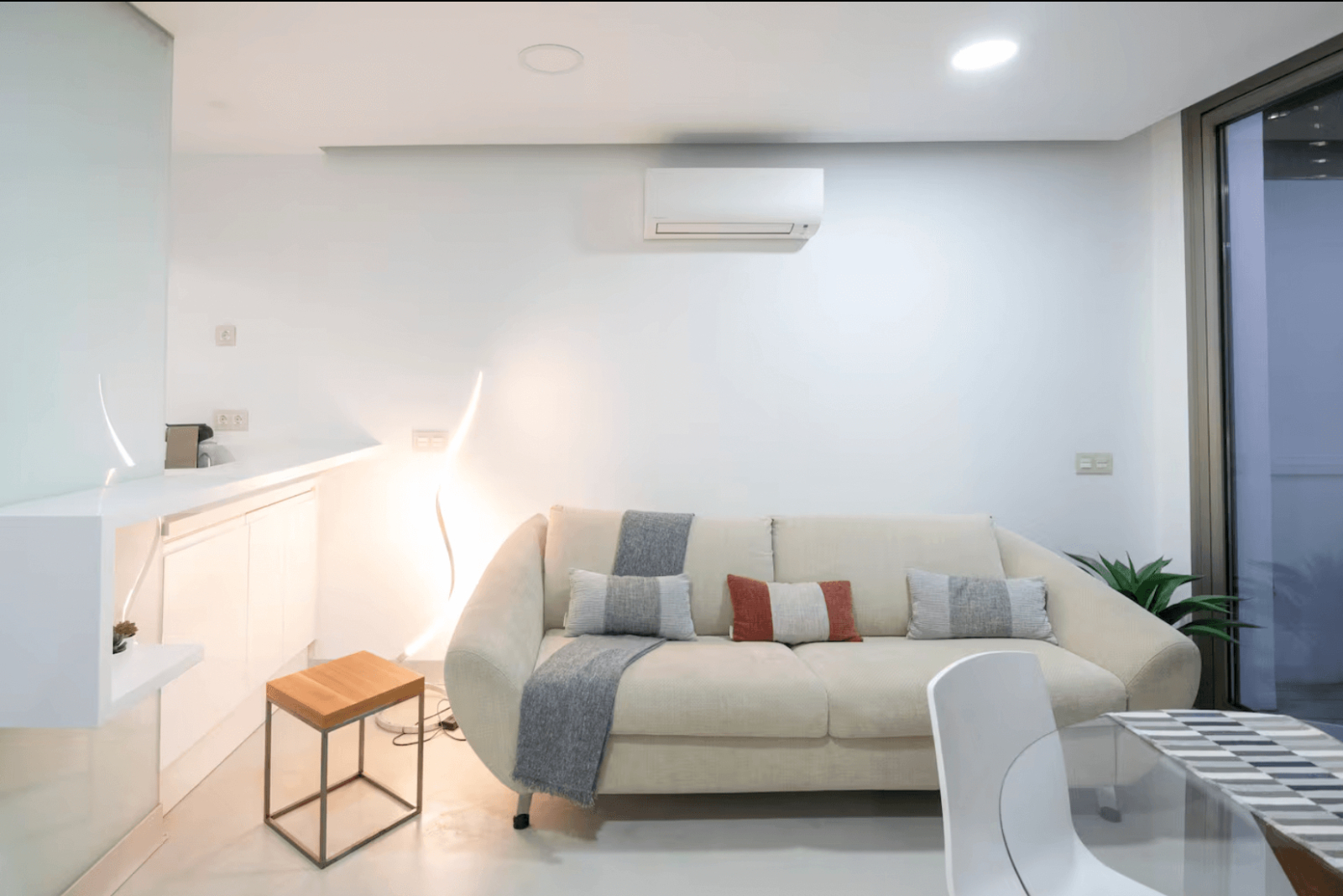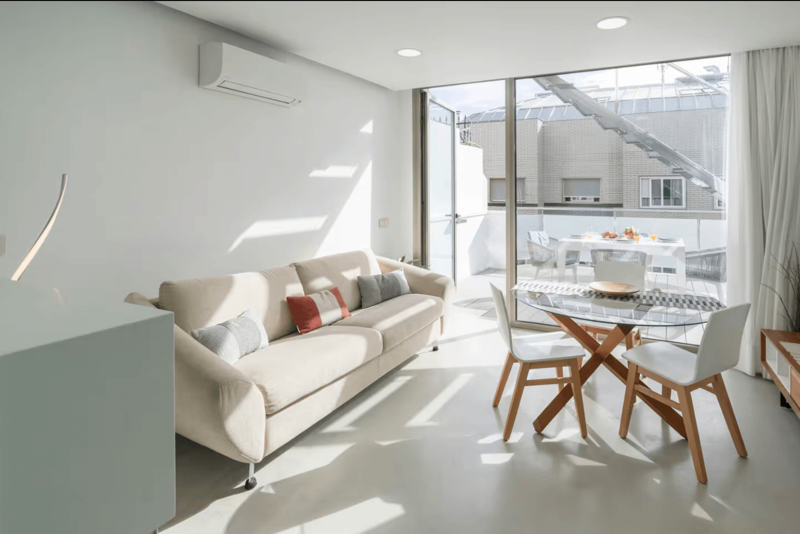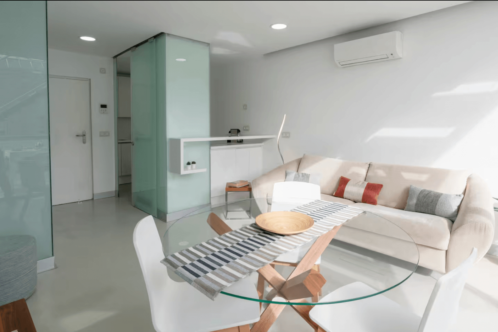 Ons huis is een penthouse met één slaapkamer op de 6e verdieping naast het strand. Het heeft veel buitenruimte en ligt op het zuiden.