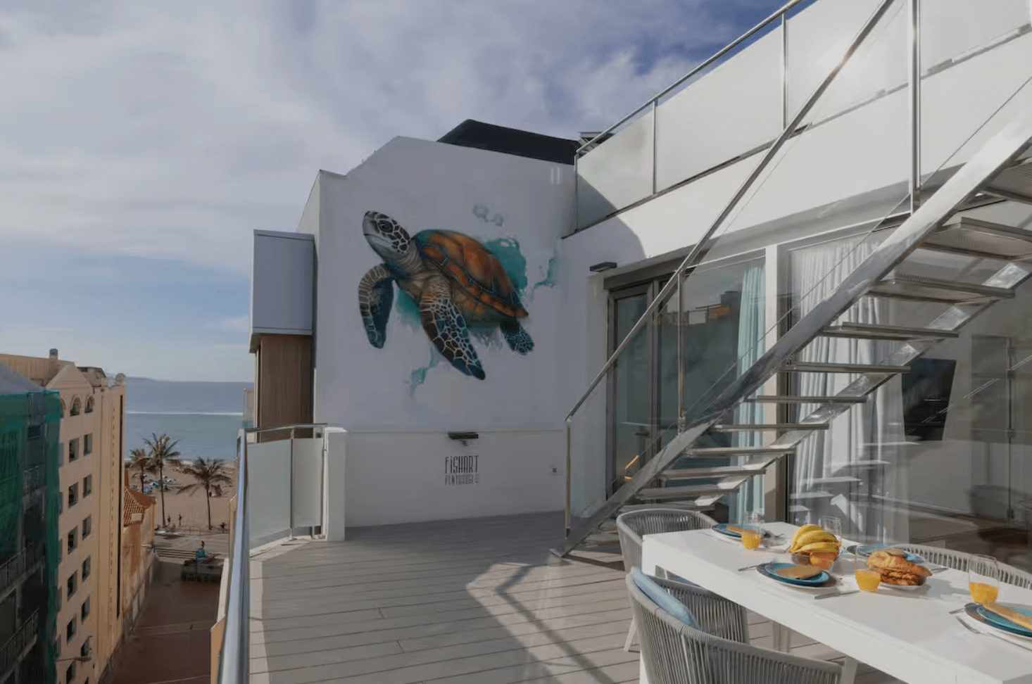 We zijn op een steenworp afstand van het strand van Las Canteras, een prachtig strand met een natuurlijk rif, waardoor het een perfect snorkelgebied is als het eb is.