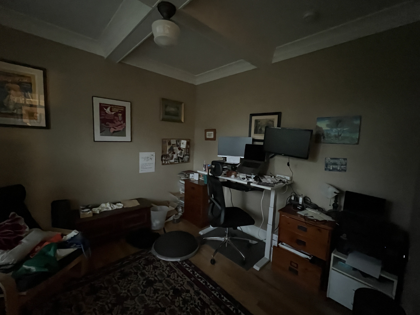 Eerste verdieping, keuken, eetkamer, woonkamer, halve badkamer en kantoor. Tweede verdieping: 3 slaapkamers, 2 volledige badkamers en een woonkamer/tv-kamer. Hardhouten vloeren behalve met tapijt bedekte slaapkamers en tegels in badkamers. Kleine veranda voor de voortuin en een omheind groot achterterras.