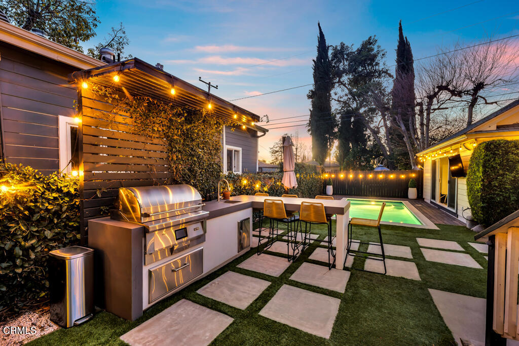 Buiten komt het huis uit op een privé-oase in de achtertuin met een verwarmd zoutwaterzwembad, een ingebouwde barbecue en een eethoek in de buitenlucht omgeven door weelderig groen. Het is een rustig toevluchtsoord om te zonnebaden, te lezen of te genieten van een diner onder de sterrenhemel.