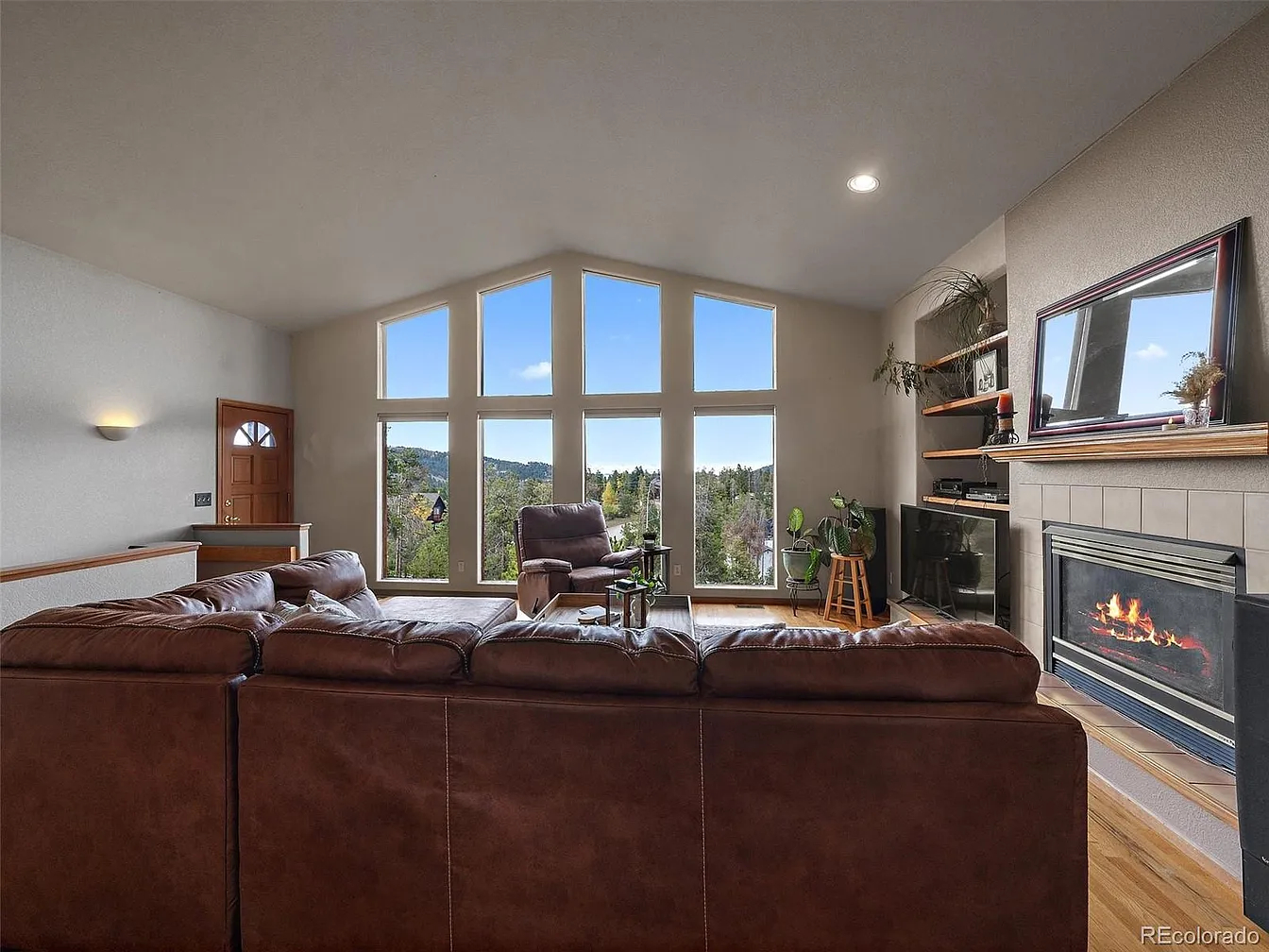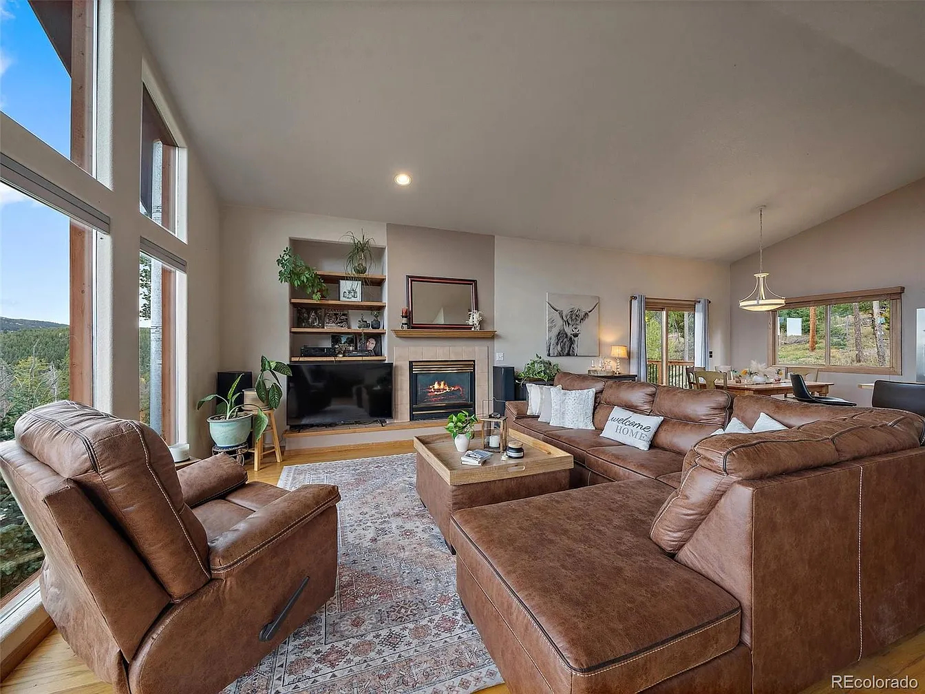 Stap binnen in een met licht gevulde open woonkamer omlijst door kamerhoge ramen die het iconische One Million Dollar View onthullen - eindeloze bergen, dennenbossen en gouden zonsondergangen die versmelten tot aan de horizon.