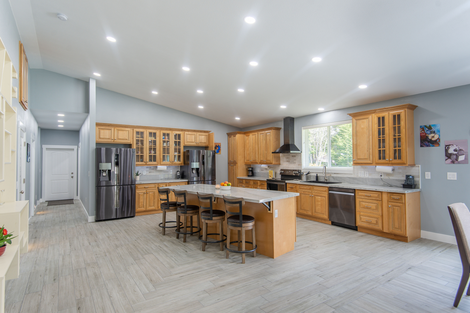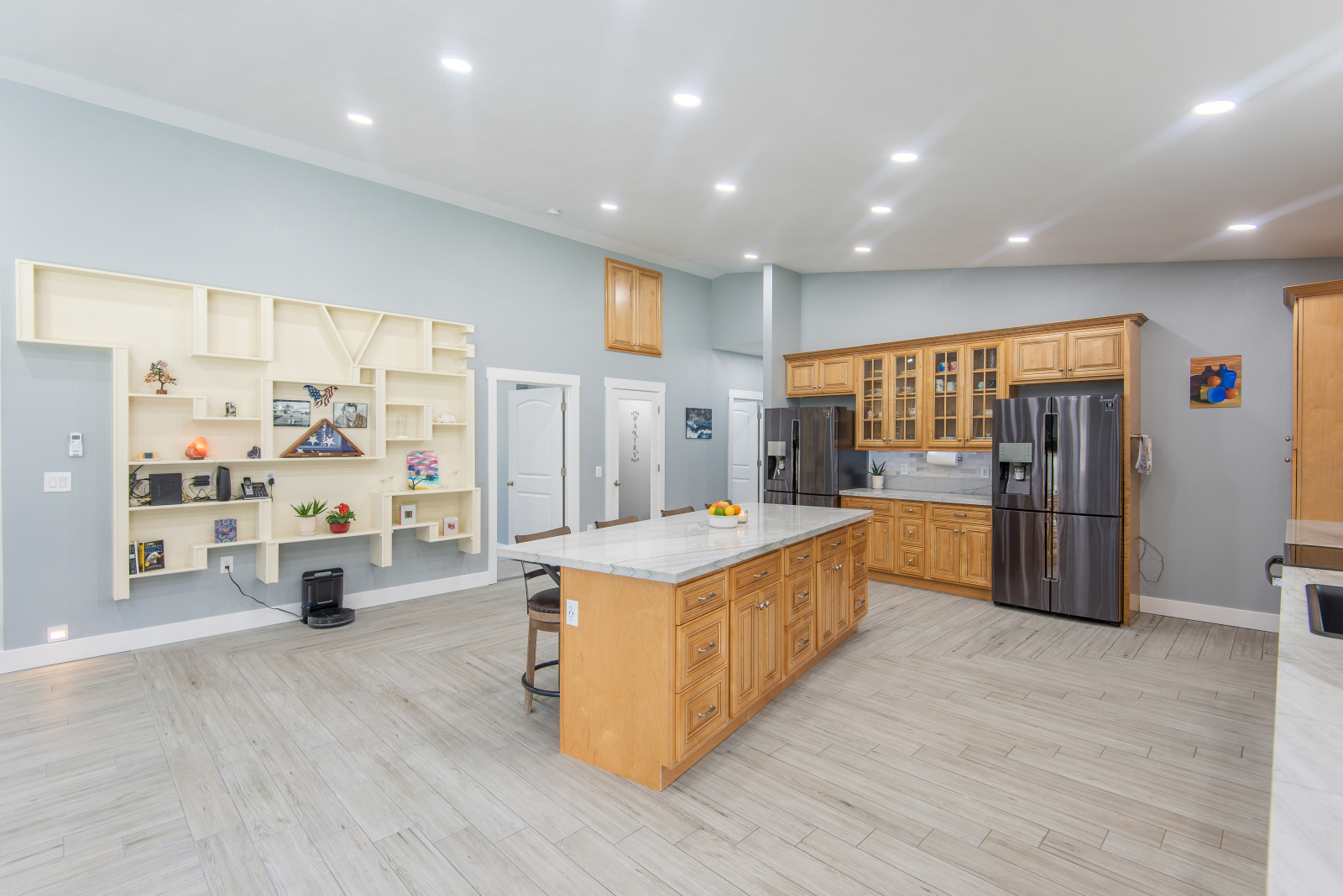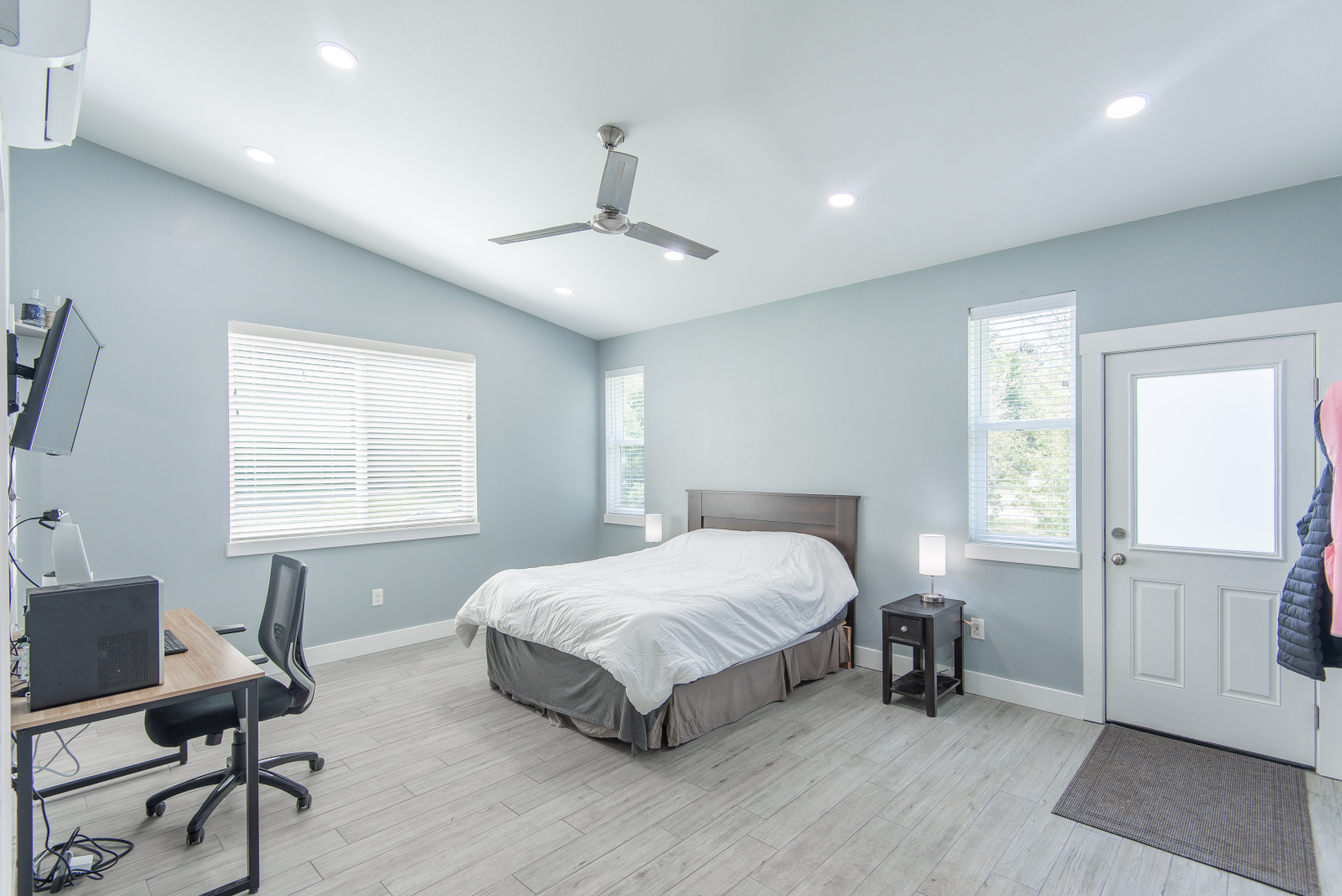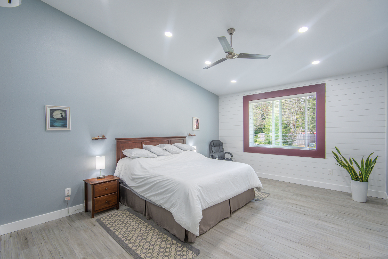 Grote slaapkamer met een kingsize bed. Logeerkamer met een queensize bed. Twee inch traagschuim topper beschikbaar voor beide bedden als een zachter bed gewenst is. Individuele mini split warmte / AC-units in de slaapkamers en grote kamer. Schoon, helder bronwater met een waterontharder en UV-licht voor een chemicaliënvrije ervaring. De hoofddouche heeft een regenkop boven het hoofd en een in de hand gehouden staaf. Surround sound en 75" televisie met elektrische fauteuils. Garage ruimte voor het parkeren inpandig. Het gastenbad heeft een bad van 6 '. Dubbele warmwaterboilers met een circulatiepomp voor ruim en vrijwel direct warm water. Een enorme keukenruimte met volledig gebruik van een van de twee koelkasten, een grote verscheidenheid aan apparaten en kookgerei.