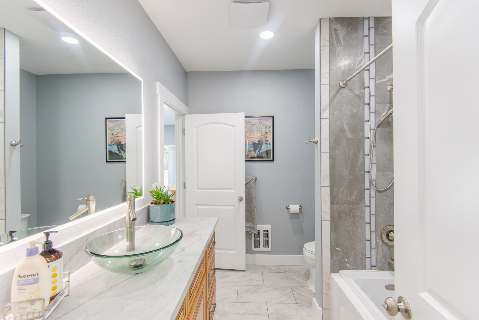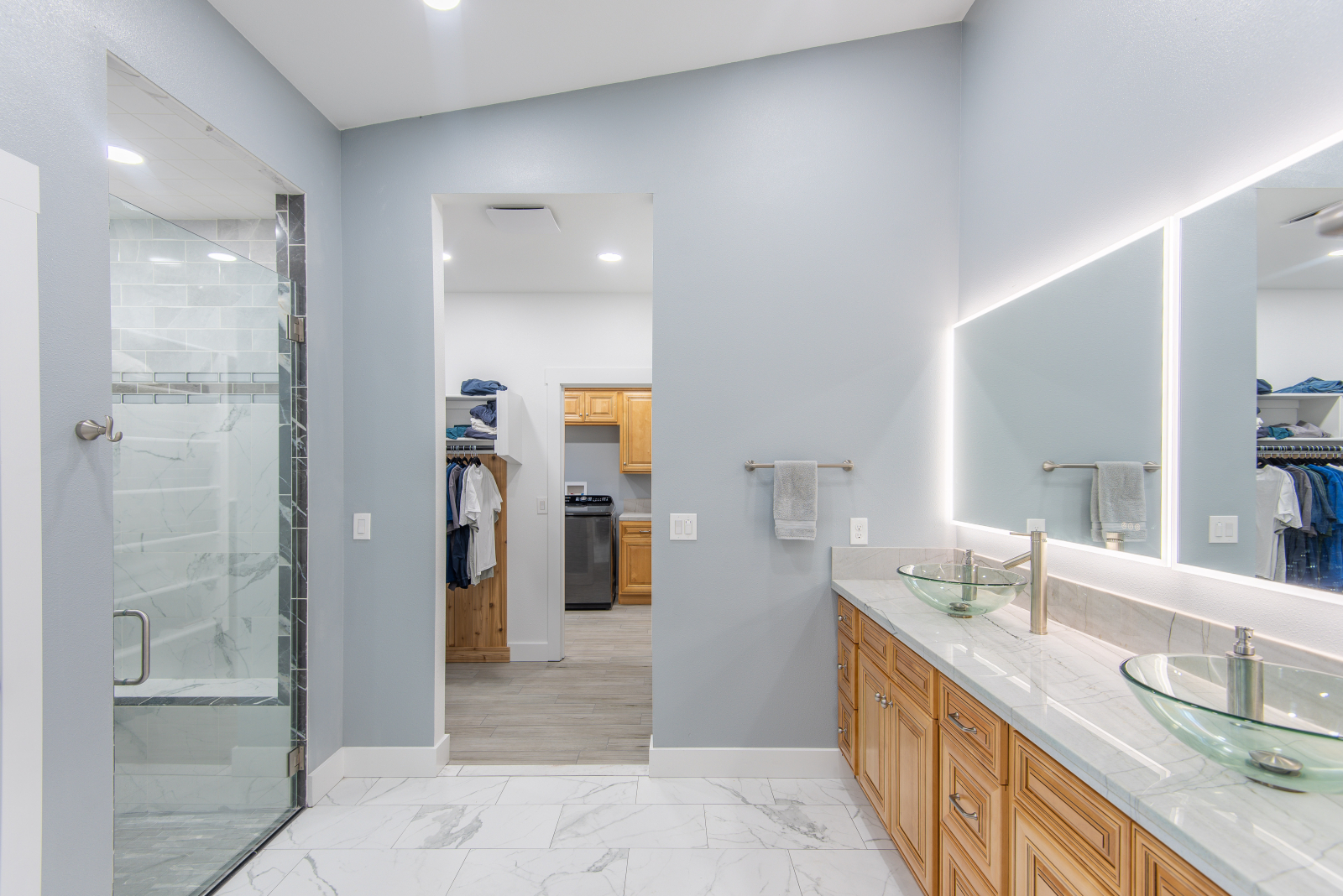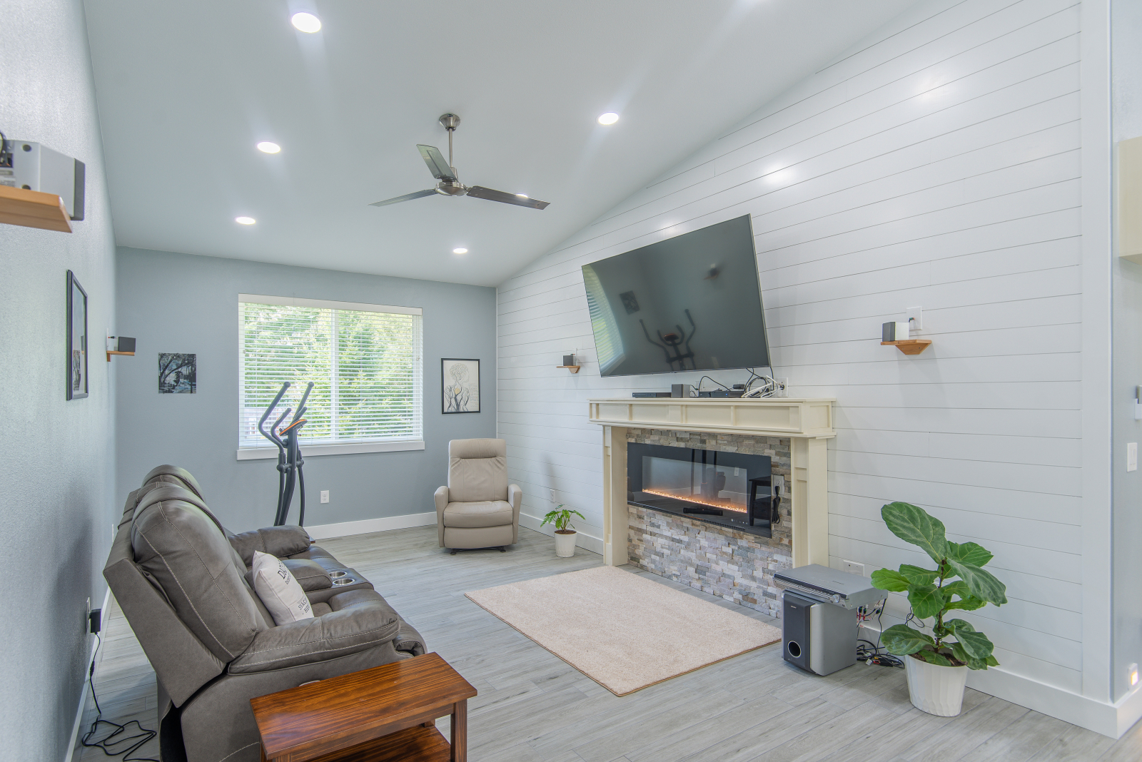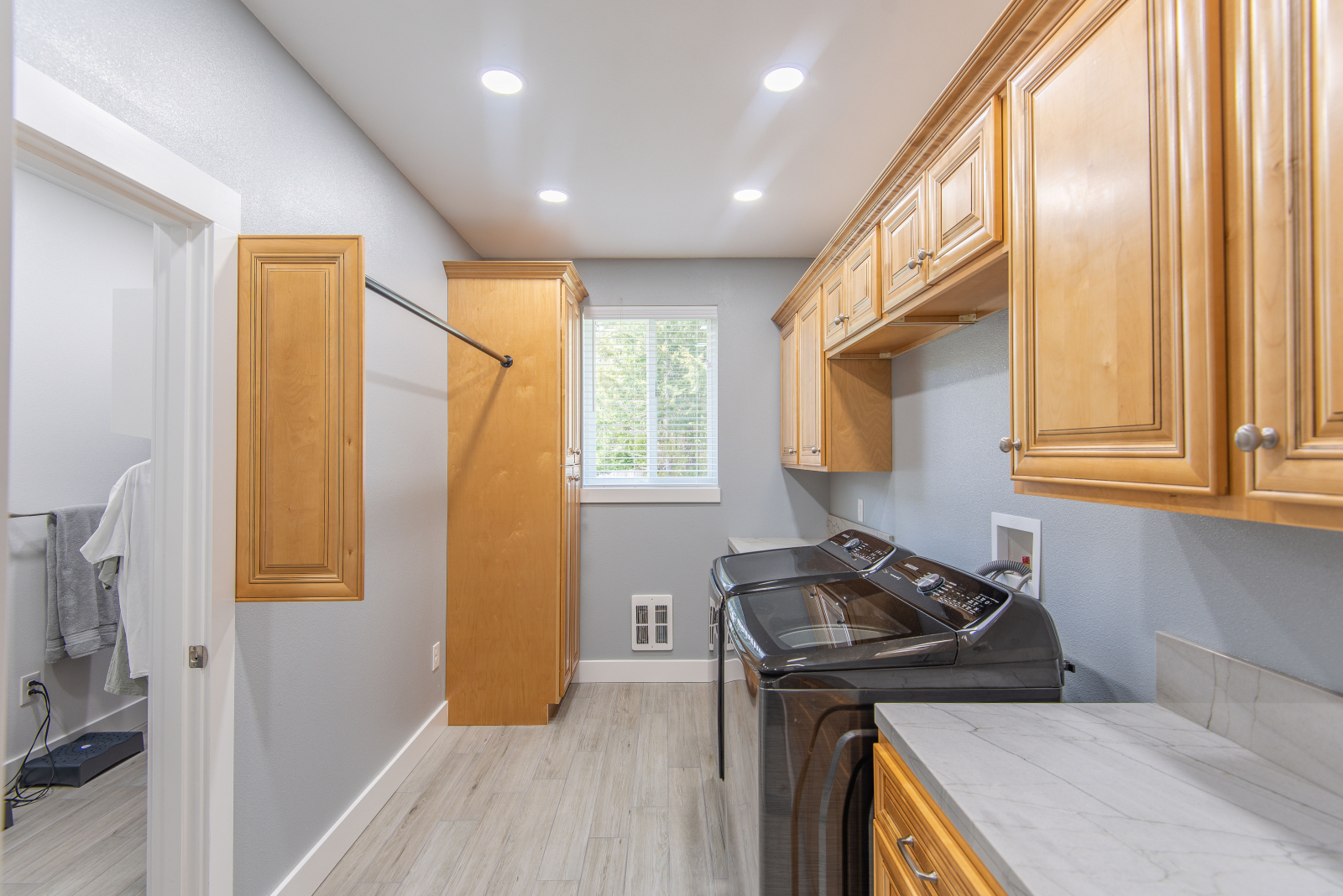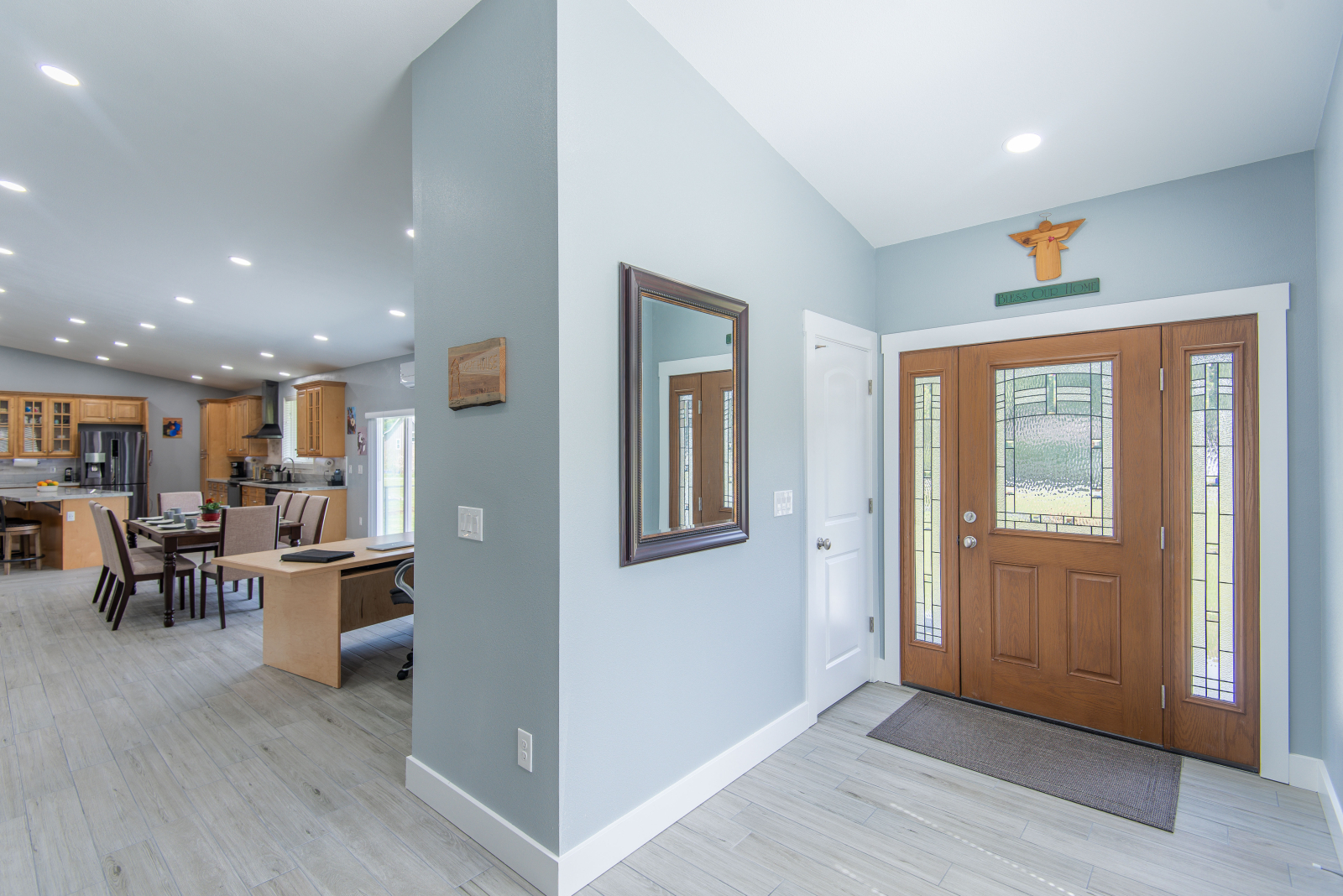 Grote slaapkamer met een kingsize bed. Logeerkamer met een queensize bed. Twee inch traagschuim topper beschikbaar voor beide bedden als een zachter bed gewenst is. Individuele mini split warmte / AC-units in de slaapkamers en grote kamer. Schoon, helder bronwater met een waterontharder en UV-licht voor een chemicaliënvrije ervaring. De hoofddouche heeft een regenkop boven het hoofd en een in de hand gehouden staaf. Surround sound en 75" televisie met elektrische fauteuils. Garage ruimte voor het parkeren inpandig. Het gastenbad heeft een bad van 6 '. Dubbele warmwaterboilers met een circulatiepomp voor ruim en vrijwel direct warm water. Een enorme keukenruimte met volledig gebruik van een van de twee koelkasten, een grote verscheidenheid aan apparaten en kookgerei.