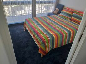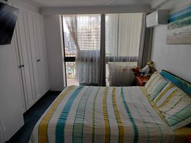 De keuken is modern met alle verwachte voorzieningen (grote koelkast/vriezer, vaatwasser, magnetron, oven, airfryer, koffiemachine, enzovoort). De ensuite, hoofdbadkamer en wasruimte zijn onlangs volledig gerenoveerd. Er zijn twee slaapkamers, beide met airconditioning, ingebouwde kasten, de hoofdslaapkamer heeft een comfortabel queen size bed en de tweede slaapkamer heeft twee eenpersoonsbedden. De woonkamer en eetkamer zijn ook voorzien van airconditioning. Het complex is beveiligd met beperkte toegang buiten kantooruren, liften die vloerbegrensd zijn, een beveiligde parkeerplek en beveiligingscamera's voor gemeenschappelijke ruimtes. Er is een mooi balkon om te barbecueën en te genieten van het uitzicht op zonsopgang, strand, oceaan en stad. De complexkenmerken (helaas kunnen sommige gebouwen in 2026 gesloten worden omdat bouwwerkzaamheden en reparaties gaande zijn):