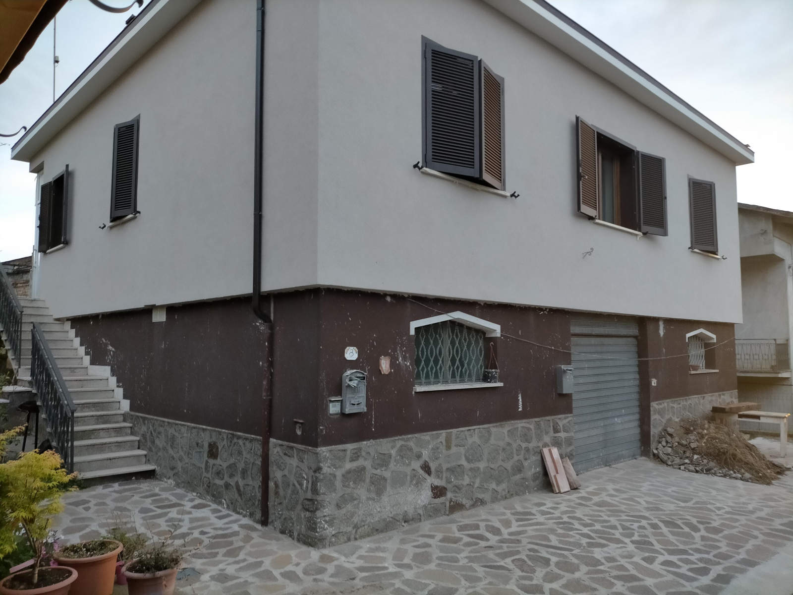 Vrijstaand huis met parkeerruimte, terras en een kleine tuin.