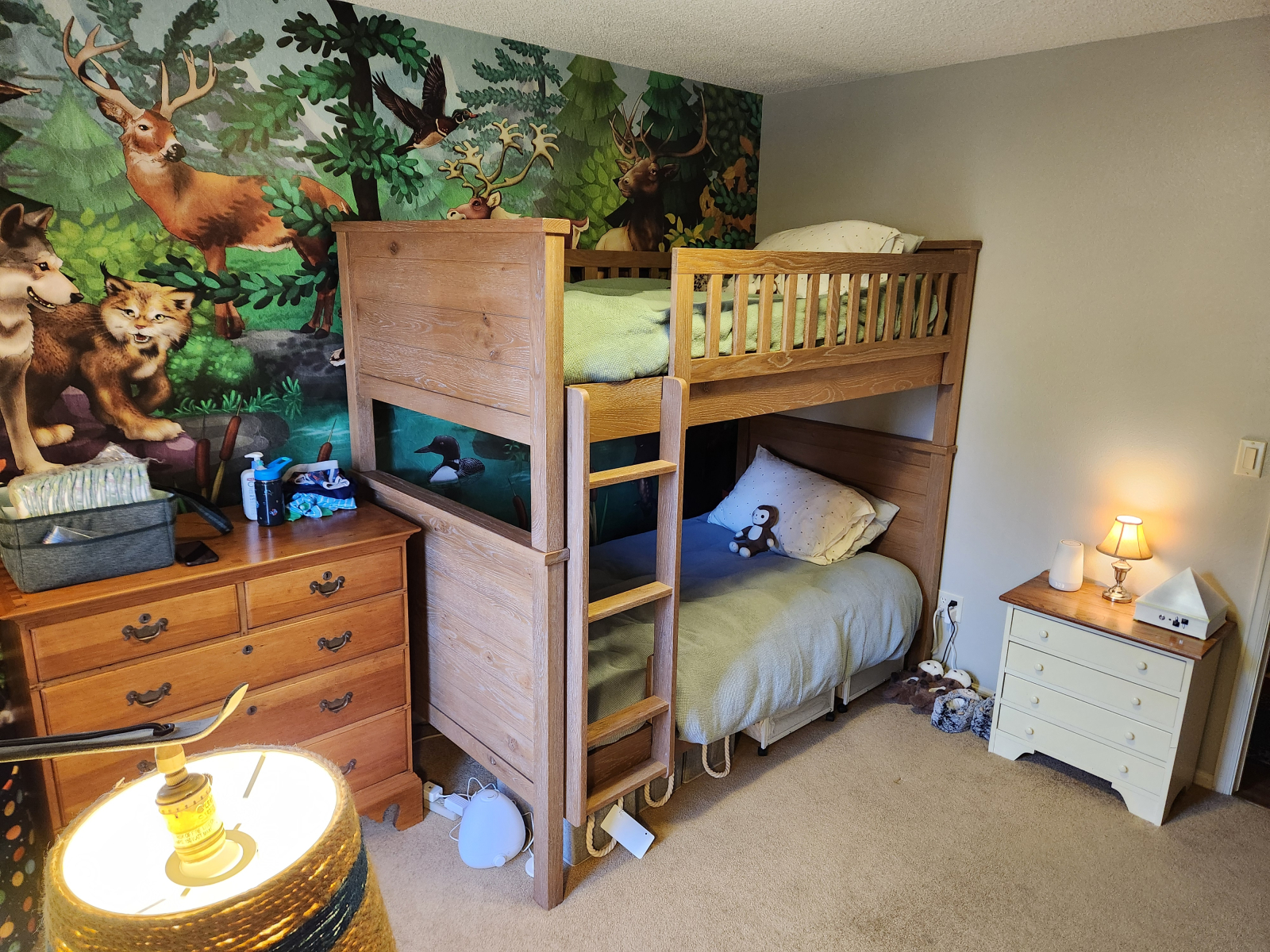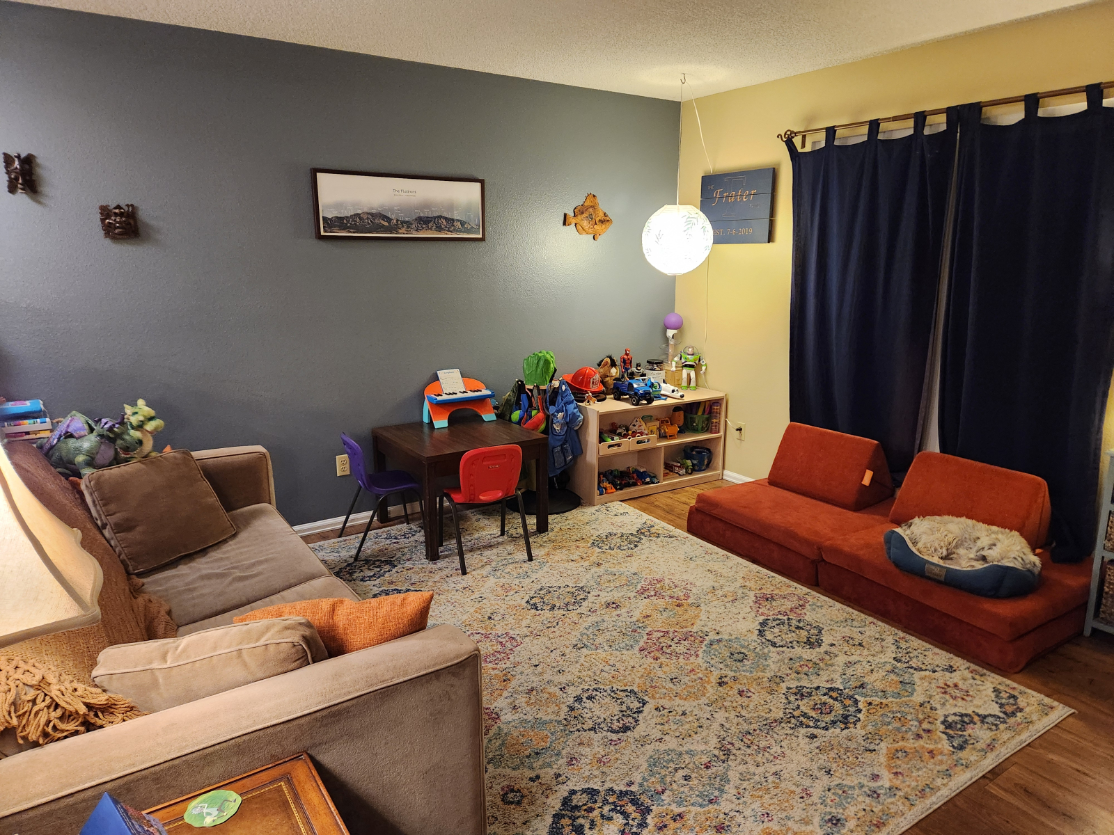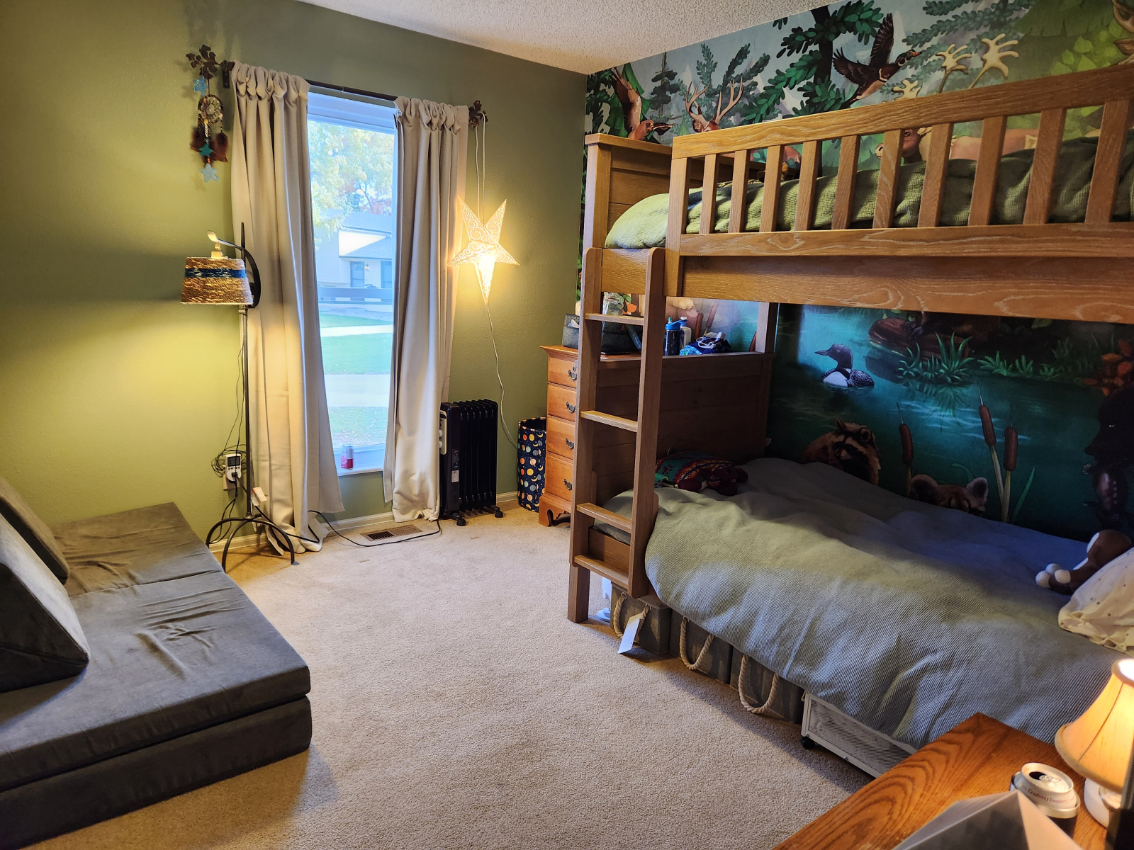 Ons huis is een gezellige, geliefde en bewoonde ranch met 3 slaapkamers. Het is ingericht voor kinderen, met een overvloed aan speelgoed, kinderstoelen, kinderbekers, borden, enzovoort. We hebben 2,5 badkamers, een zeer goed uitgeruste keuken en woonkamer met een grote flatscreen-tv en open haard. We hebben ook een grote achtertuin met een speelhuisje, tuin en vuurplaats.