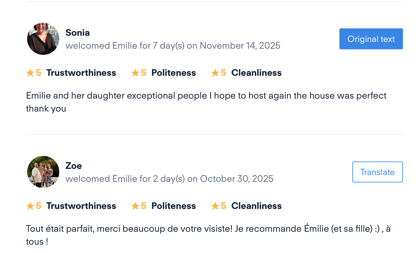 Estou disponível para dar conselhos sobre as melhores atividades e restaurantes da minha cidade, em frente a um café ou outro. Meus filhos e nós também ficaremos felizes em fazer uma atividade com amigos da PLU.