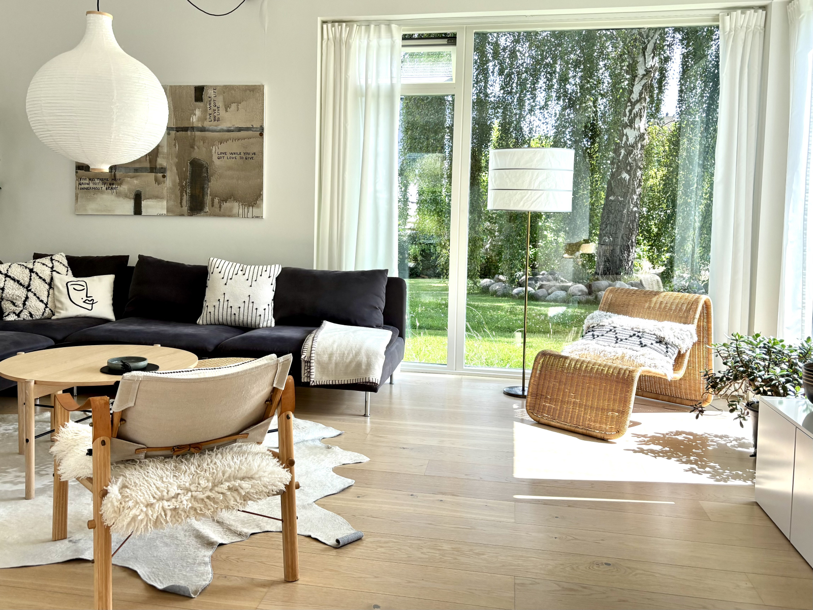 Nossa casa está perfeitamente localizada em uma rua sem saída em um bairro tranquilo, a apenas alguns minutos a pé do lago, parques infantis, estação ferroviária e lojas. A praia de Frederiksdal e Bellevue não fica a mais de 5-7 km de distância.