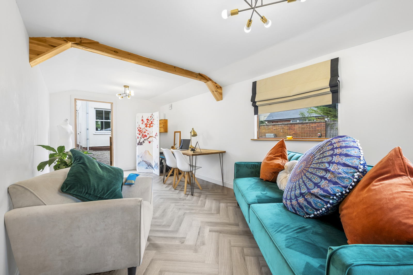 A casa possui um jardim muito grande, acessível a partir das portas francesas da sala de estar para uma área de pátio de cascalho que tem uma churrasqueira embutida de tijolos, móveis de jardim de 6 lugares e o espaço do estúdio. Mais abaixo no jardim, há macieiras - apenas cozinhando, mas sinta-se à vontade para usá-las - uma casinha de madeira, um trampolim e, finalmente, no fundo, vistas ininterruptas das colinas de Burton Dassett. Muitas vezes você verá cavalos em seus piquetes também.