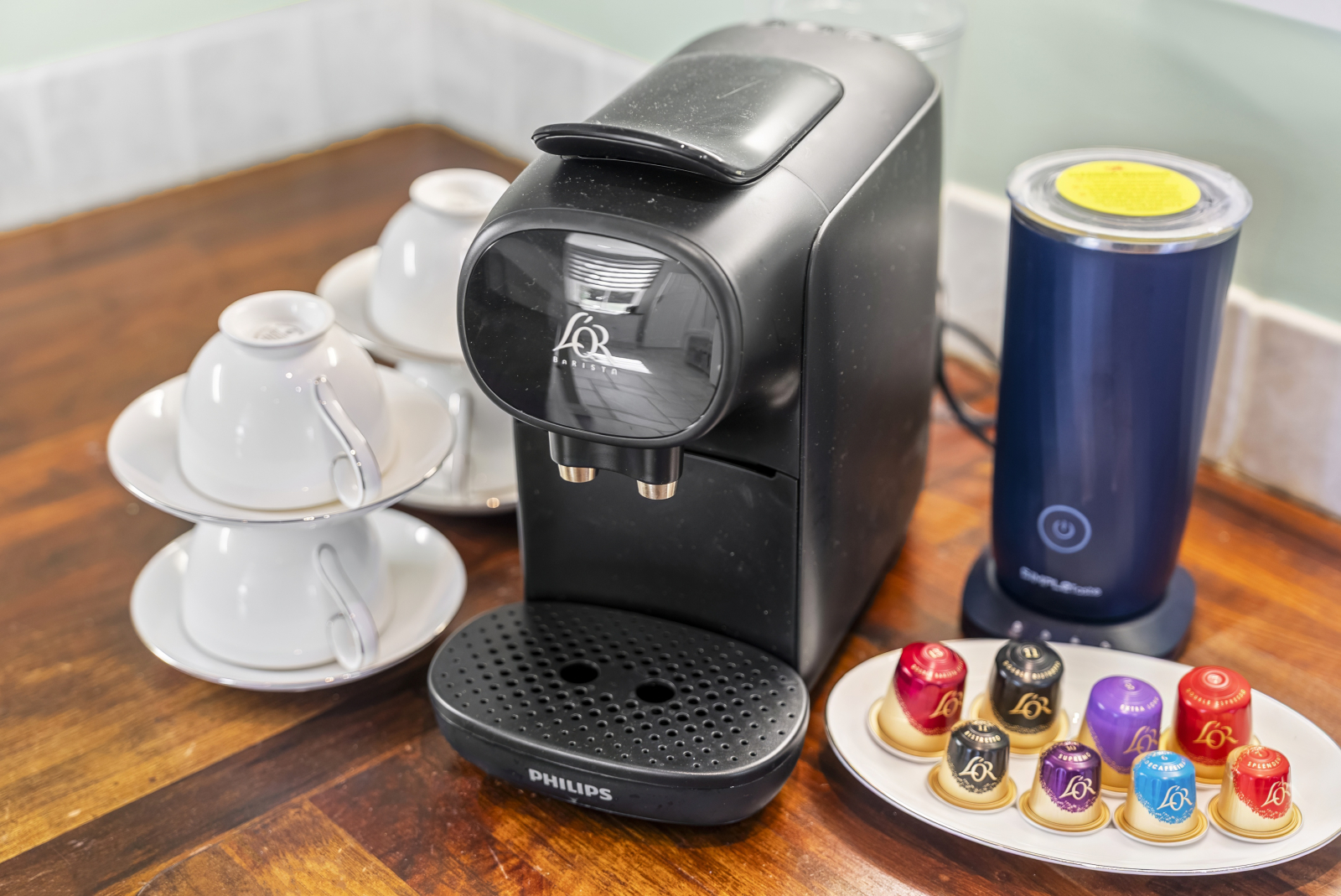 A cozinha se beneficia de amplo espaço de armazenamento e armário, um fogão de 5 anéis com forno duplo, micro-ondas, torradeira Dualit e chaleira Bosch, geladeira e freezer sob o balcão, bem como uma geladeira/freezer independente adicional e uma máquina de lavar louça. Também incluímos uma máquina Nespresso junto com uma seleção de cápsulas de café para você aproveitar.